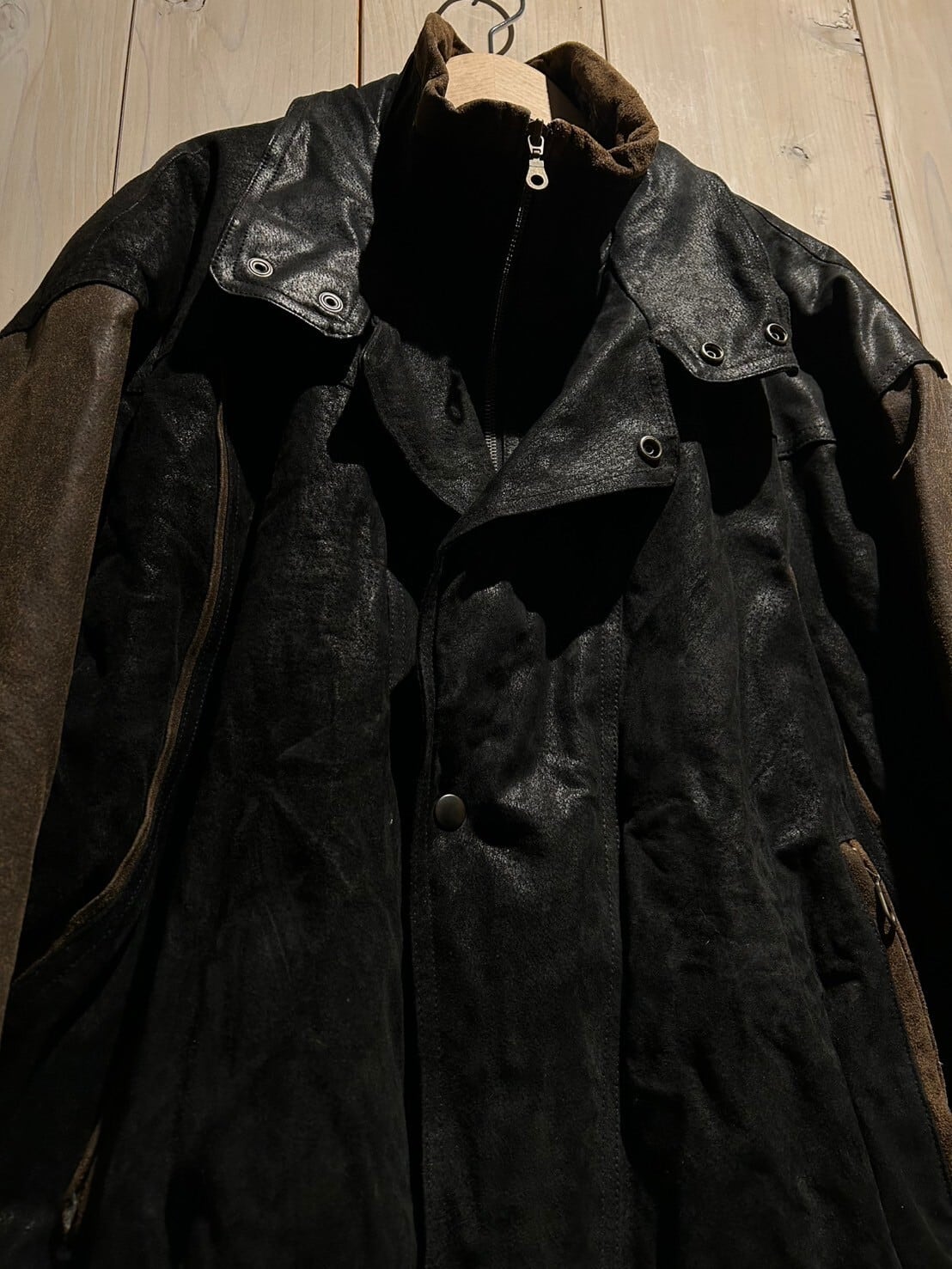 Cakaグループの代名詞でもあるレザーアイテムより、稀有なブラウン×ブラックレザーの2トーンカラー仕様のスペシャルな一着をご紹介致します。
