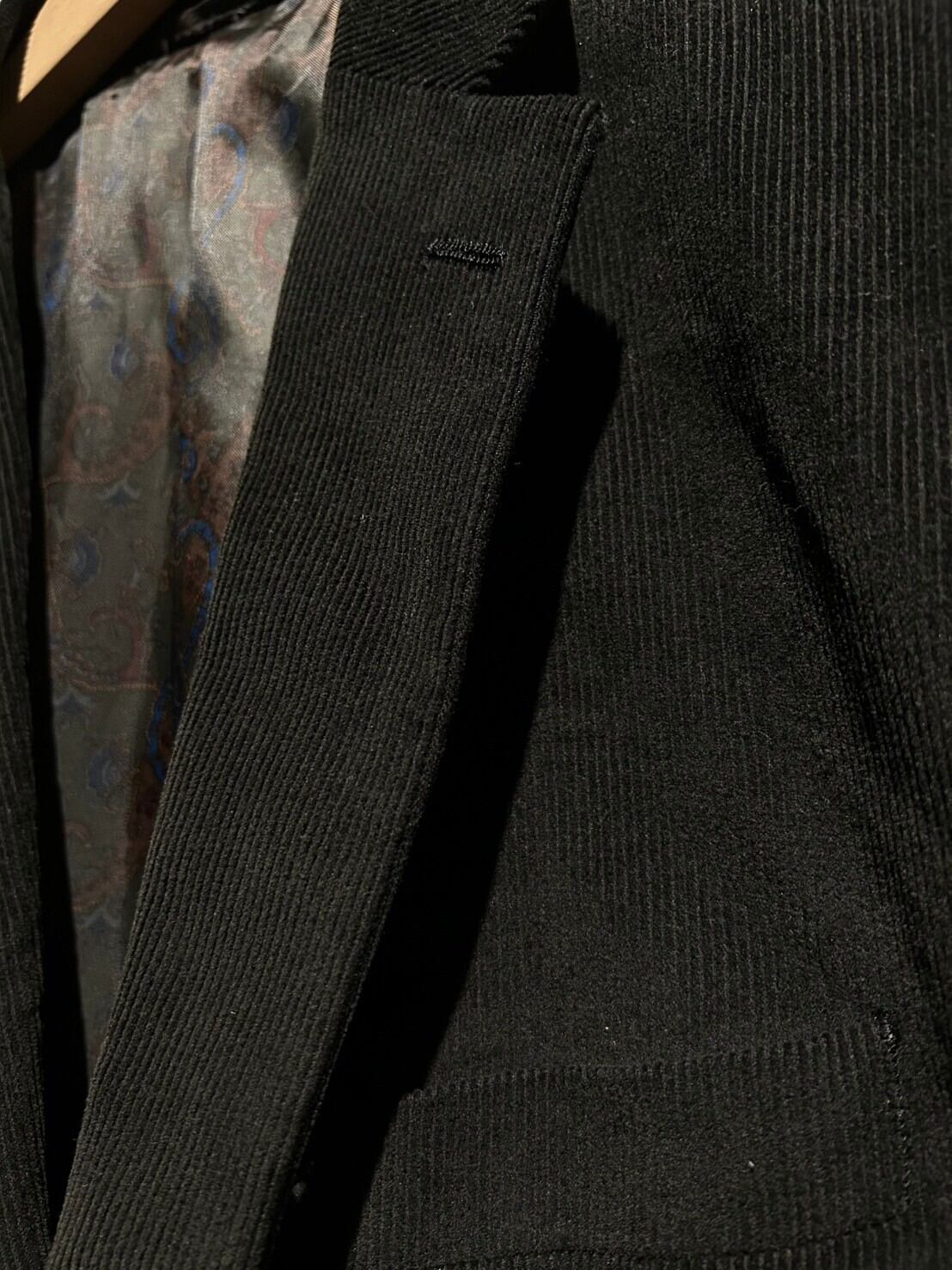 裏地のペイズリー柄も雰囲気をムンムンに漂わせ、クロークに預けた時にも抜かりなしですね。