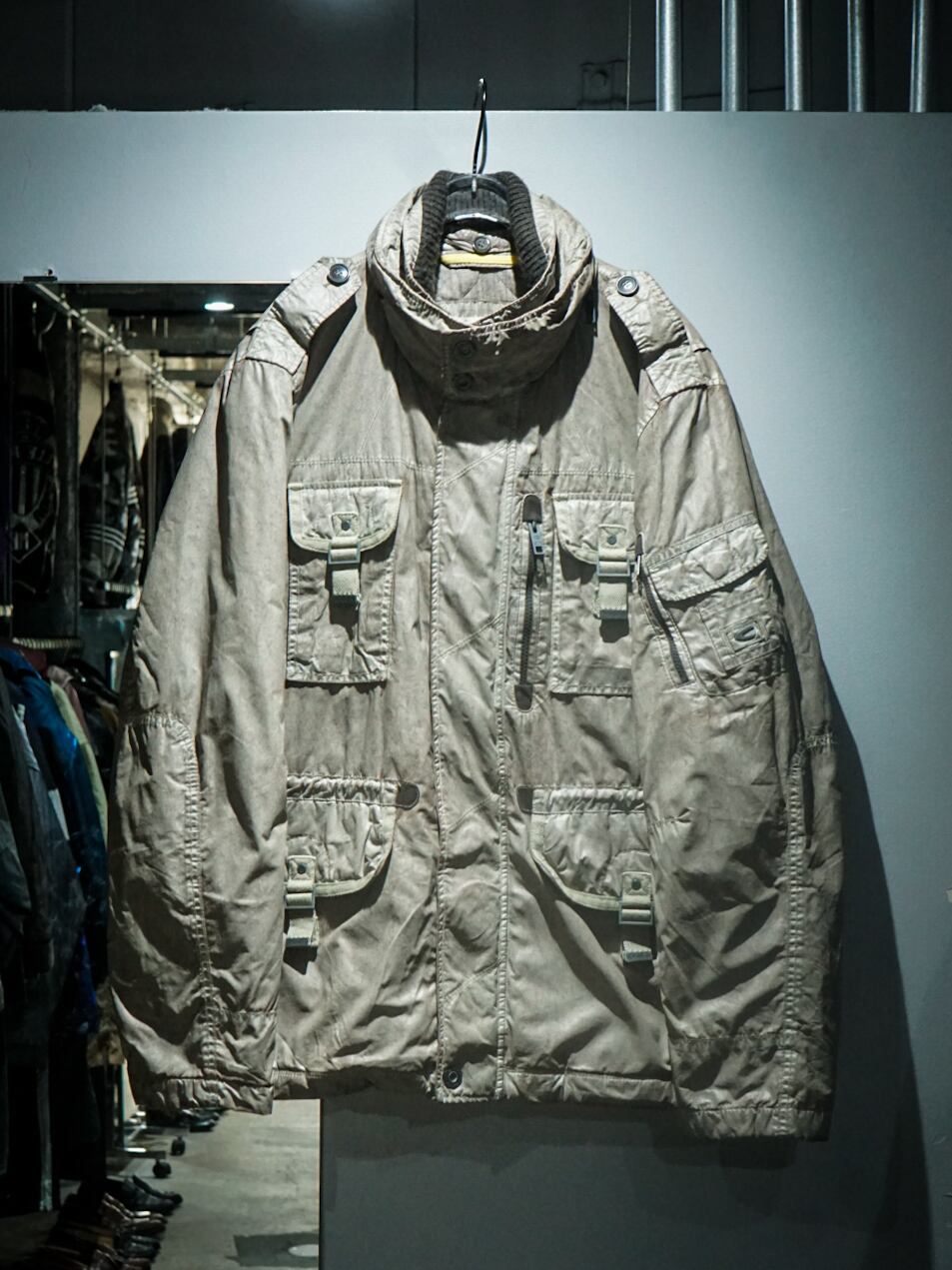 フロントには、ベルトの装飾が施された存在感を見せる4つのフラップポケットに加え、ハンドウォーマー、ジップポケットを搭載。肩のエポレット、左袖にはユーティリティポケットといったミリタリーライクなディテールを載せた、デザイン性、機能性共に優れた非常にクオリティの高い1着。