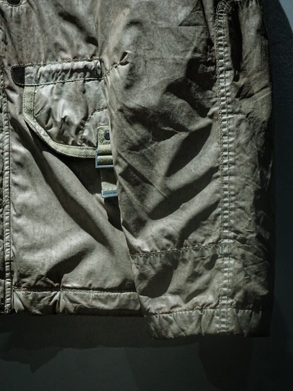 様々なギミックを随所に落とし込み、ボディ全体を退廃的な雰囲気を漂わせる、まだらなカラーリングで仕上げたジャケット。
