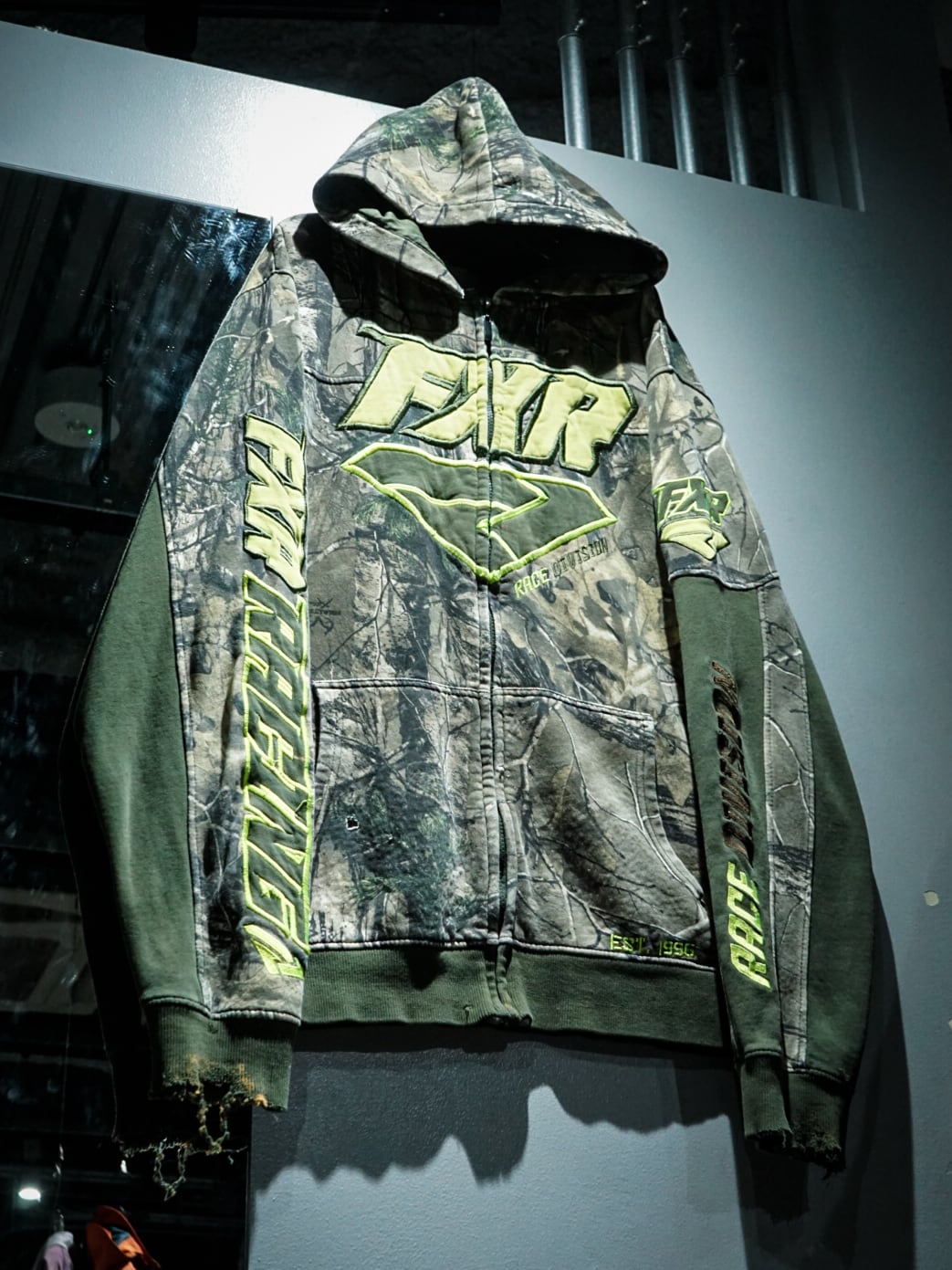 当店でも大変ご好評頂いておりますレーシングモノの中でもジップアップフーディ、そしてリアルカモが掛け合わさったアイテムは珍しいんです。袖口のボロ具合も◎