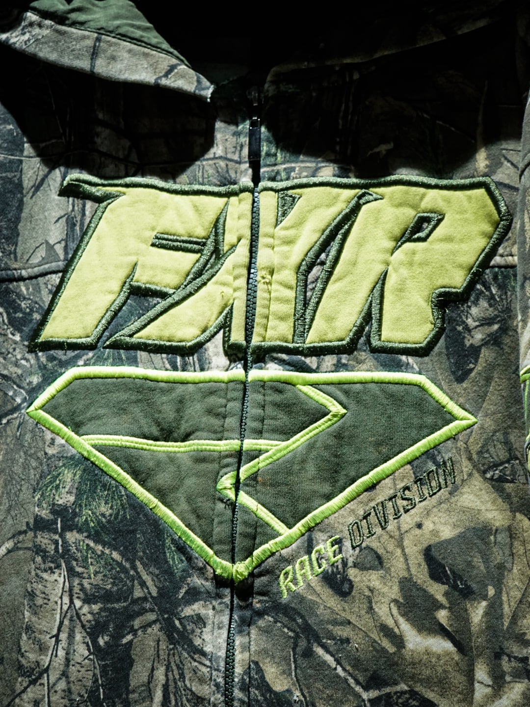 コシのあるボディに、昨今のトレンドでもある"リアルツリーカモ"を載せたジップアップフーディ。