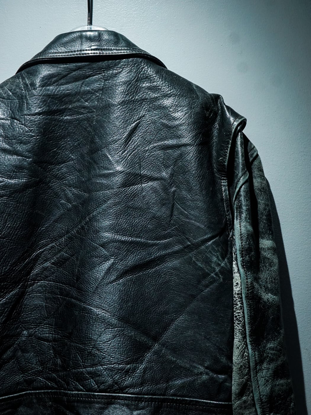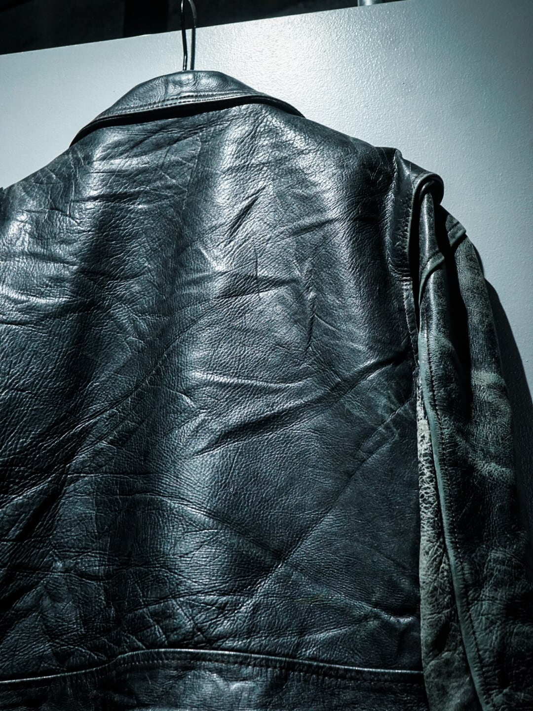 ハリとコシのあるがっしりとした上質なレザーを採用したレザーアイテムの正に「王道」であるヴィンテージのダブルライダースジャケットに、USEDならではの表情が載せられた稀有な1着をご紹介致します。