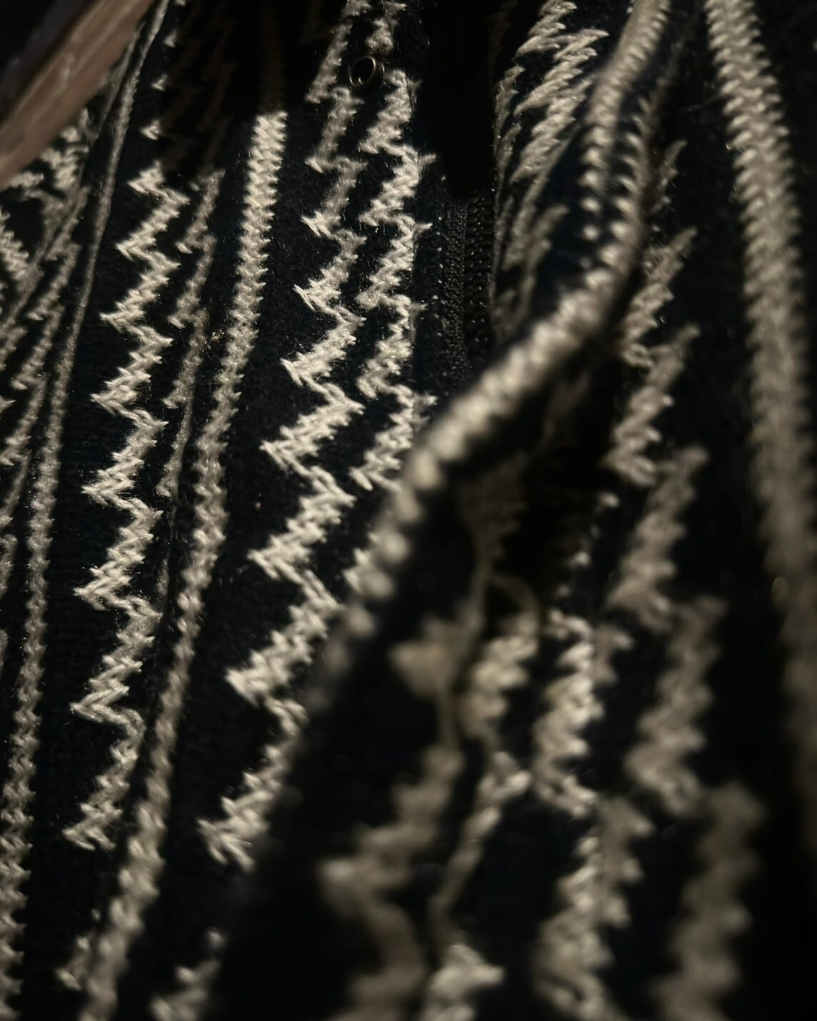 柔らかくコシのある、上質なニッティングでジグザグ柄を表現したブルゾンジャケット。