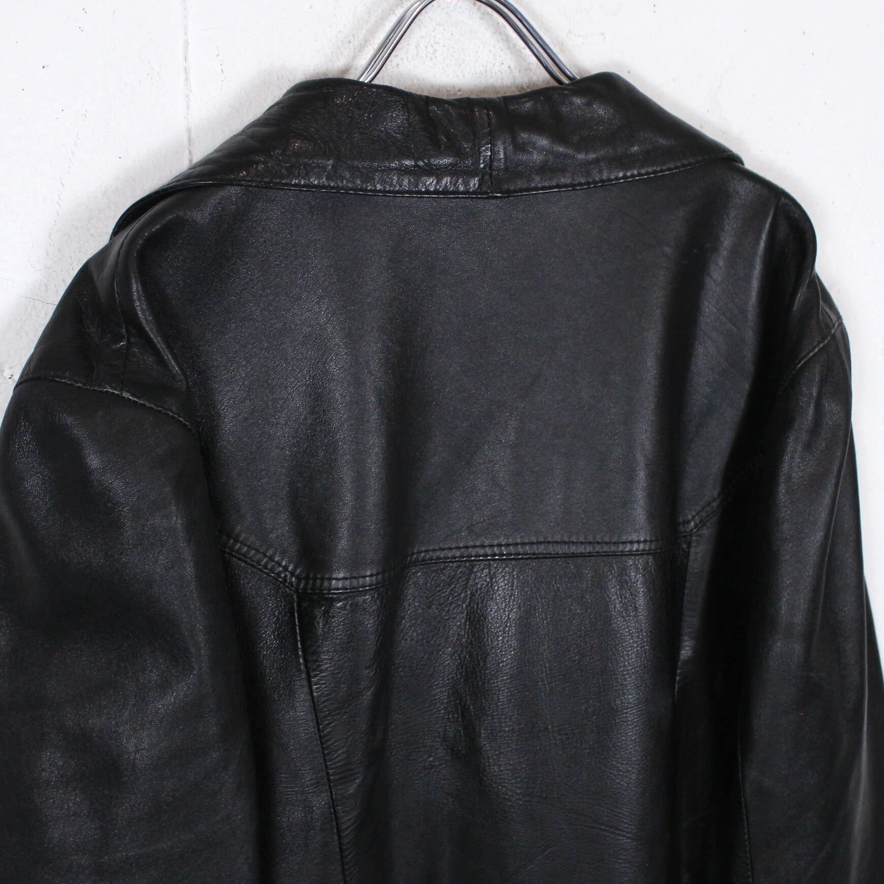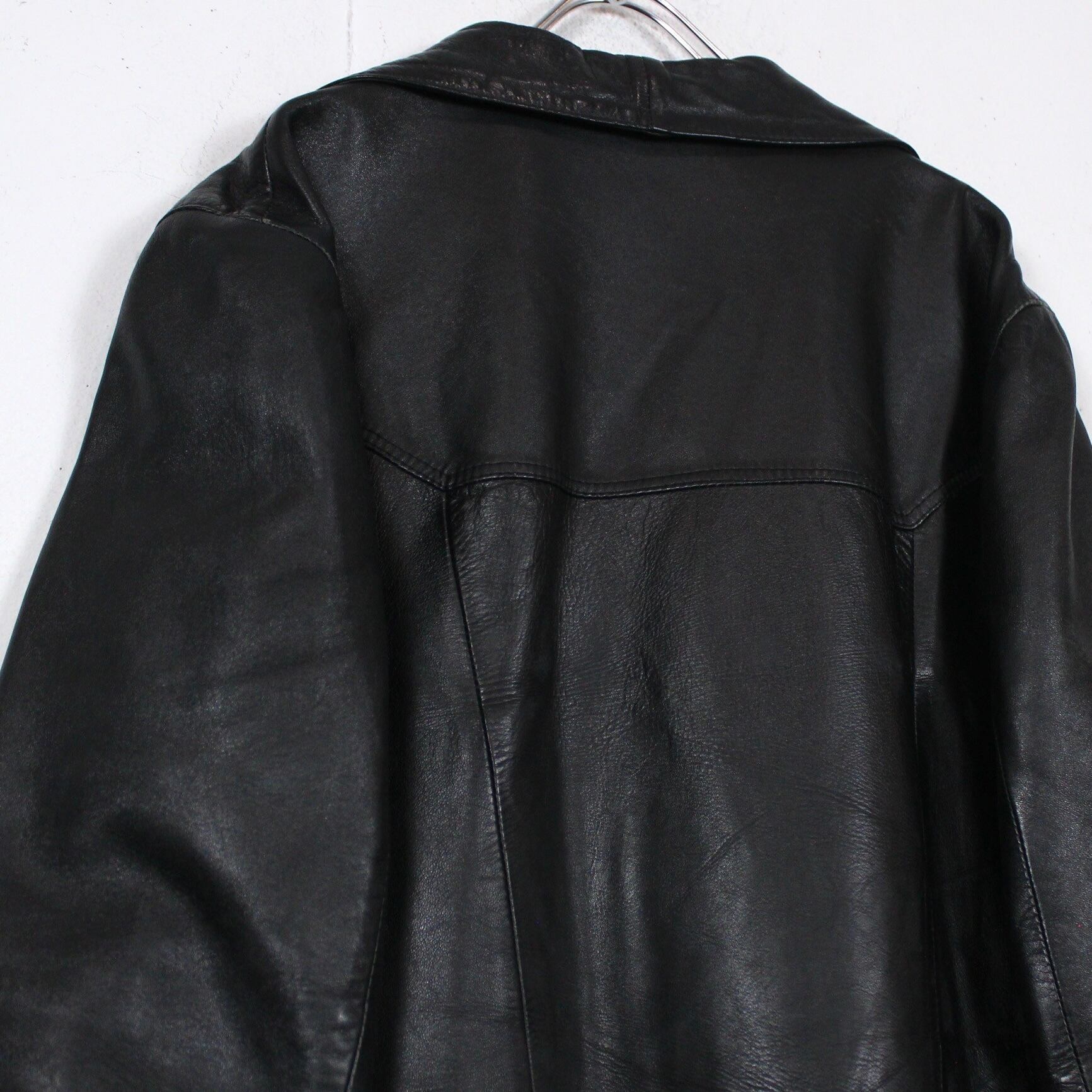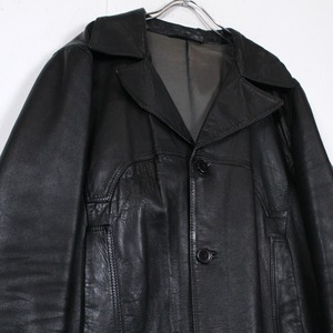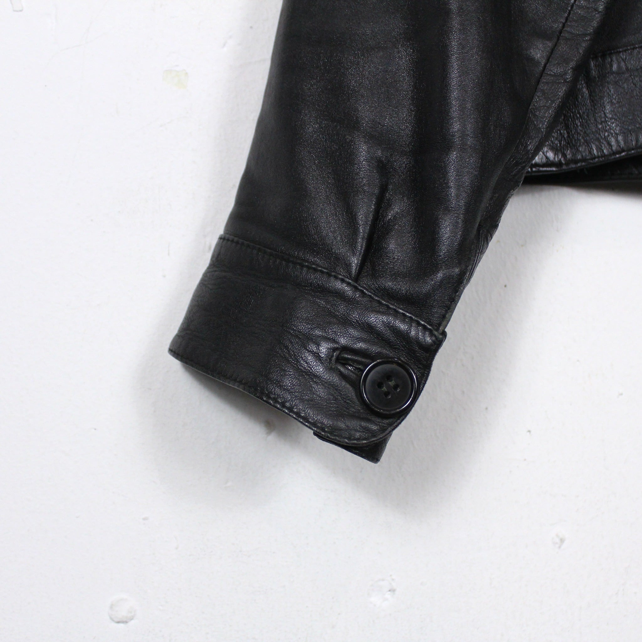 しなやかな質感に仕上げられた上質なブラックレザーをボディに採用。サイドに向かって尖を見せる大振りな襟が存在感を見せるレザージャケット。