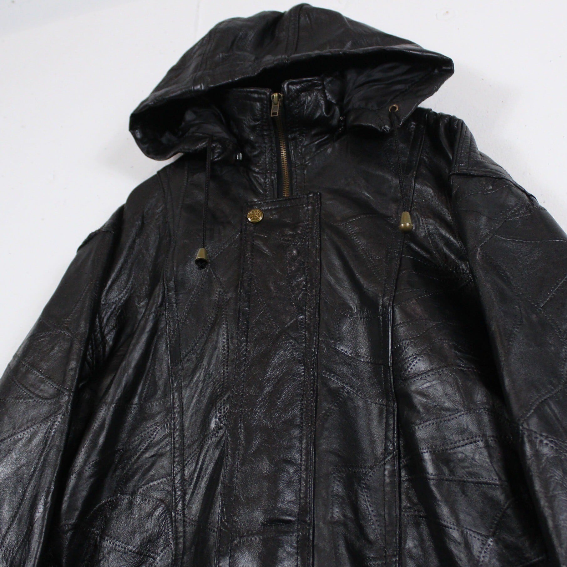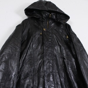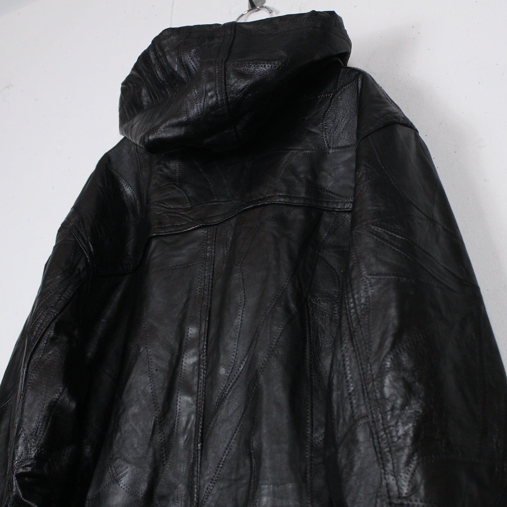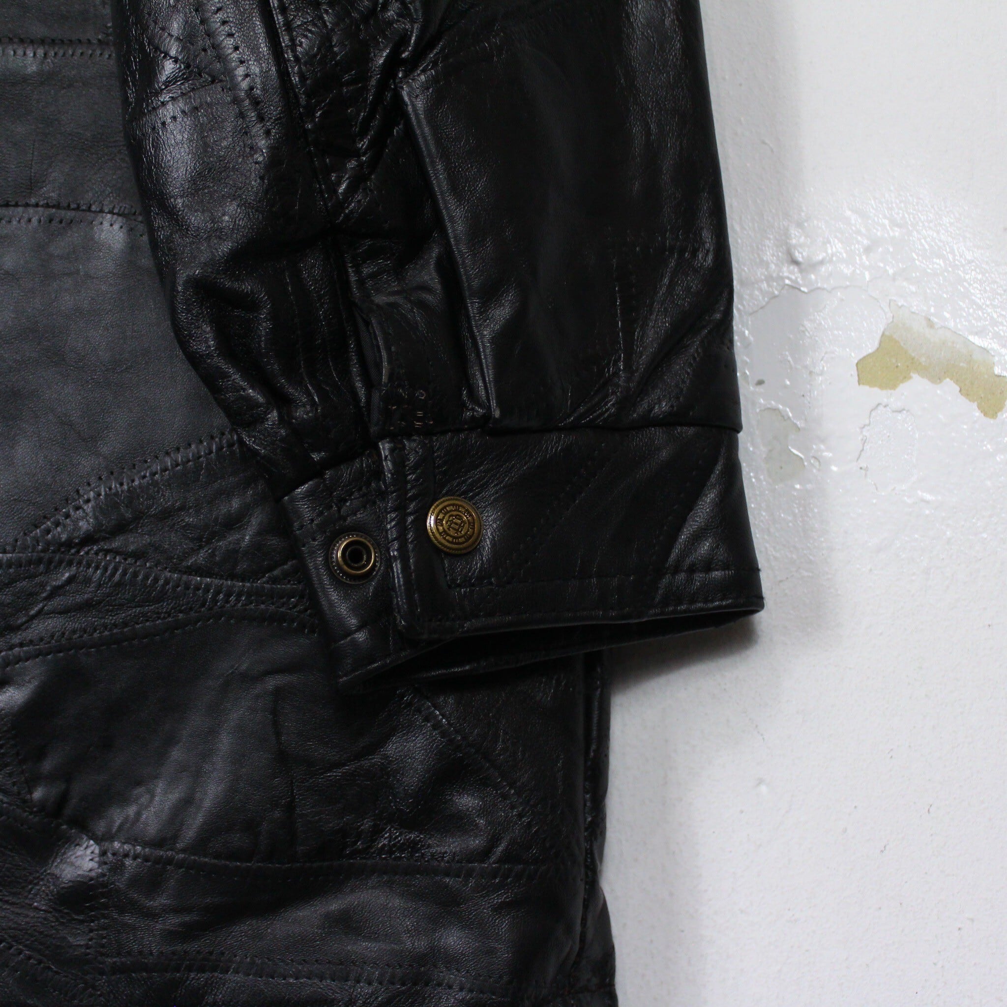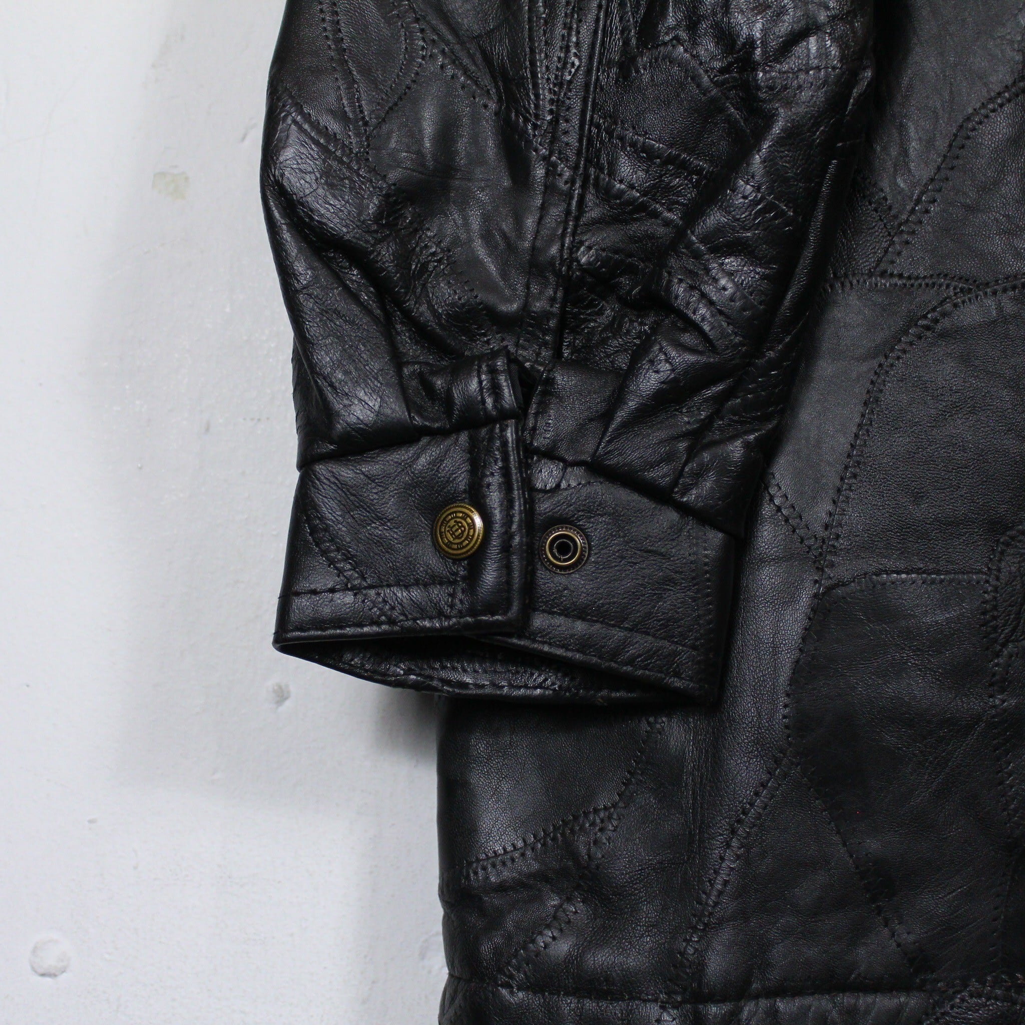 ランダムなツギハギによるパッチワークが施された、上質なレザーを贅沢に用いたカバーオールジャケット。