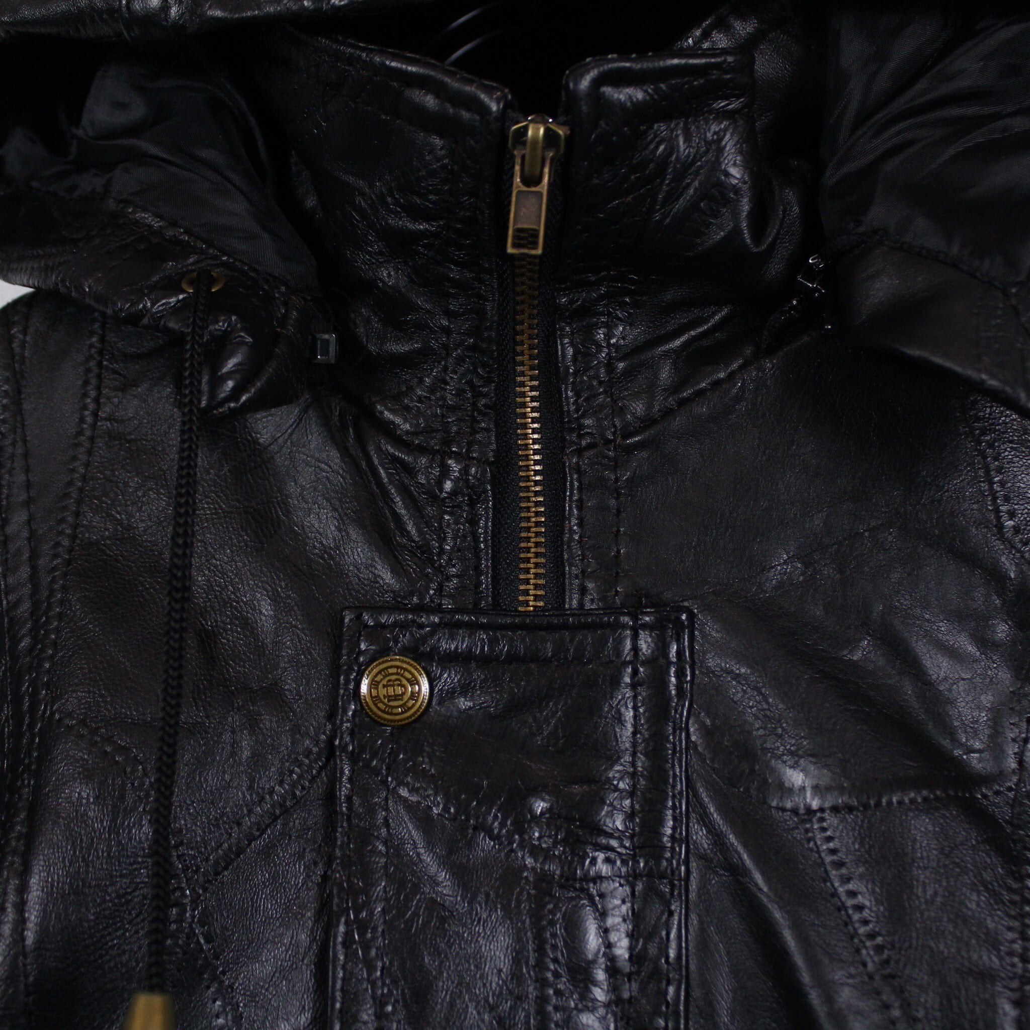 美しいレザー切り替えのバランスもさる事ながら、前立ては比翼仕立てとジップの二重構造と、上品な表情がより引き立つ作りに加え、取り外し可能なフードと機能面にも優れた気が利いたデザインにもグッときますね、、、