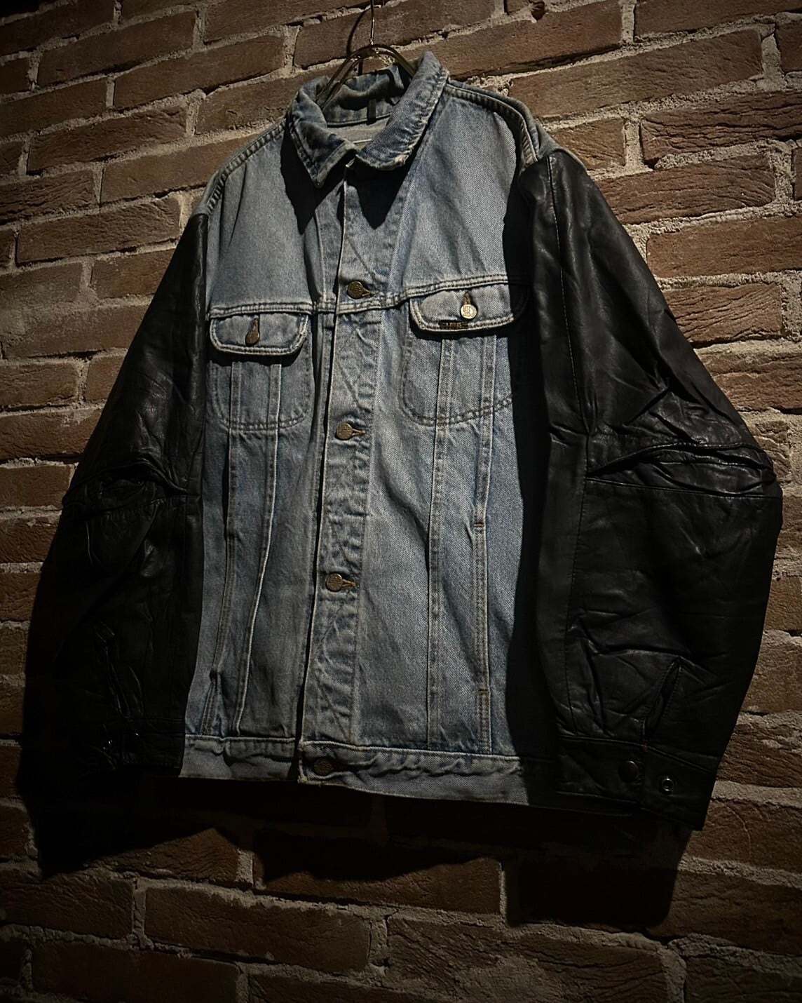 レザーとデニムという雰囲気の異なる、バイマテリアルの掛け合わせによりコントラストが生まれ立体感、雰囲気を醸し出し、リメイクの中でも非常にクオリティの高い1着かと。