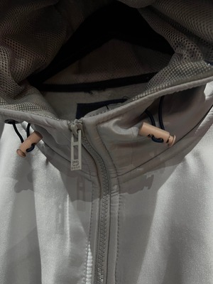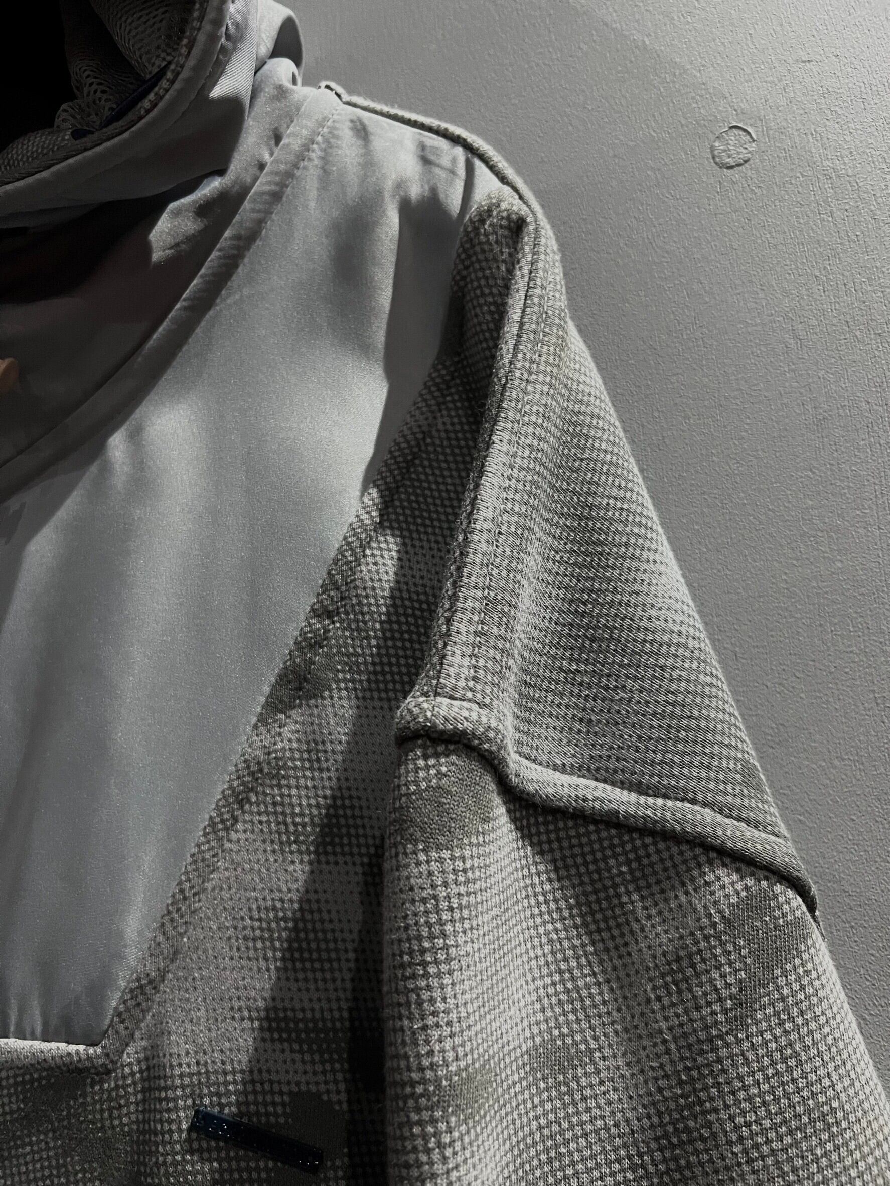 パーカーでは稀少なハイネック仕様の首周りになっており、首元までの暖かさに加え、インナーに差し込んだ時の存在感を増してくれます。