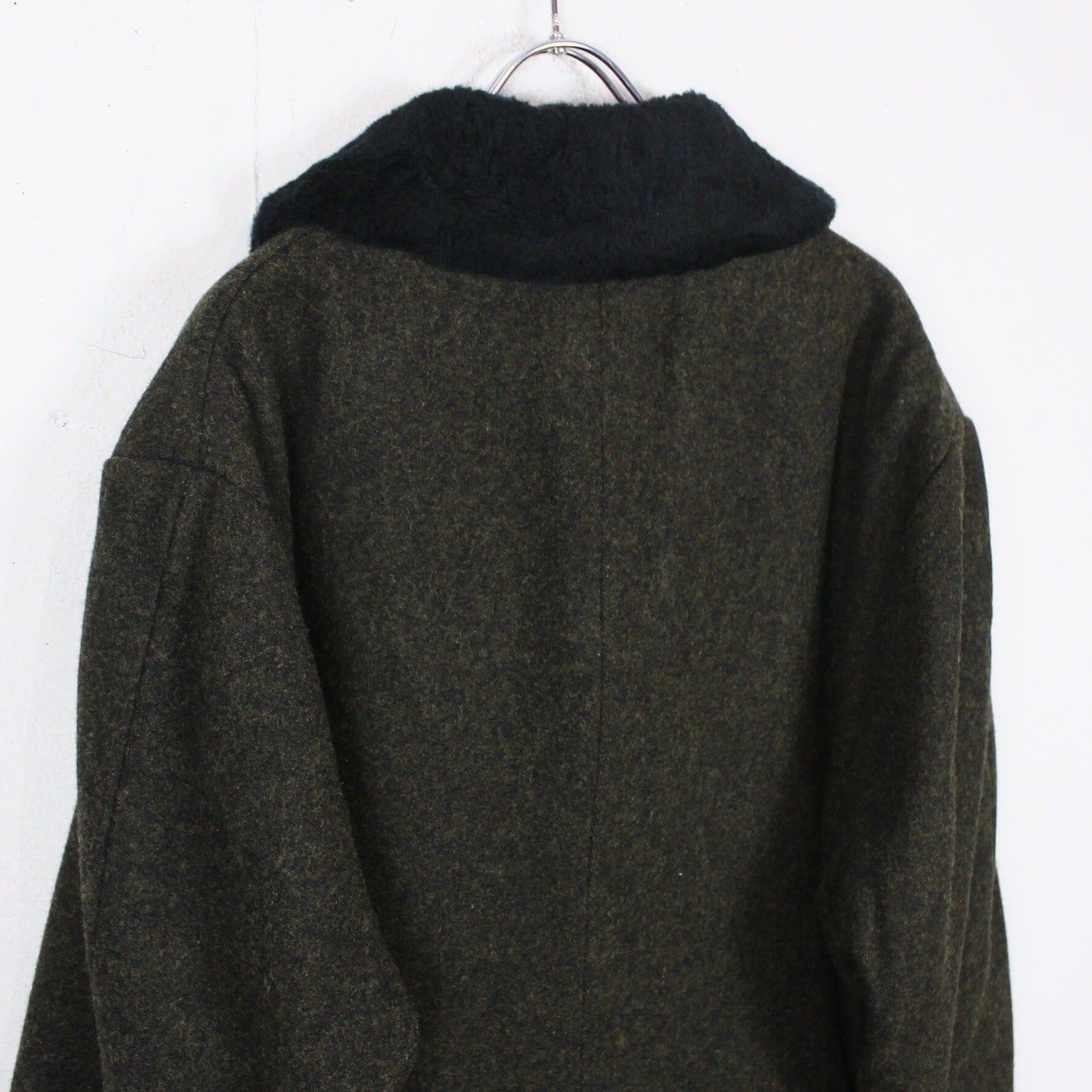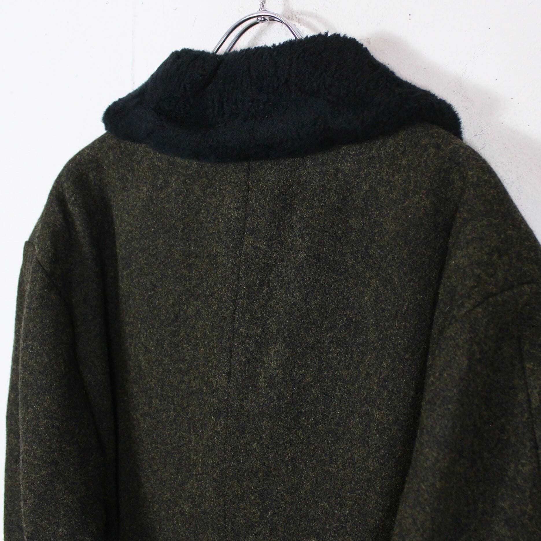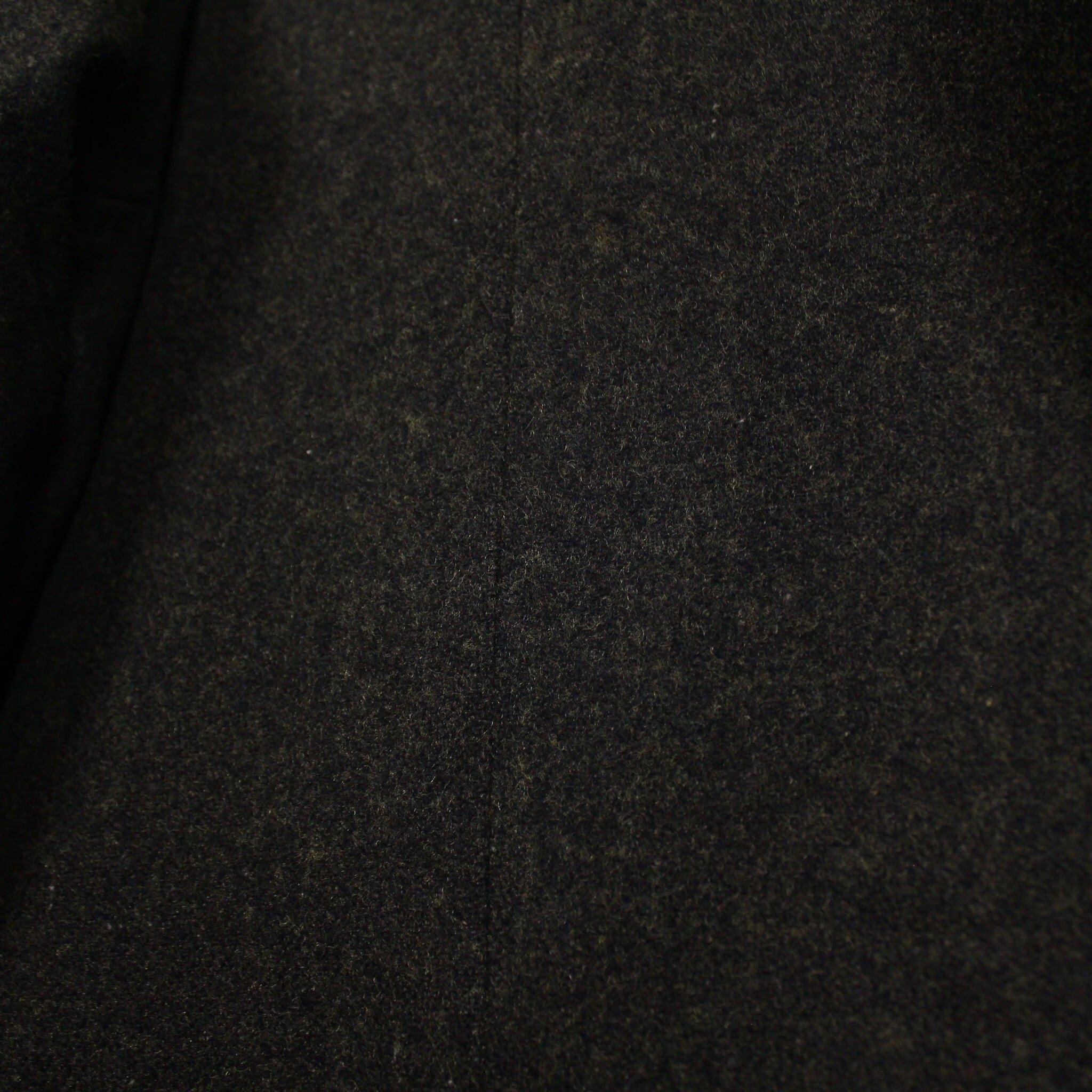 前立てはバスケットボタンを使用したシングルブレストの仕立て。襟元から内側にかけてファー素材の裏地が付いているため保温性も非常に高く、今時期のアウターとして素晴らしい活躍を見せてくれるかと。