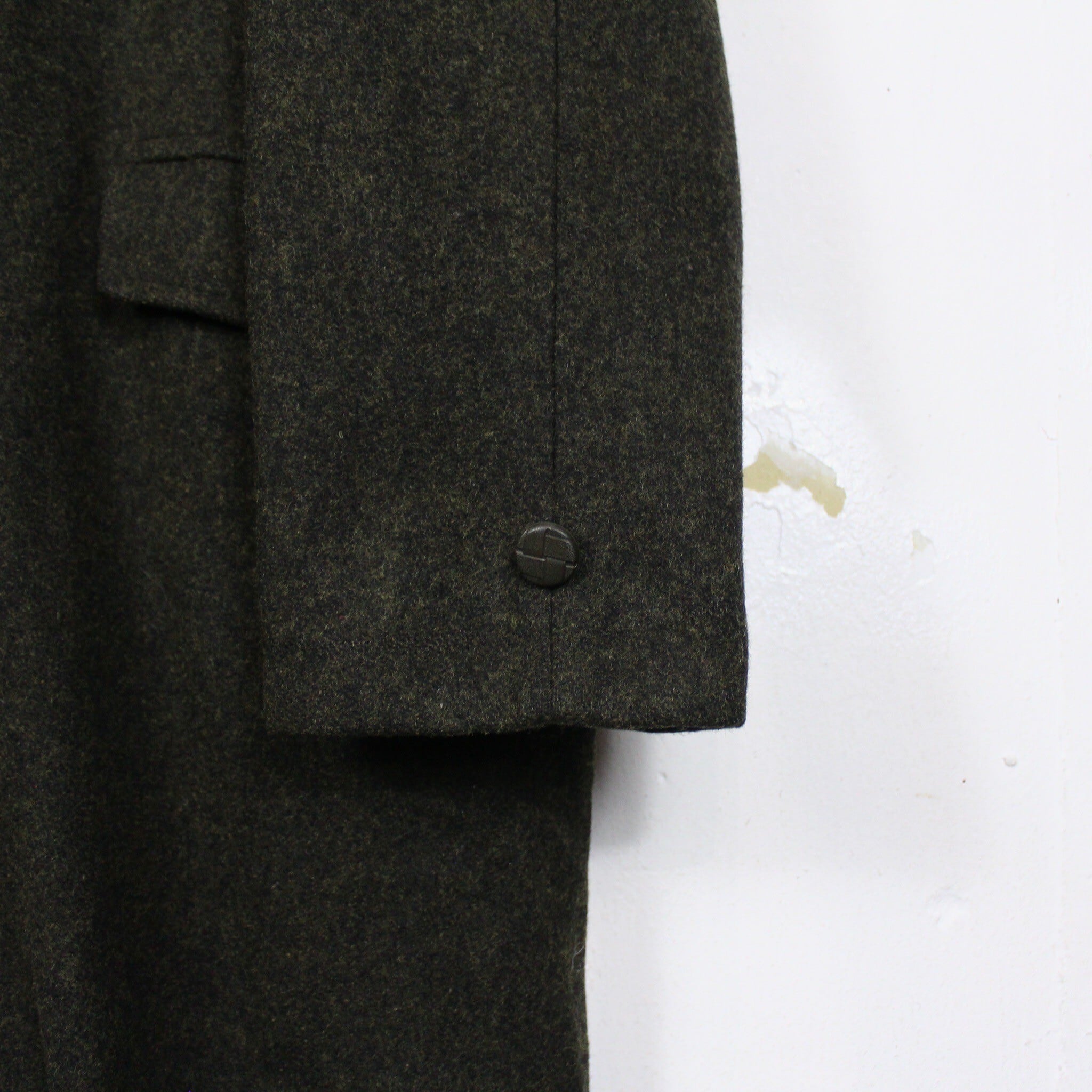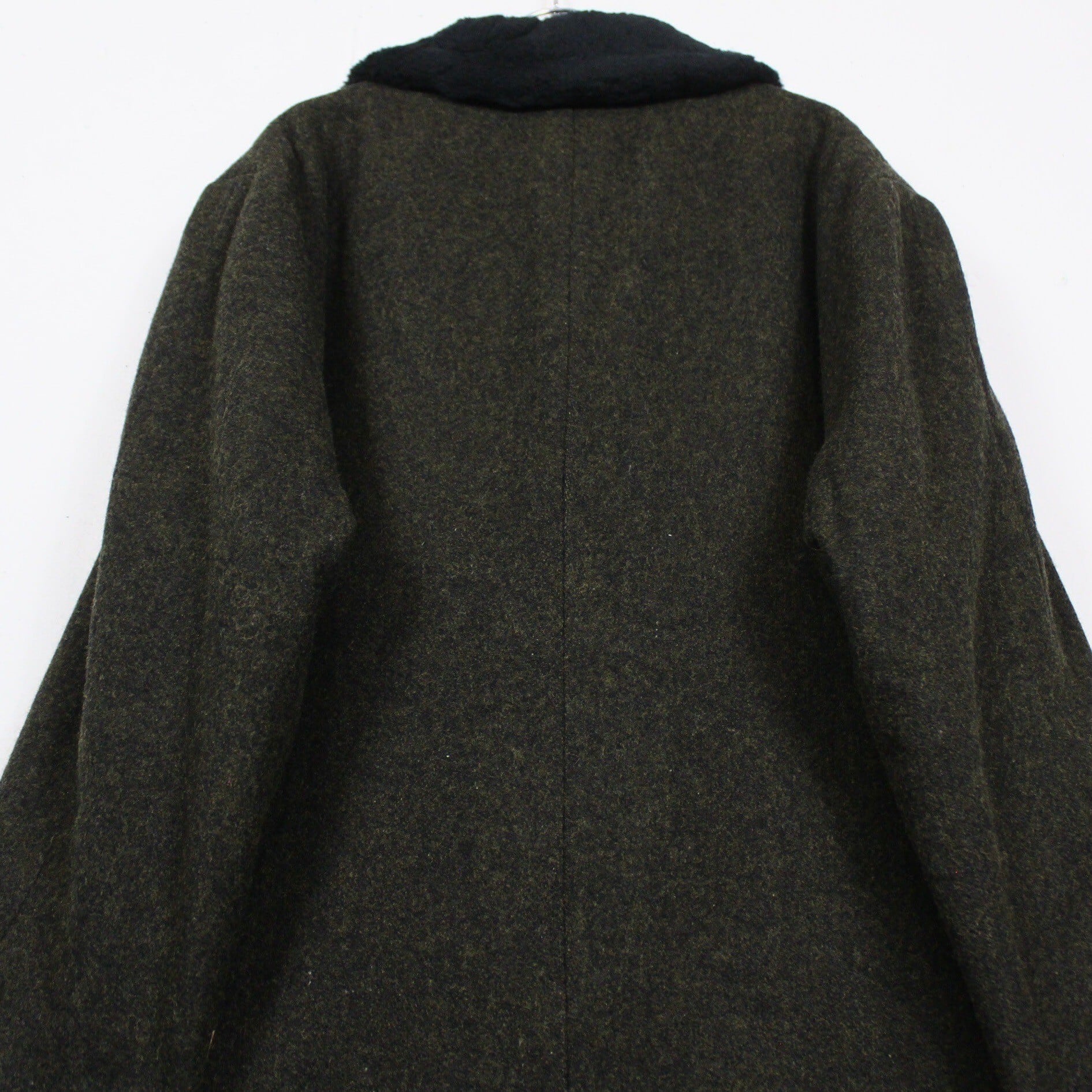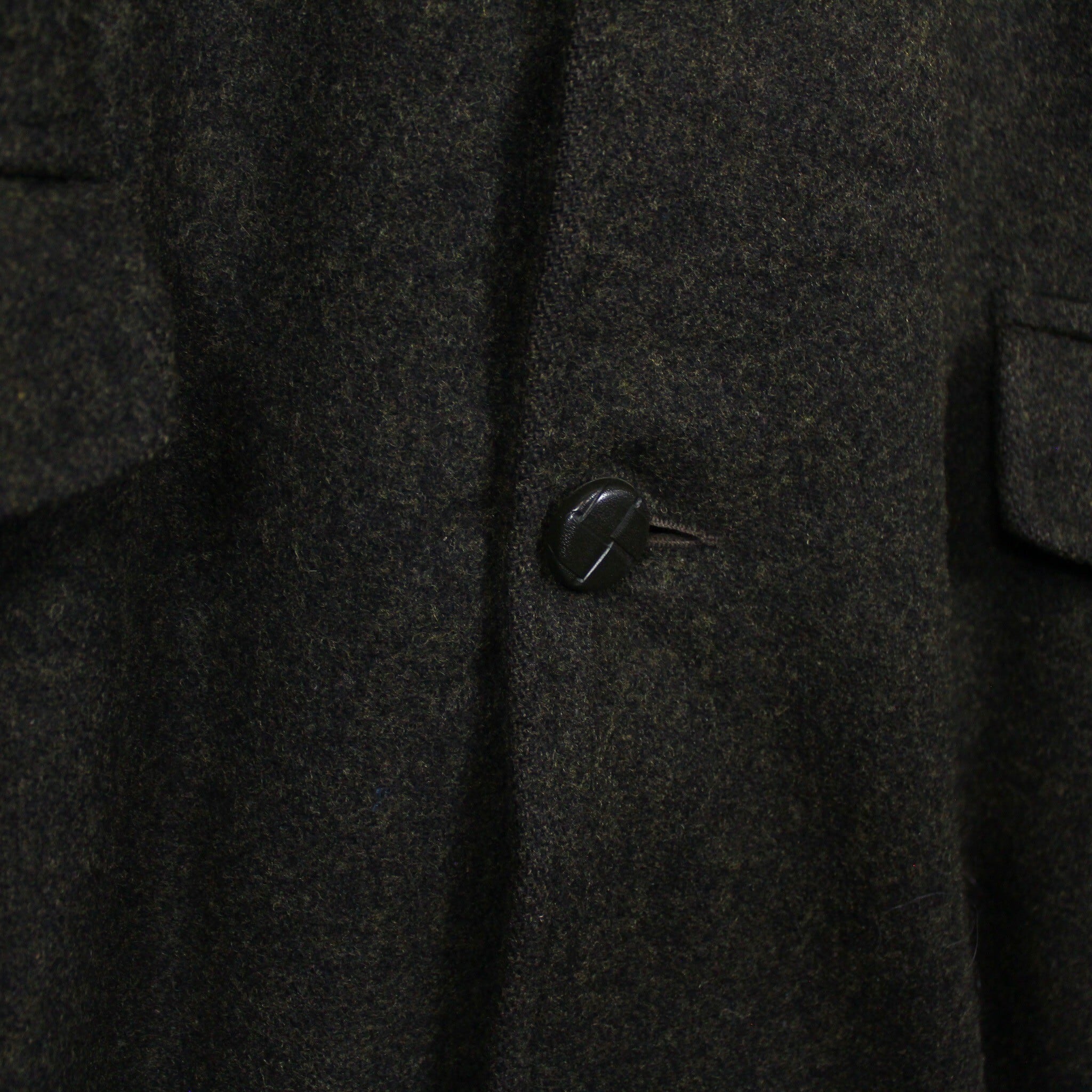 前立てはバスケットボタンを使用したシングルブレストの仕立て。襟元から内側にかけてファー素材の裏地が付いているため保温性も非常に高く、今時期のアウターとして素晴らしい活躍を見せてくれるかと。