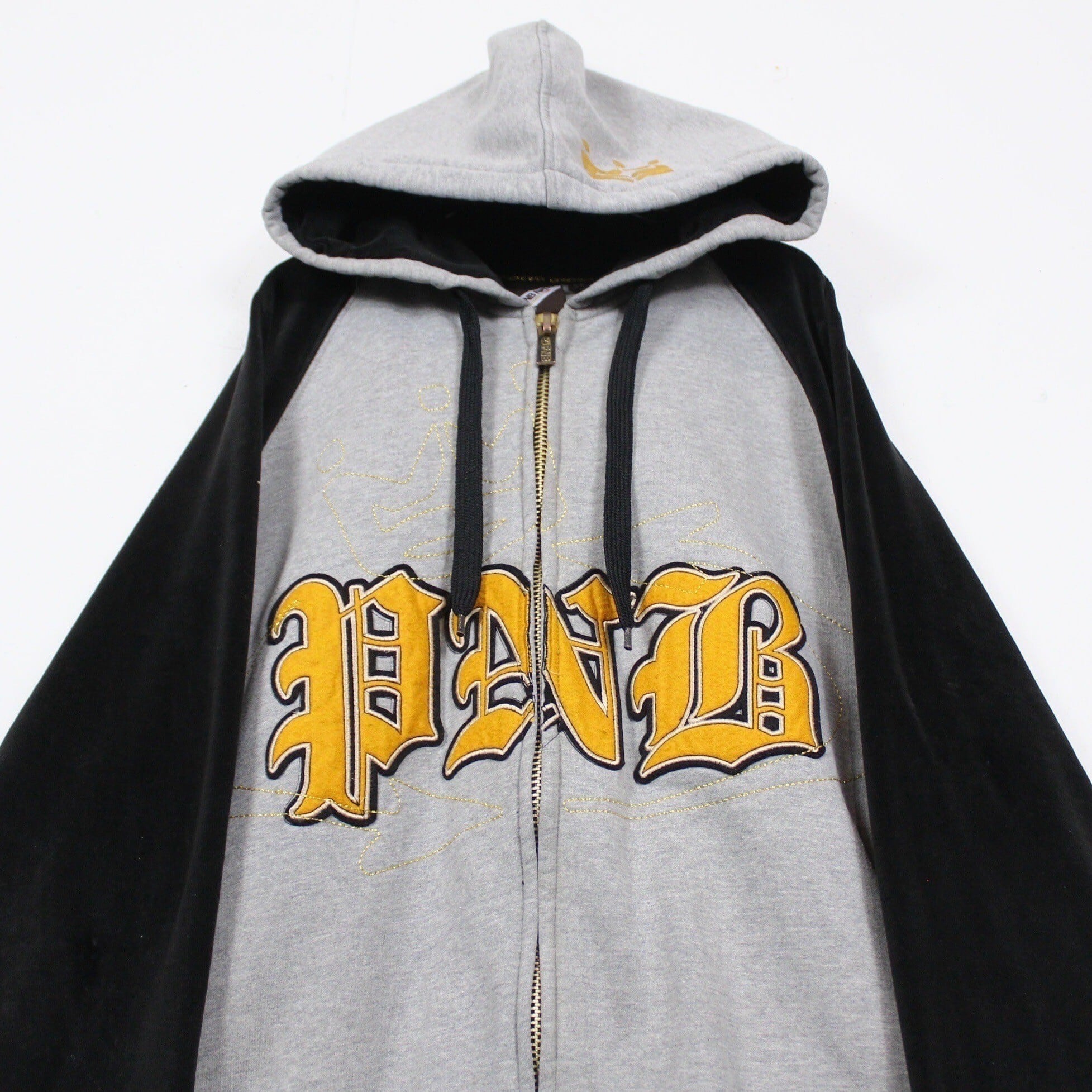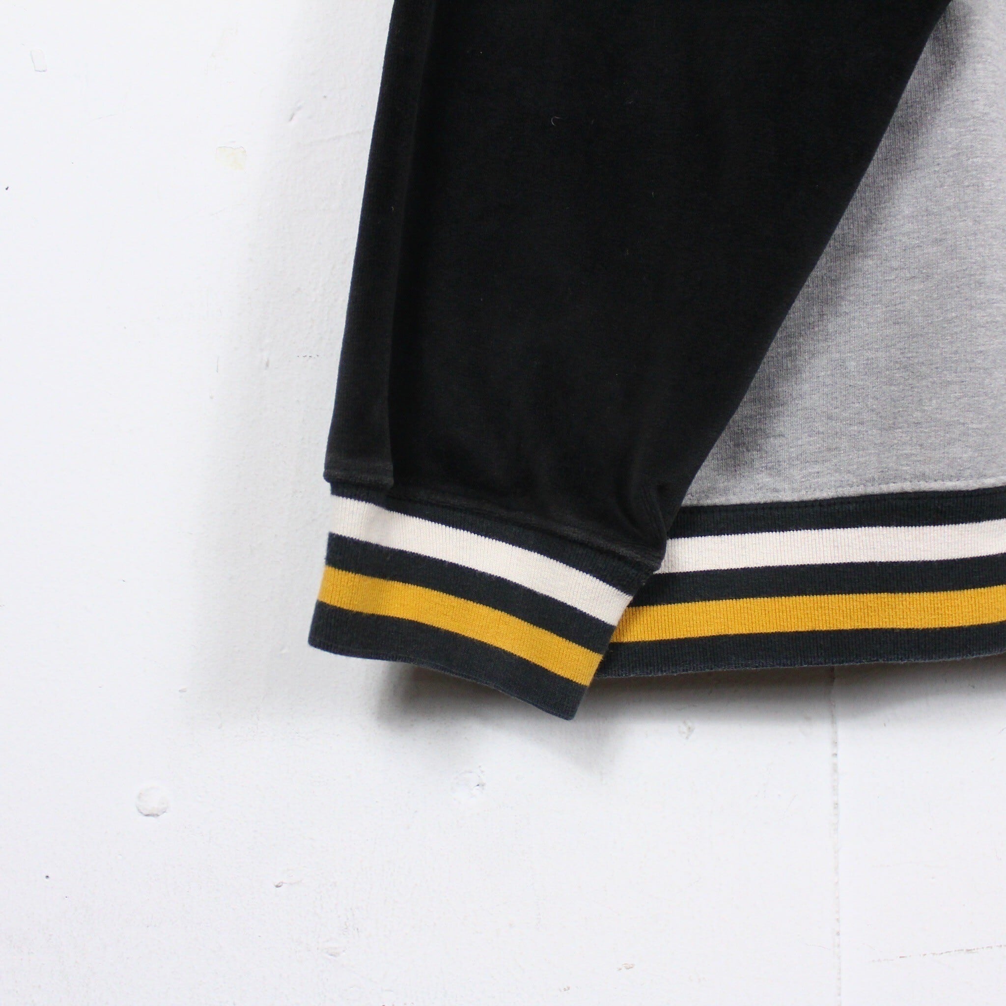 グレー×黒を切り替えたボディに、オールドイングリッシュの字体でブランドロゴを載せた逸品。当時らしい雰囲気を纏いながら、現代のストリートシーンでもお楽しみ頂ける1着かと。