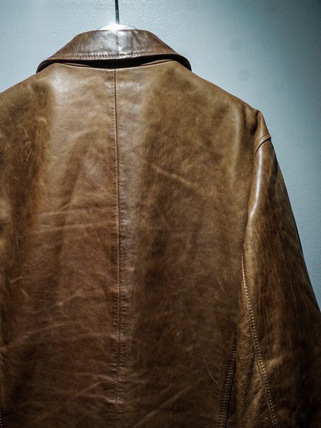 経年によるレザー特有のエイジングが味わい深く、艶やかな光沢が雰囲気を押し出すブラウンレザーを用いたスペシャルな1着。