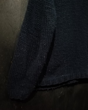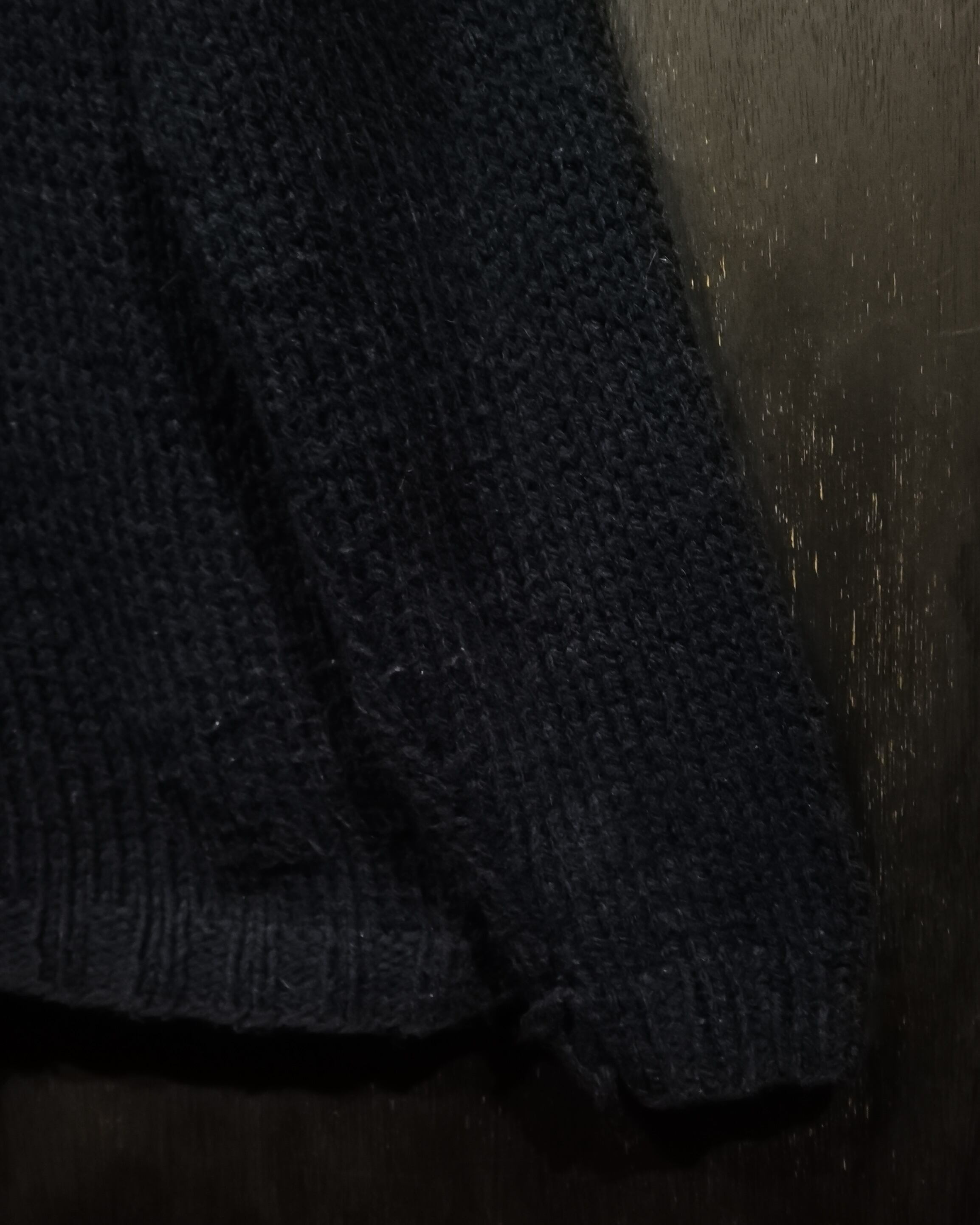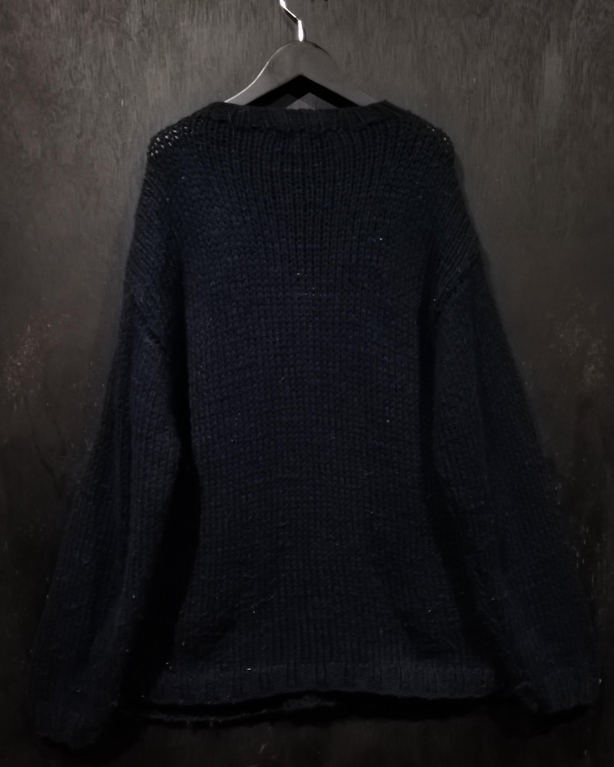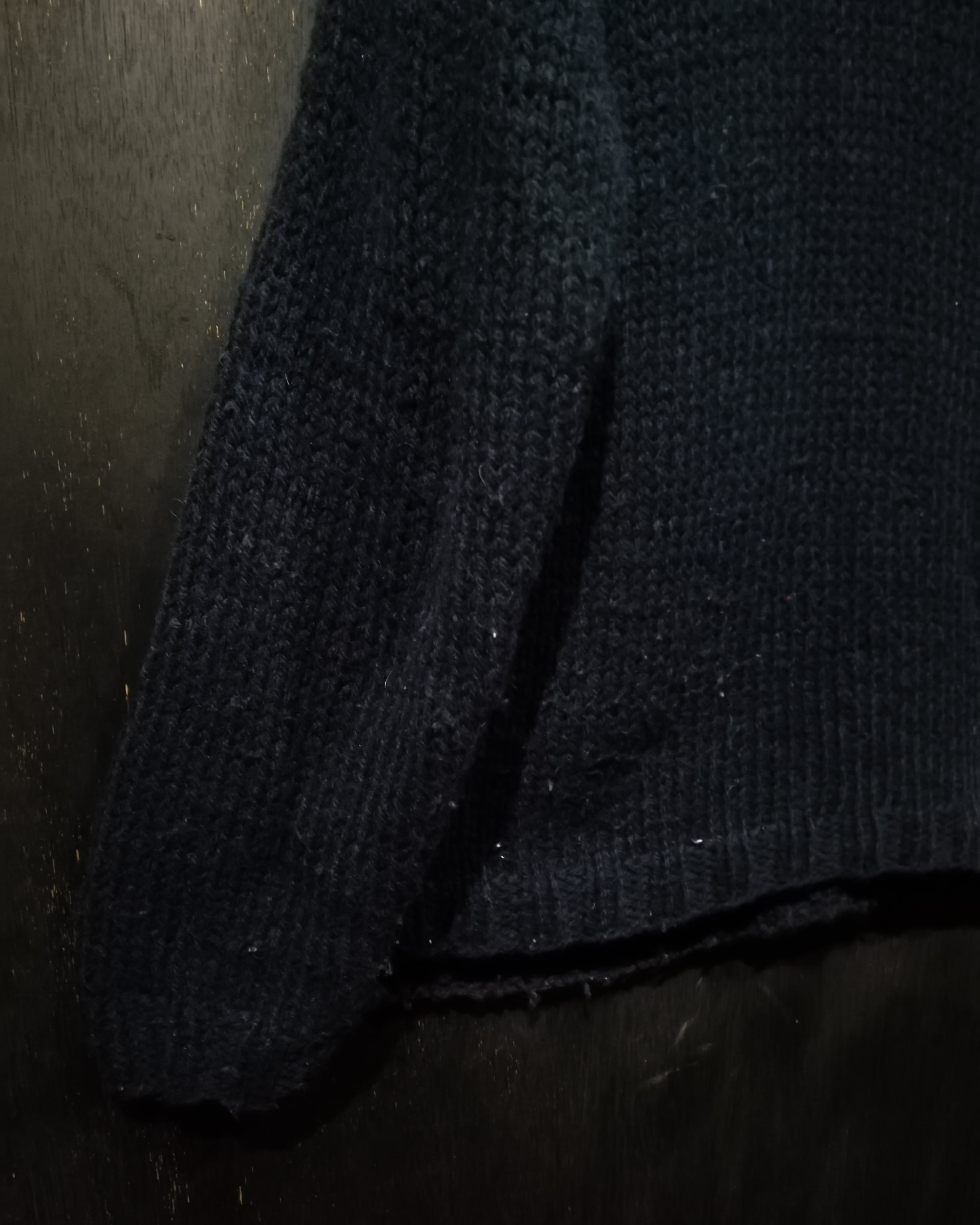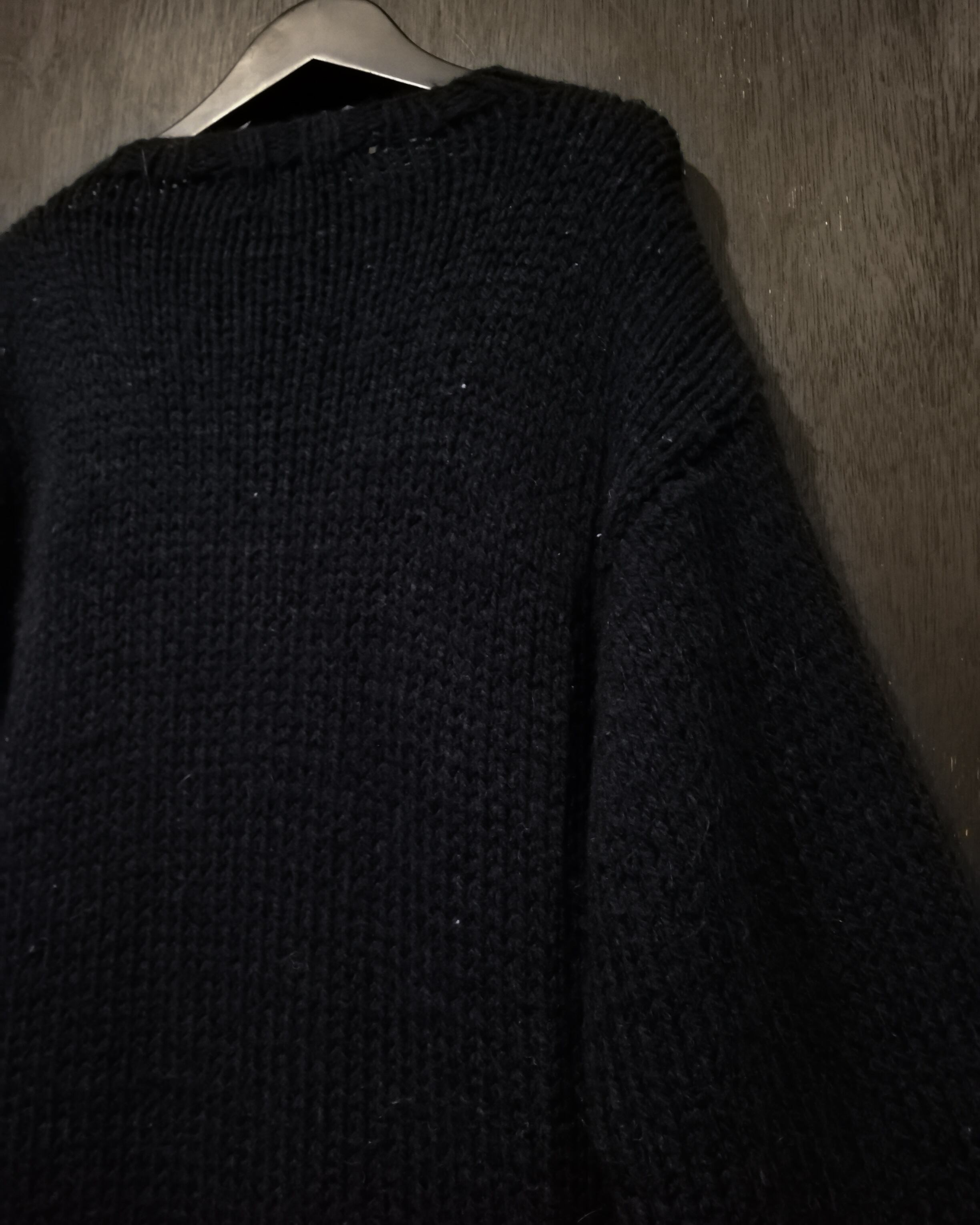 黒のケーブルニットをベースに、アメリカのワーナーブラザーズが制作するアニメシリーズ、"ルーニーテューンズ"に登場する"トゥイーティー"を載せた1着。