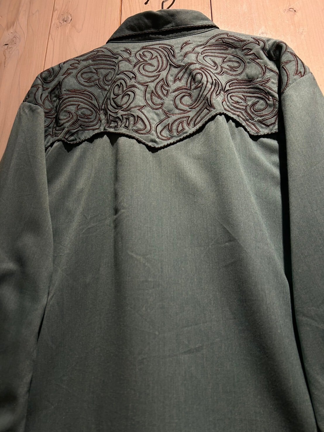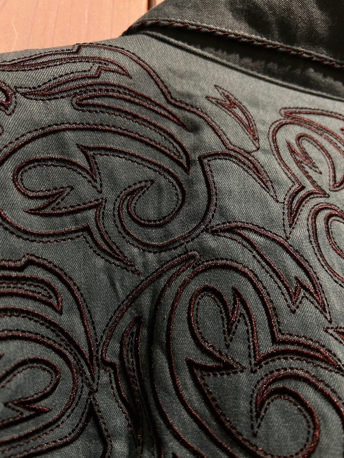 ライトブルーのボディをベースに、前後のヨーク、袖口にまでトライバル調の刺繍を刻んだスペシャルなウエスタンシャツ。