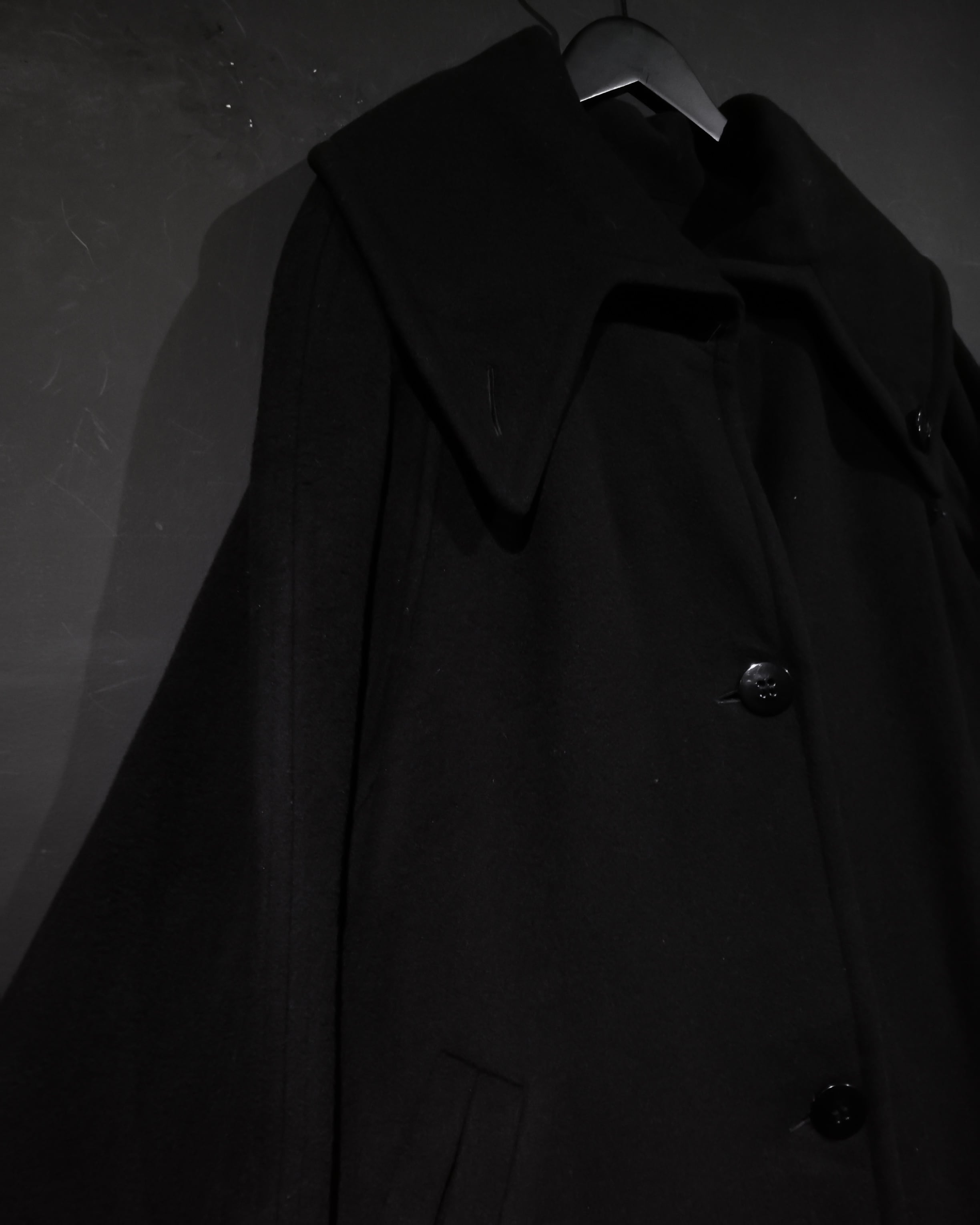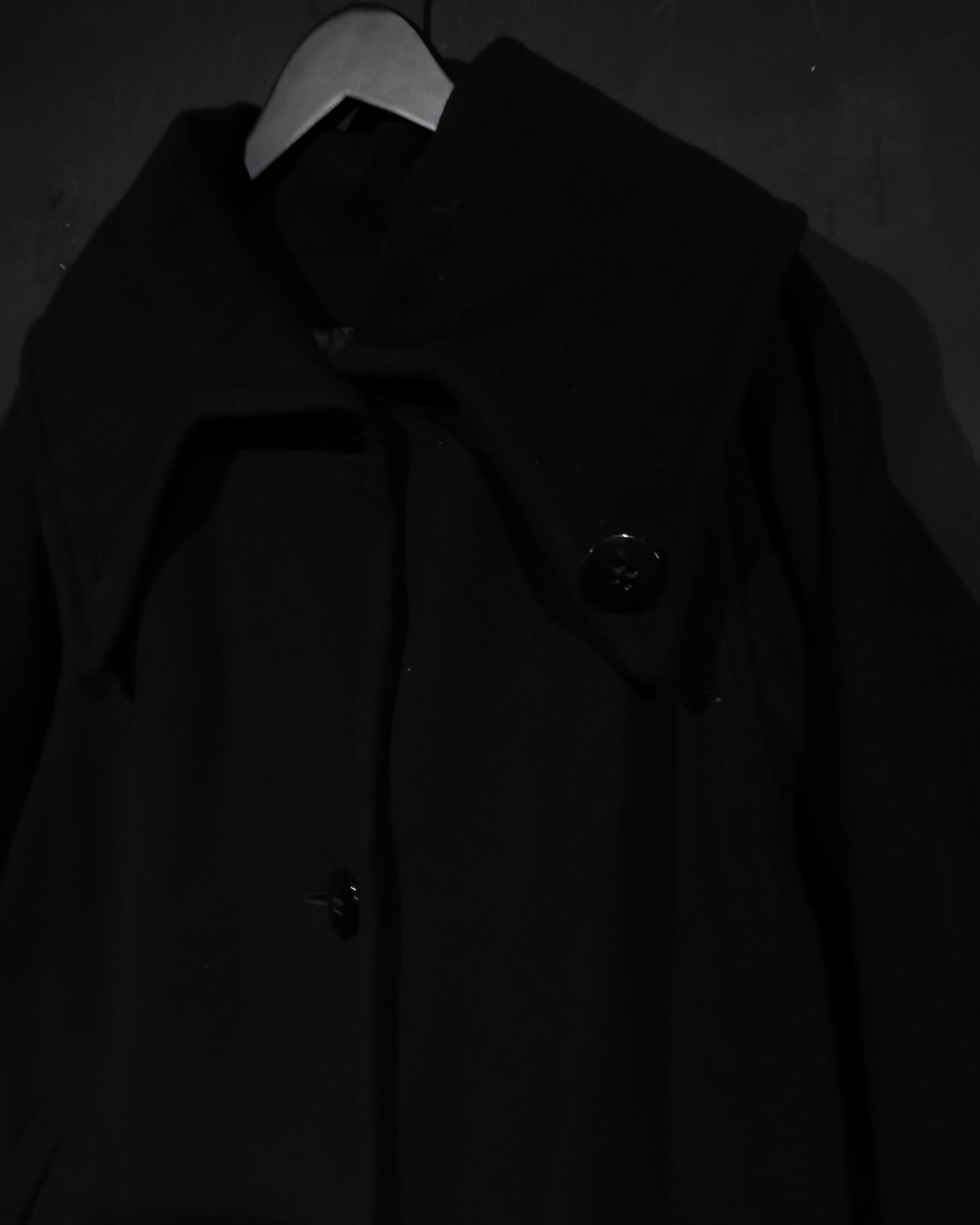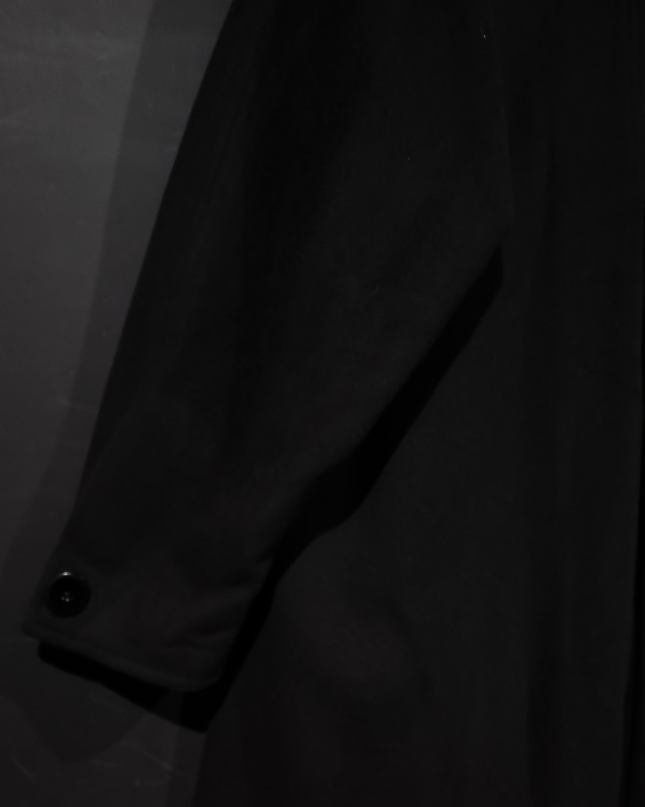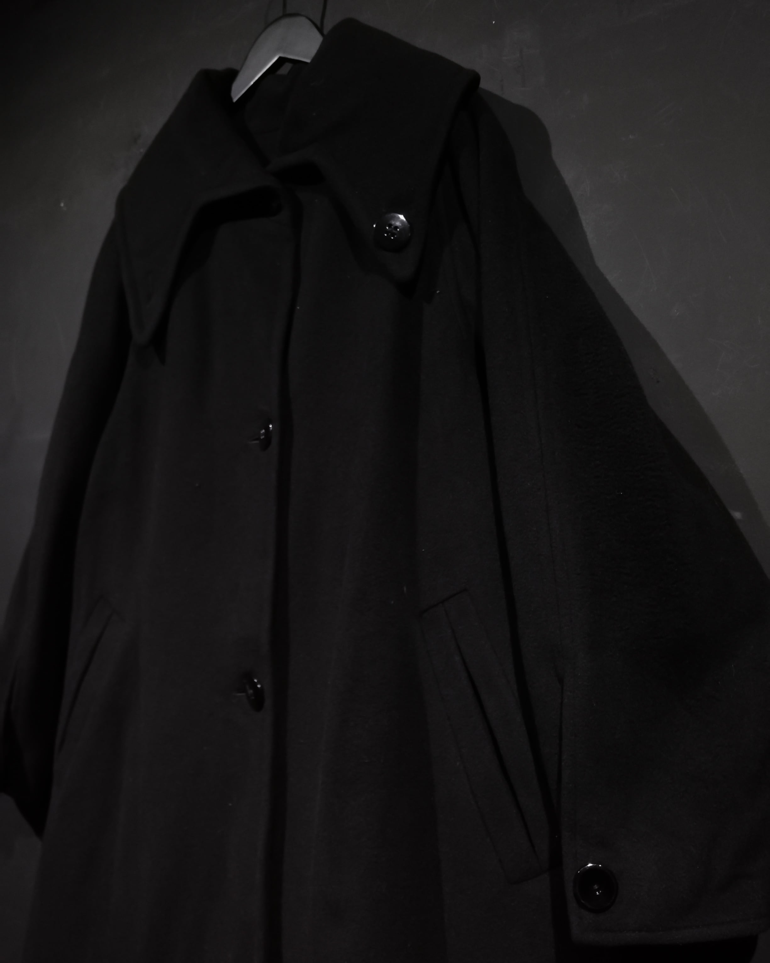 素材が素晴らしいのは言うまでもありませんが、目が惹かれるのは大きな襟のディテール。デザインのアクセントになっていると共に、スタンドカラーにも仕様変更可能、服好きの心を射抜かれるギミックですね、、、