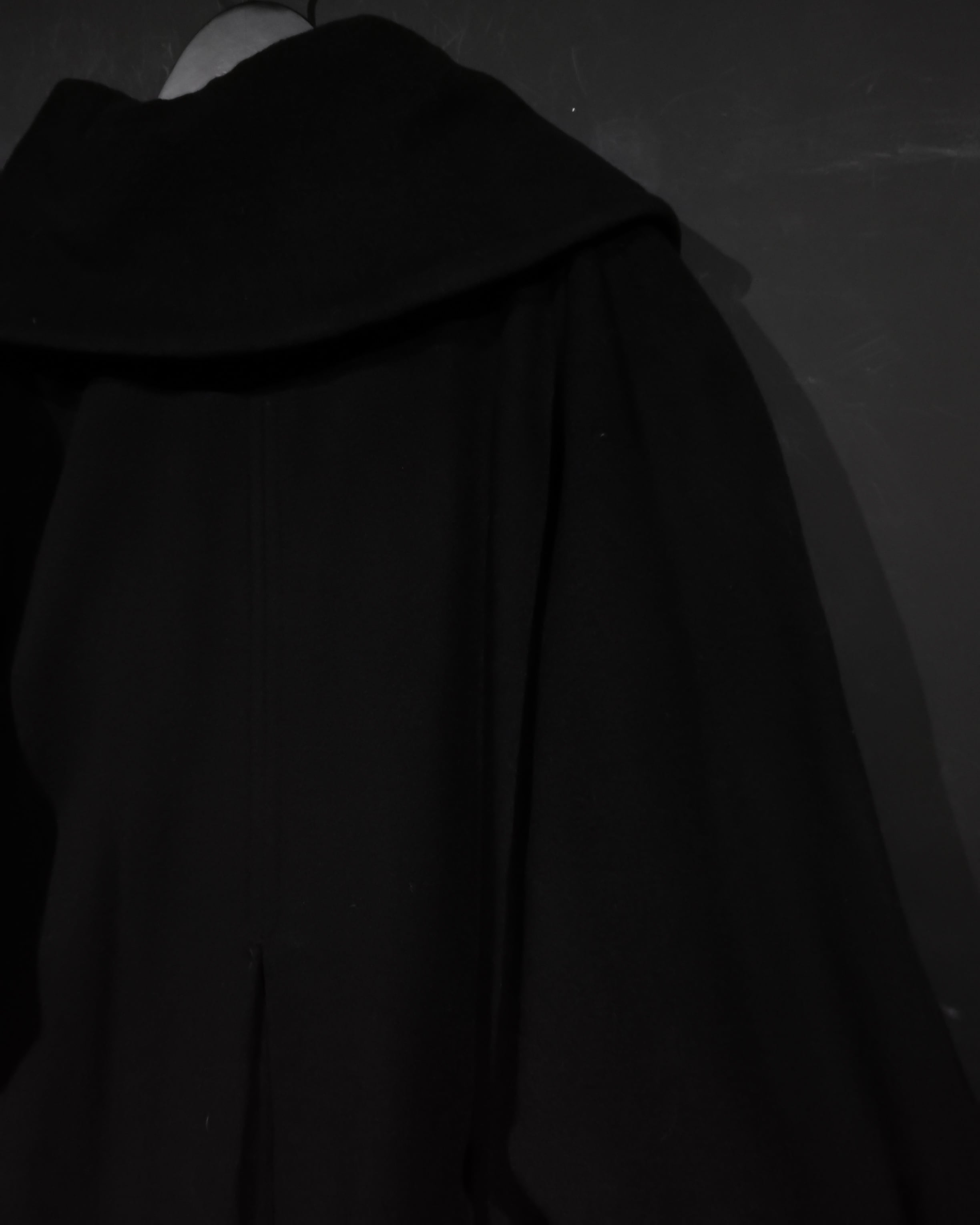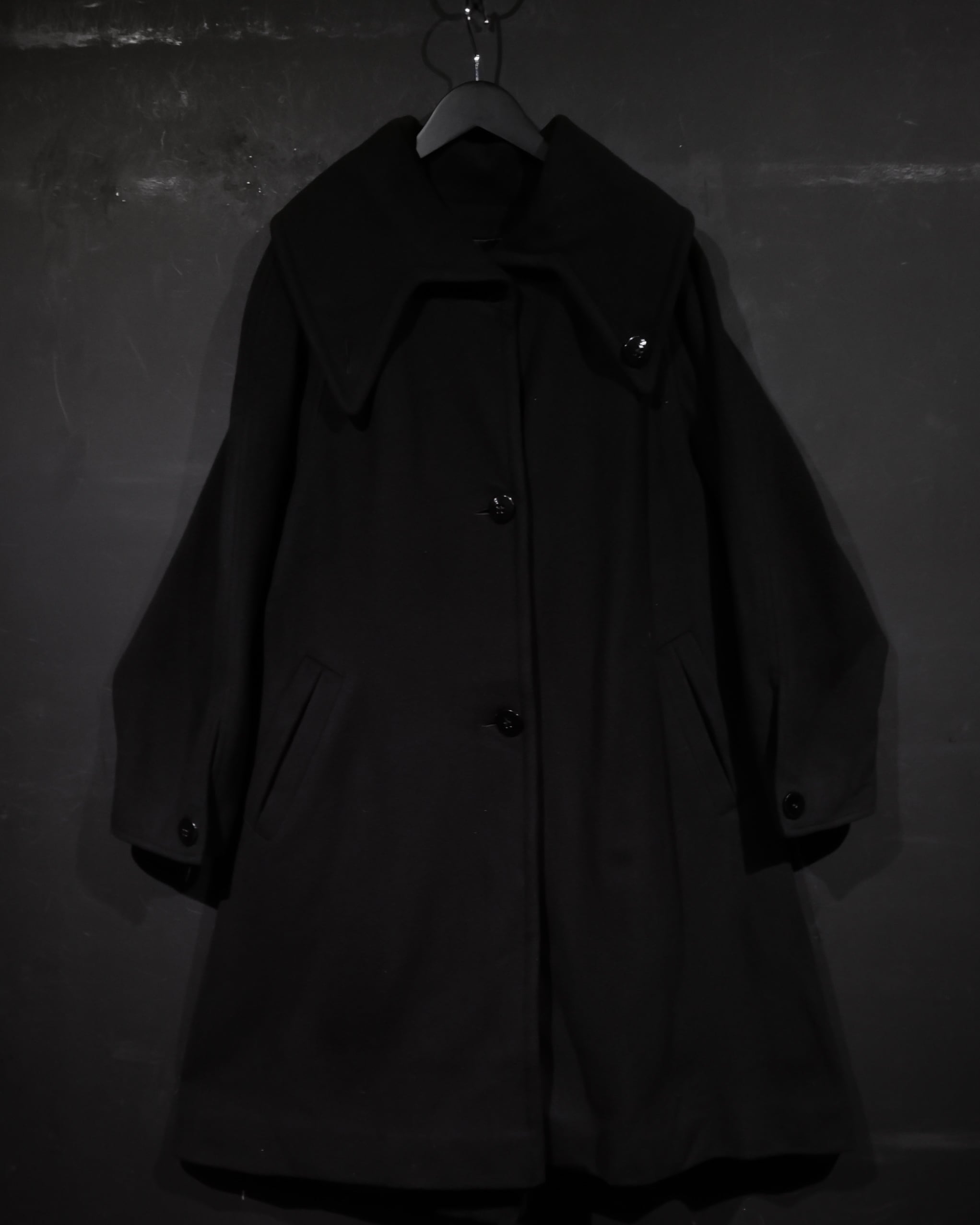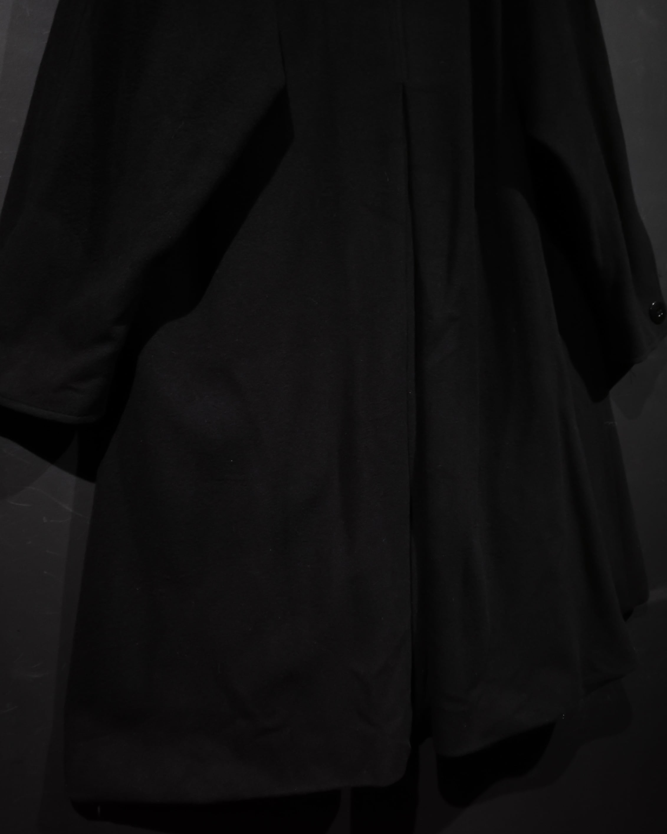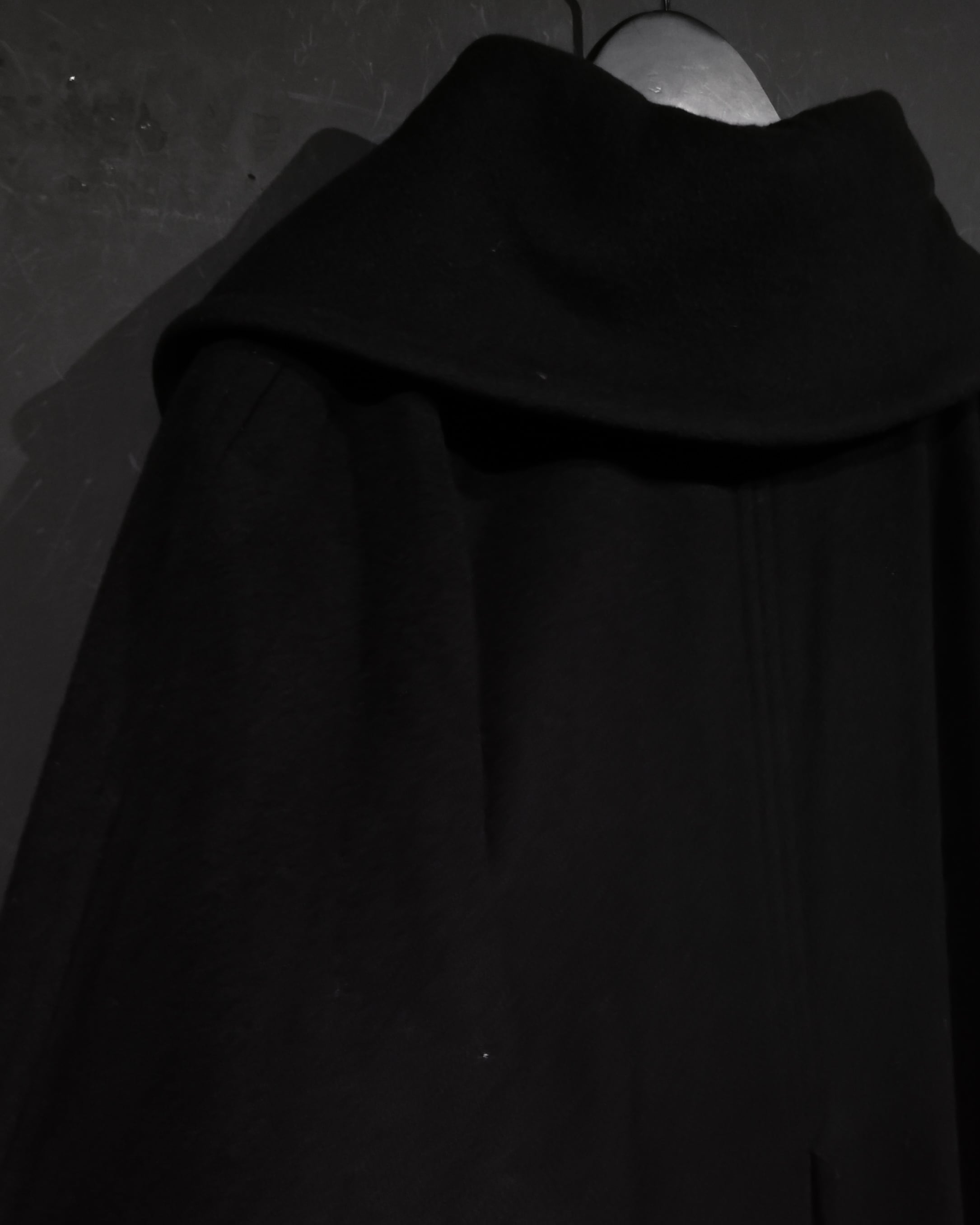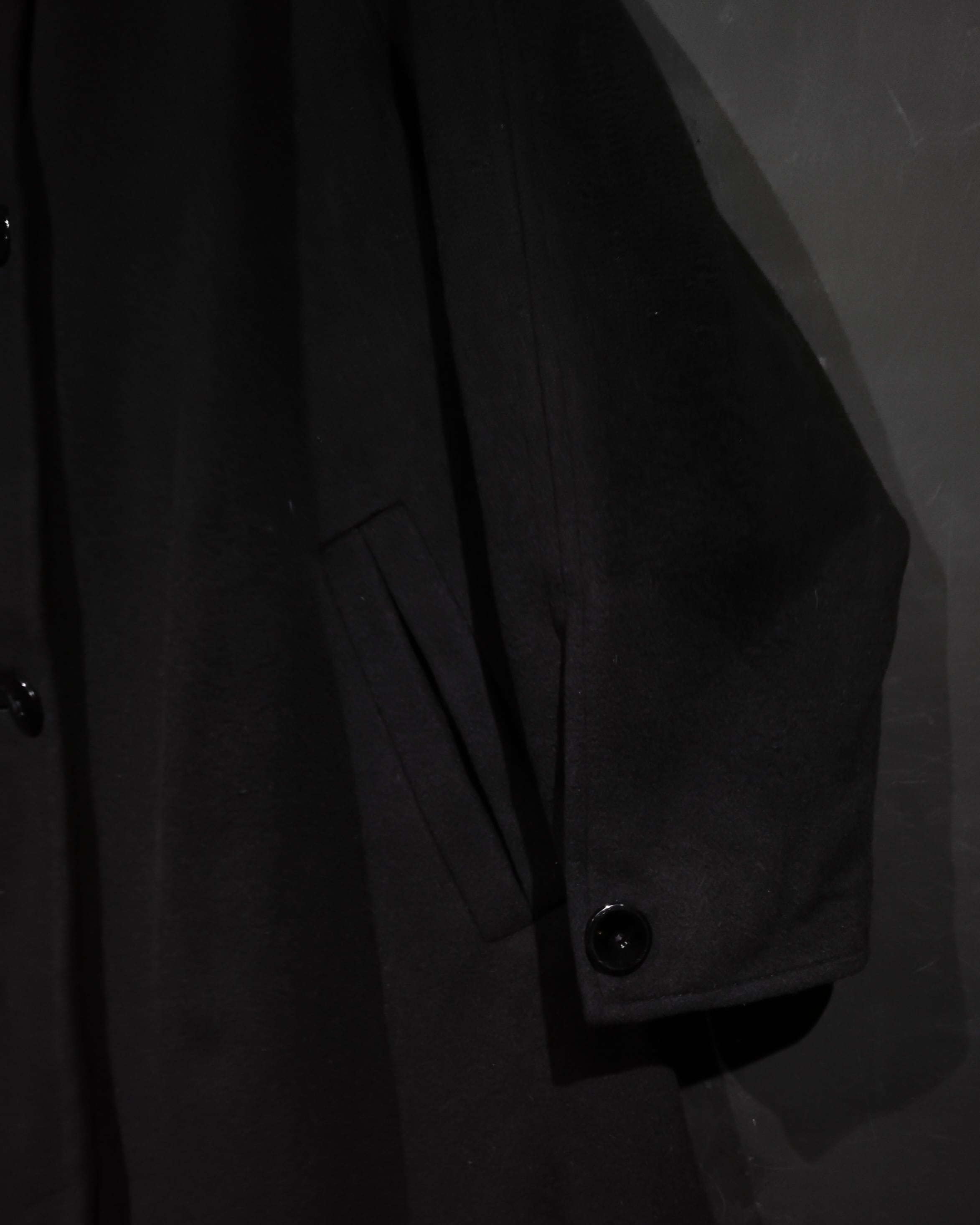 素材が素晴らしいのは言うまでもありませんが、目が惹かれるのは大きな襟のディテール。デザインのアクセントになっていると共に、スタンドカラーにも仕様変更可能、服好きの心を射抜かれるギミックですね、、、
