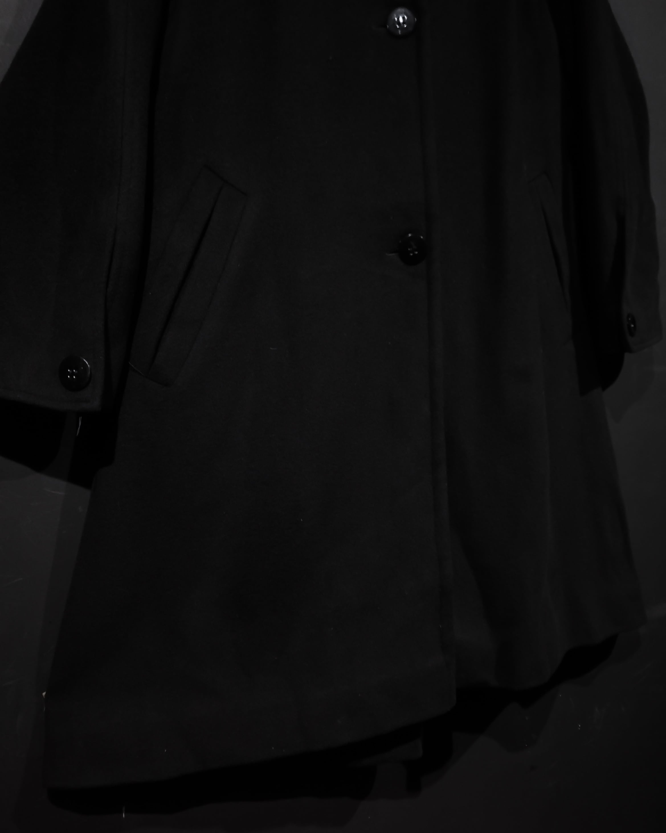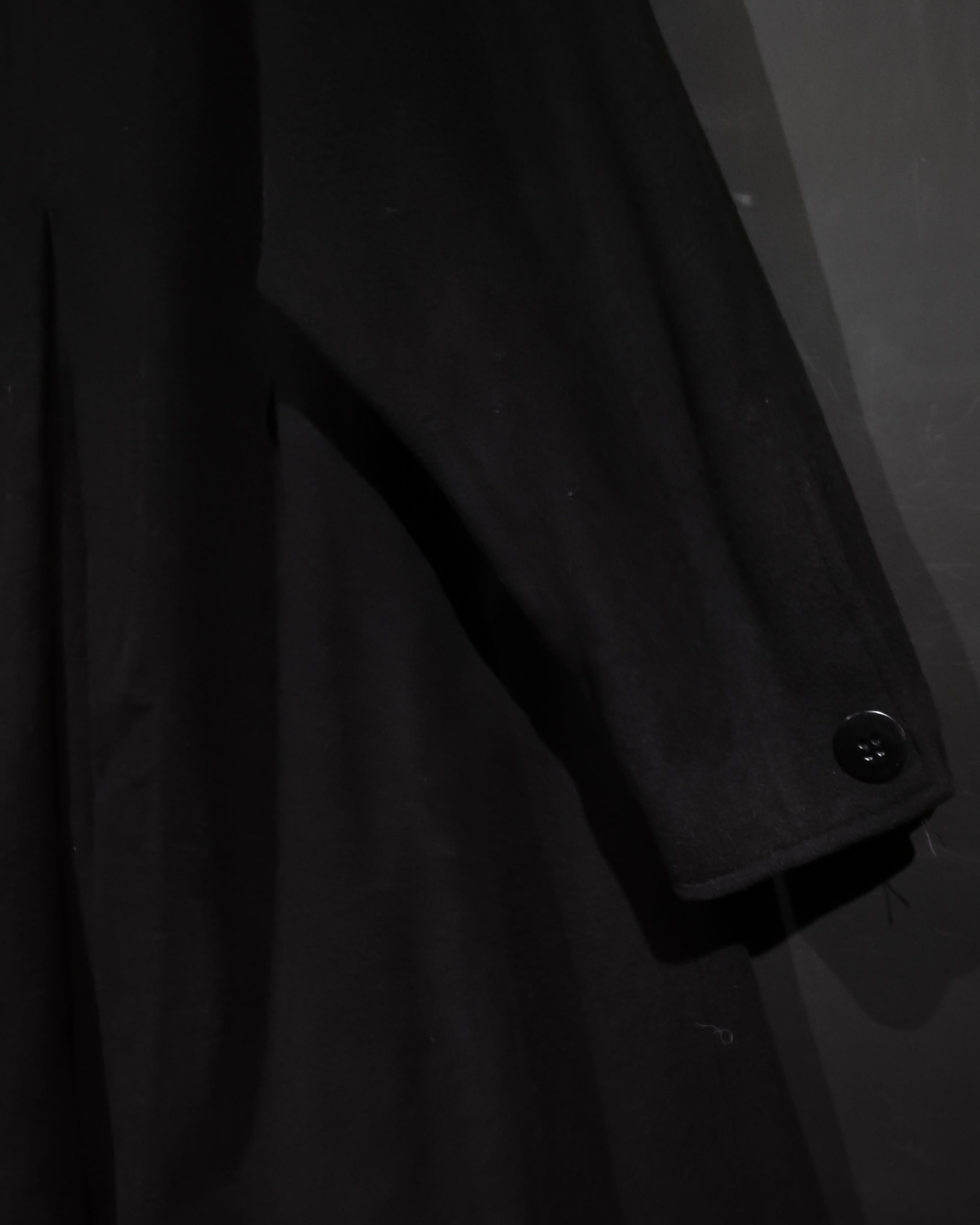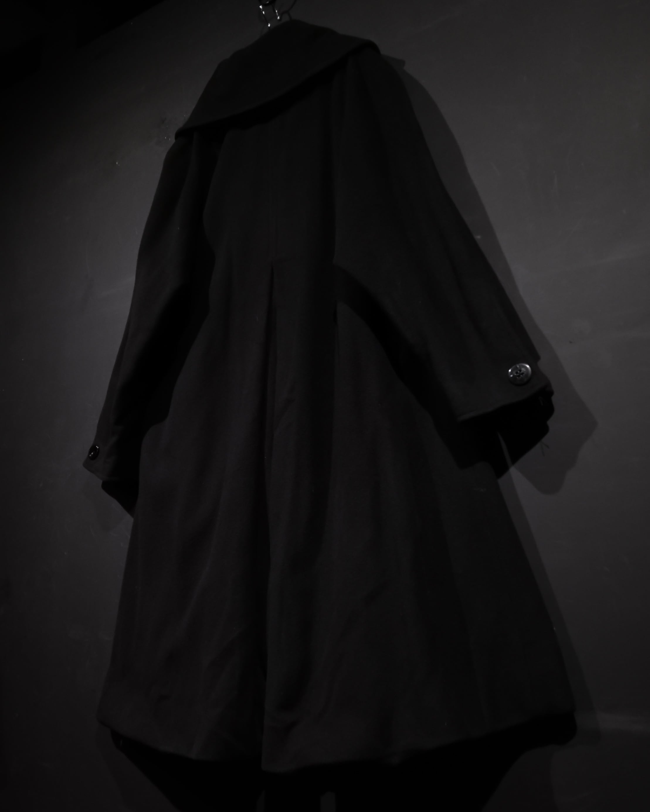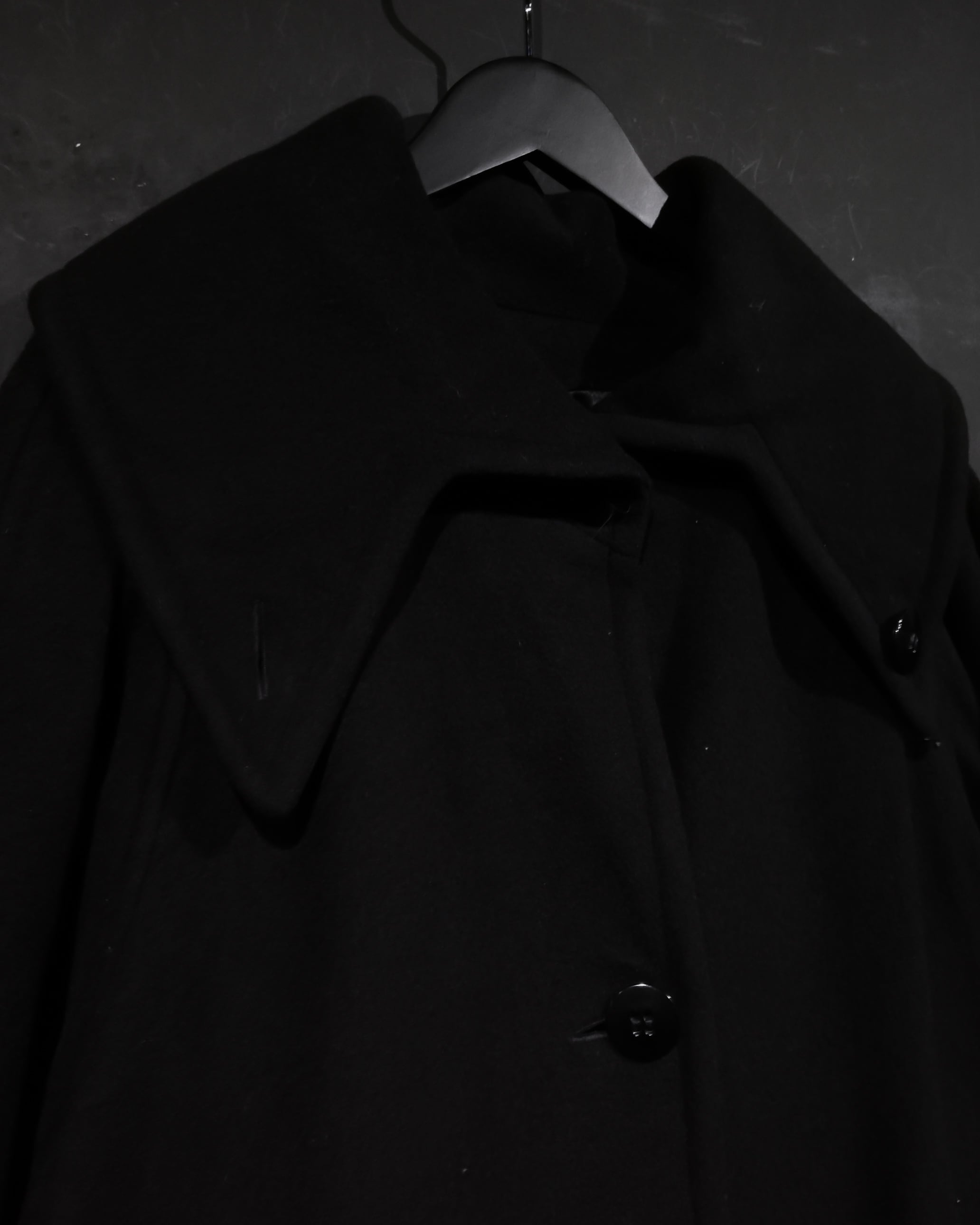 素材が素晴らしいのは言うまでもありませんが、目が惹かれるのは大きな襟のディテール。デザインのアクセントになっていると共に、スタンドカラーにも仕様変更可能、服好きの心を射抜かれるギミックですね、、、