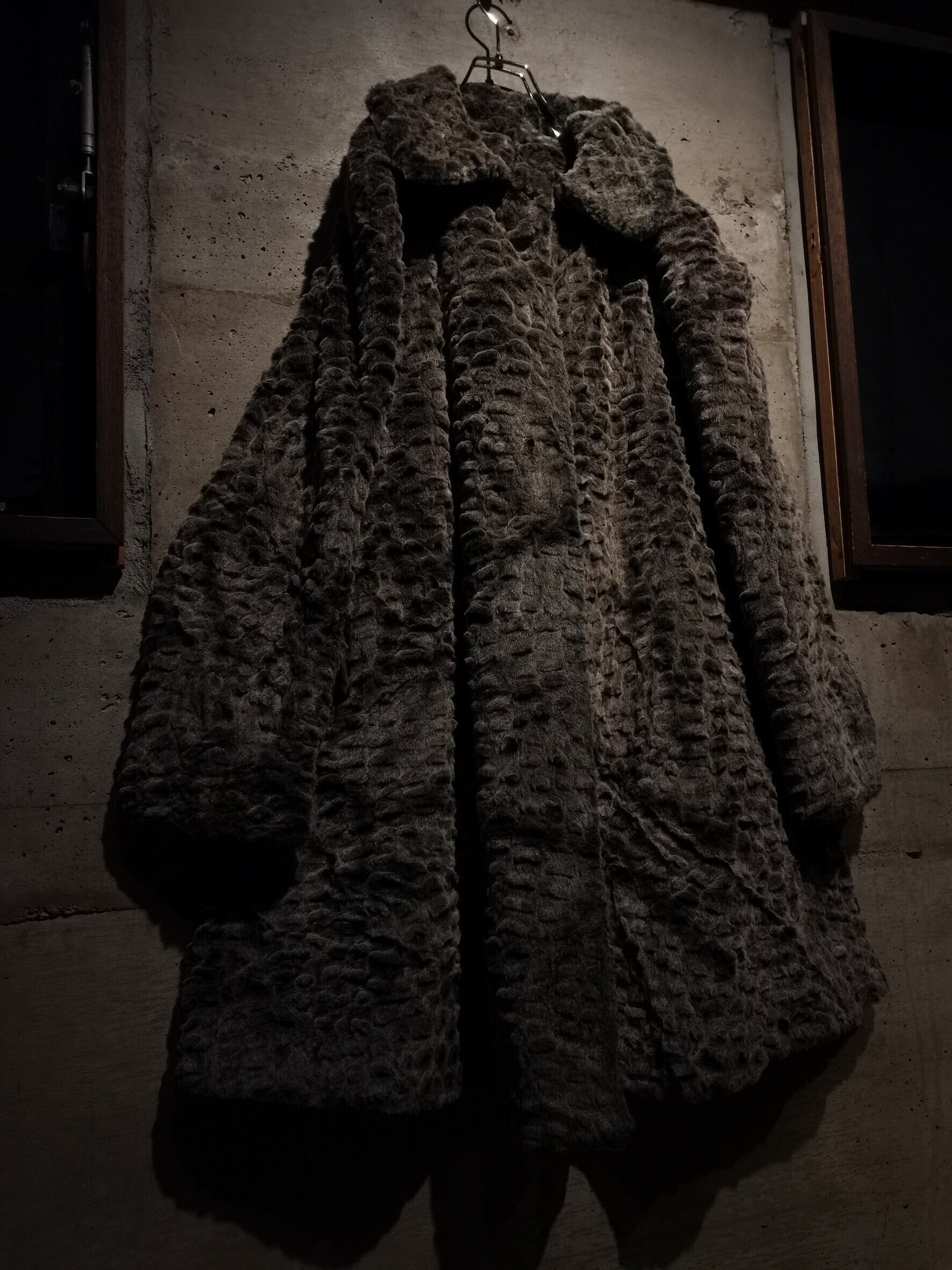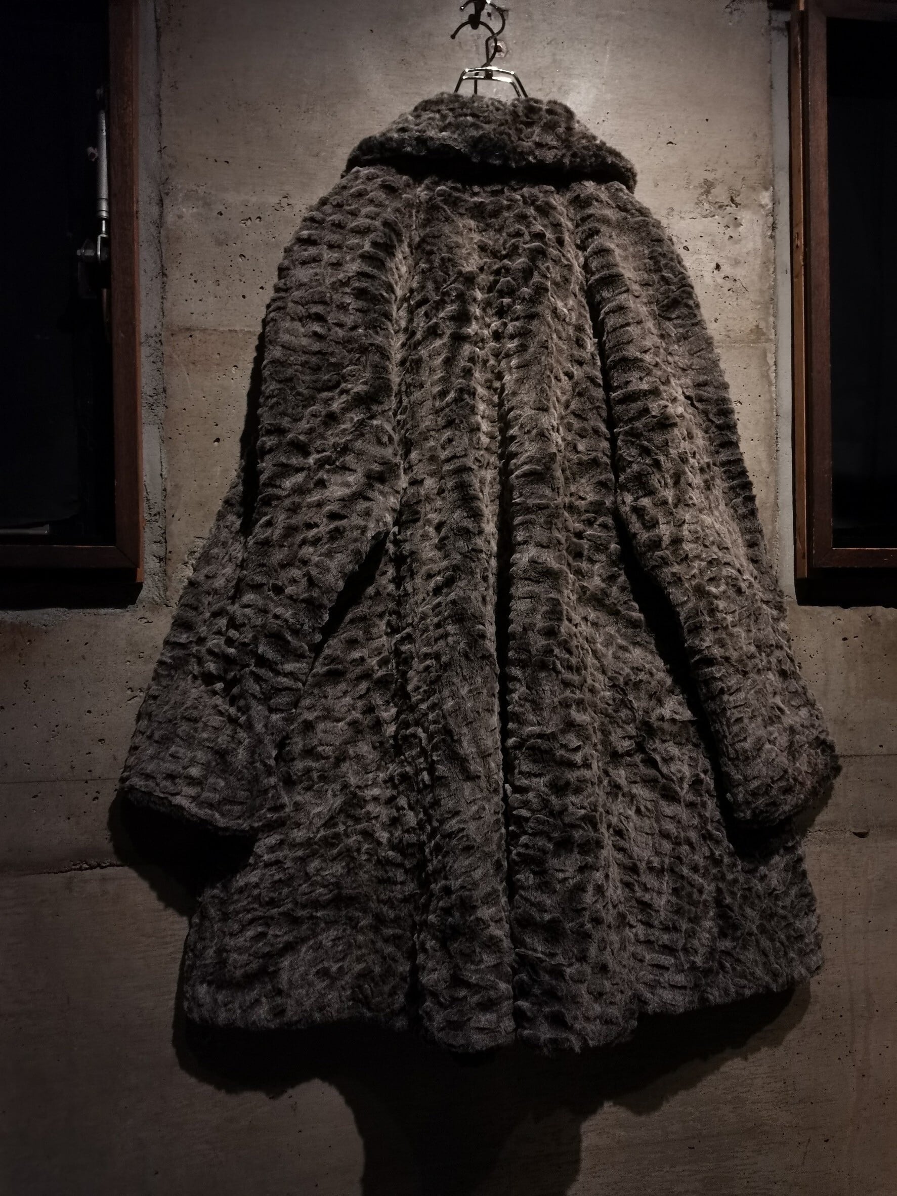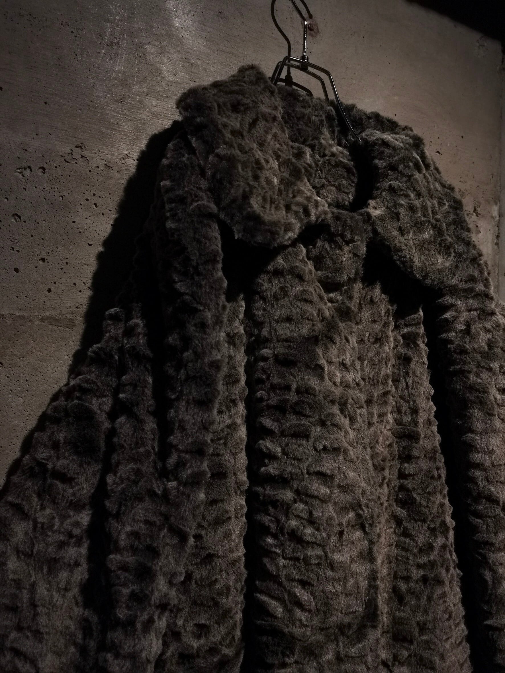 独特な凹凸が施されたフェイクファーの質感に加え、カラーリングやミニマルなディテール、そして美しいAラインシルエットが掛け合わさることで生み出された、非常にファッショナブルな逸品となっております。