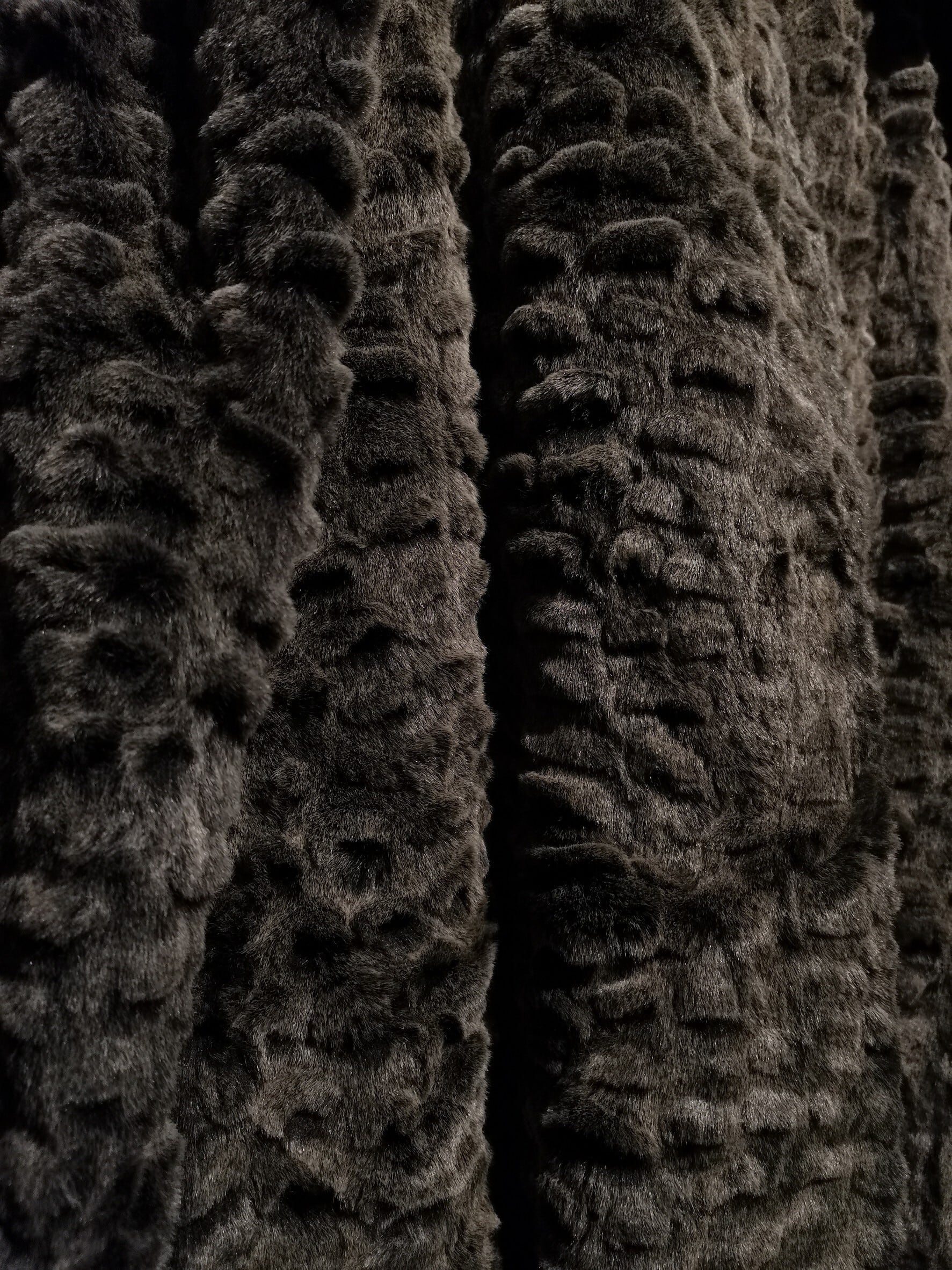 グレージュ×ブラウンをベースに仕上げられたフェイクファーに、ボディの凹凸感が掛け合わさることで、角度によって見え方を変える非常に奥ゆかしい表情を演出。