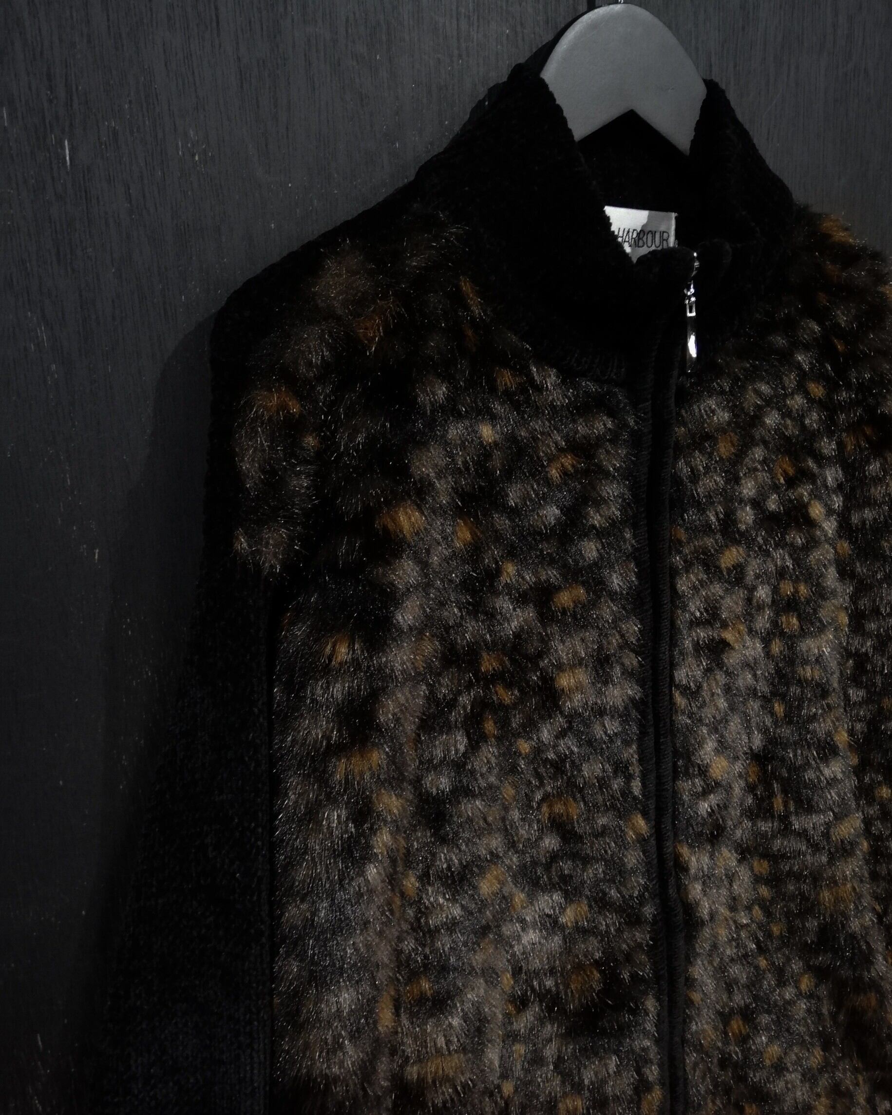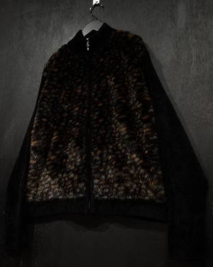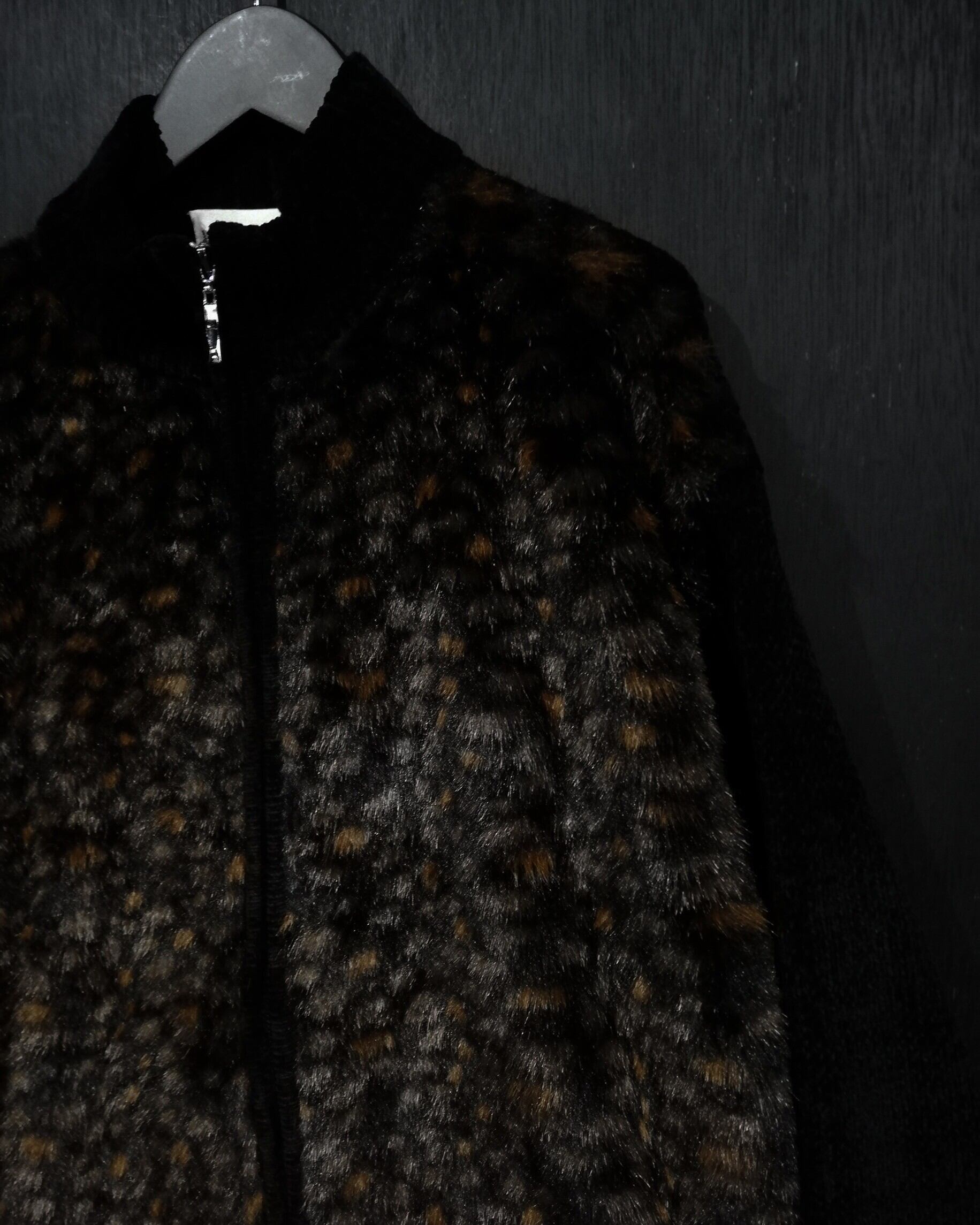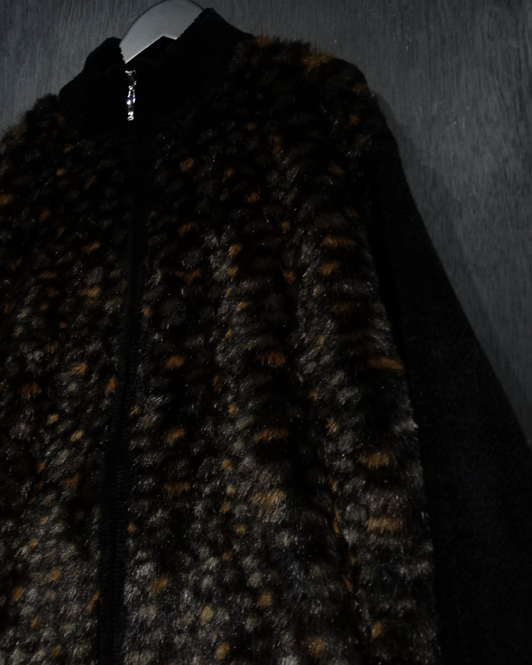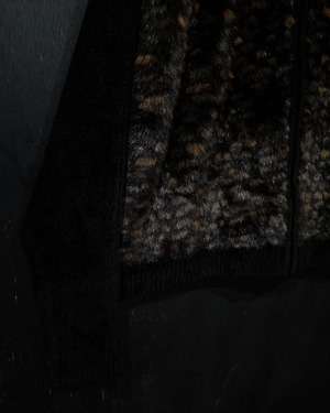 心地良いフェイクファーをベースに各部は伸縮性のあるリブニットを切り替えたコンビネーションジャケット。