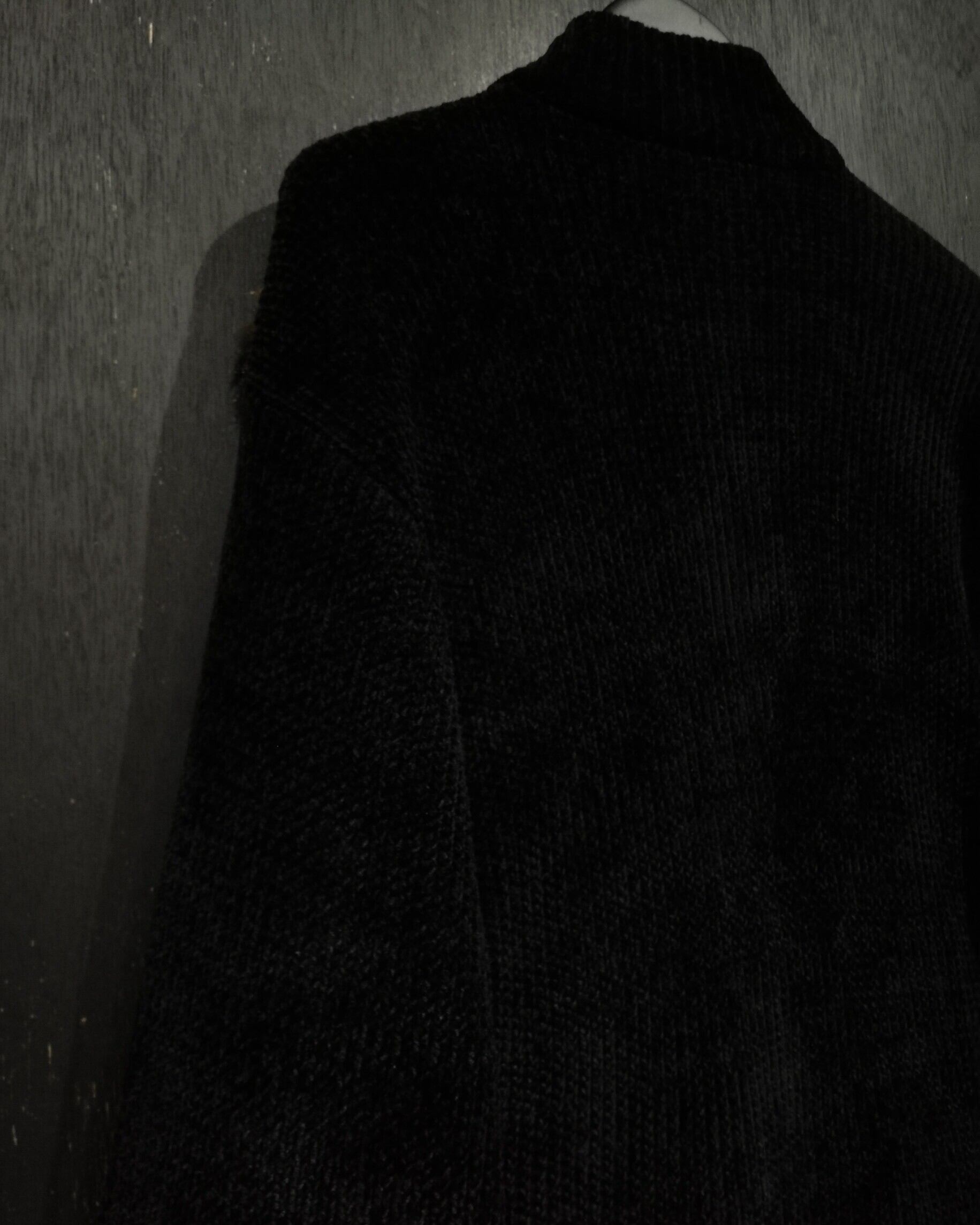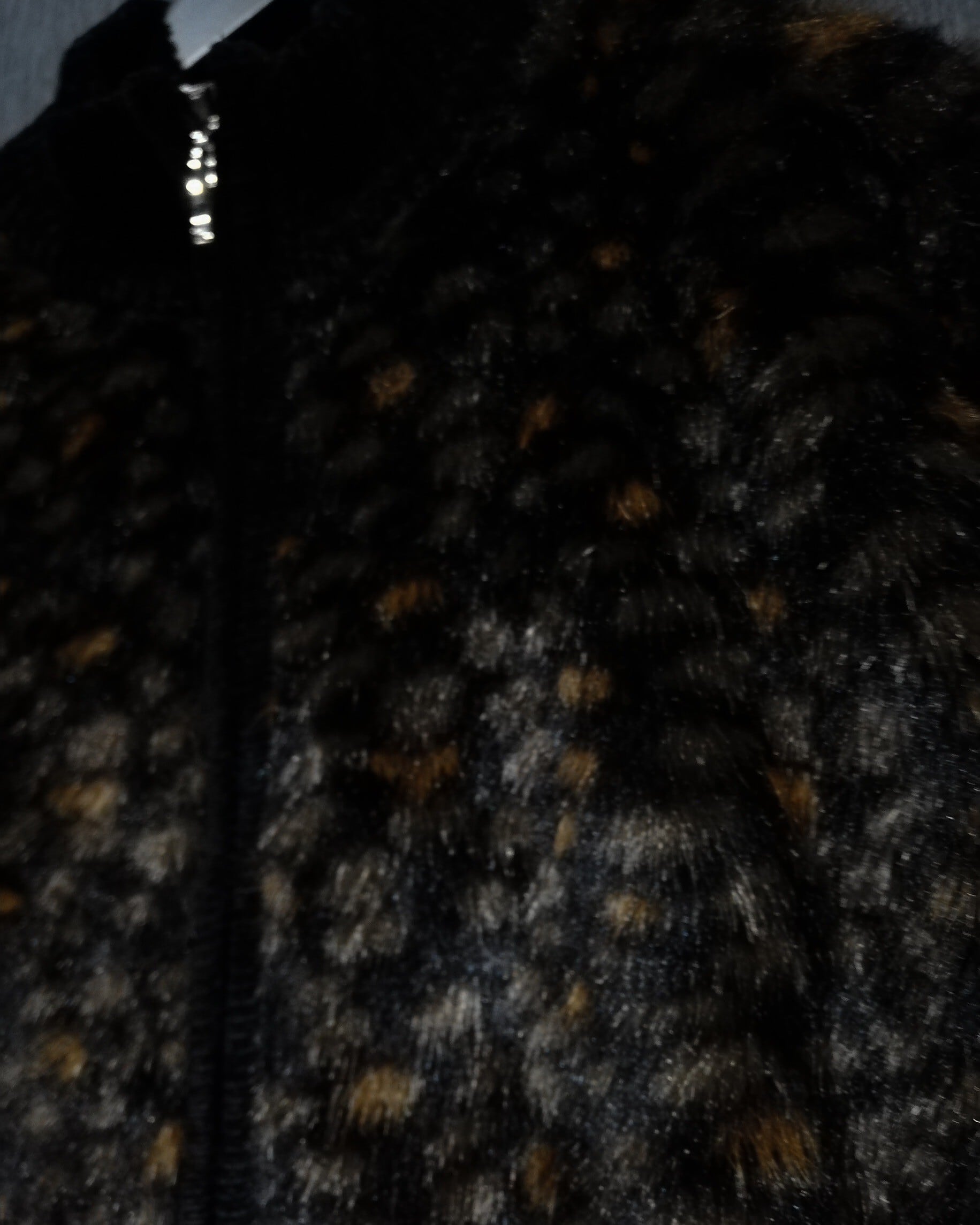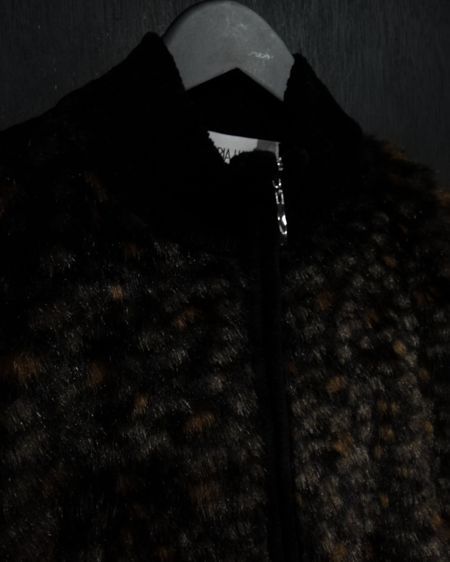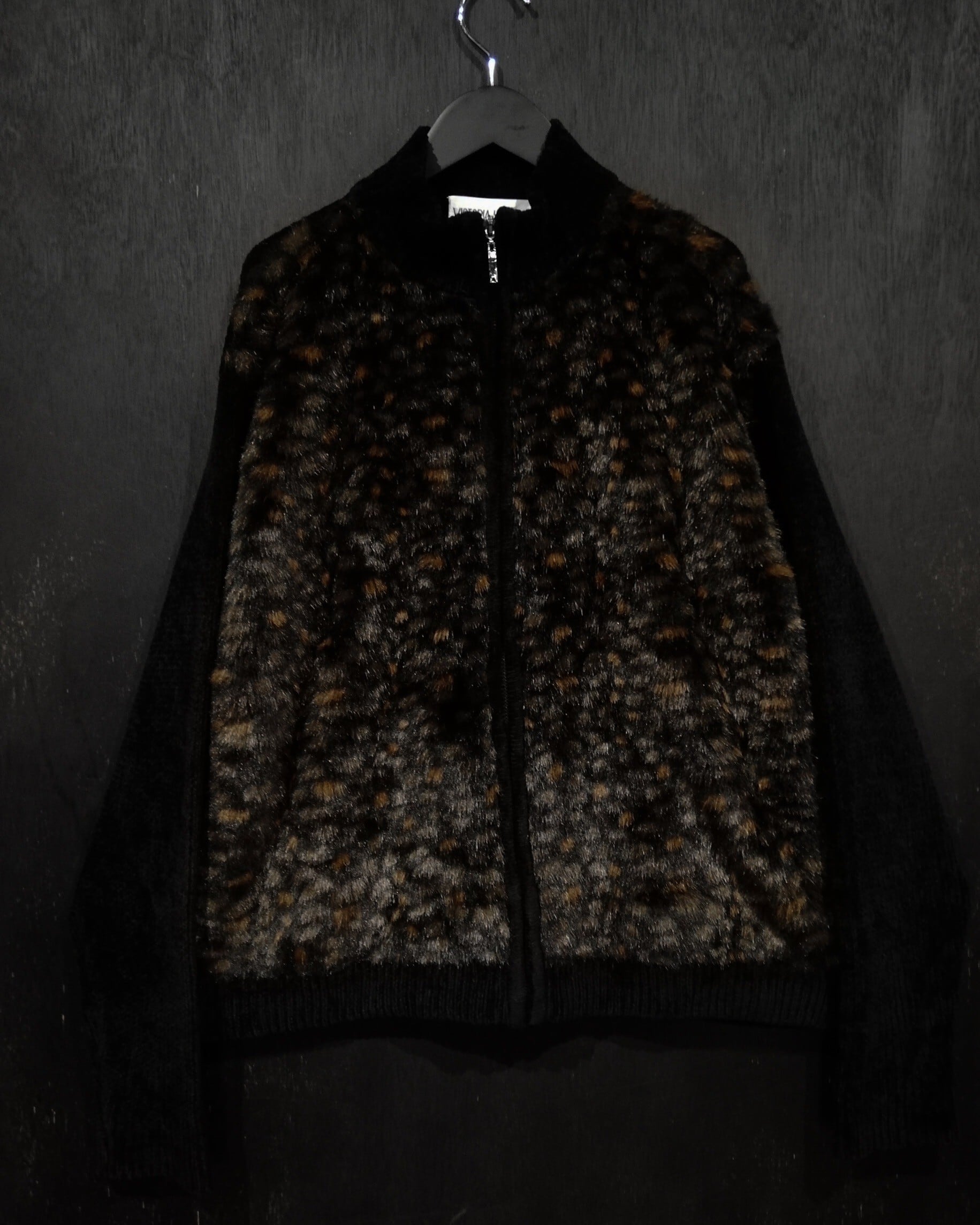 心地良いフェイクファーをベースに各部は伸縮性のあるリブニットを切り替えたコンビネーションジャケット。
