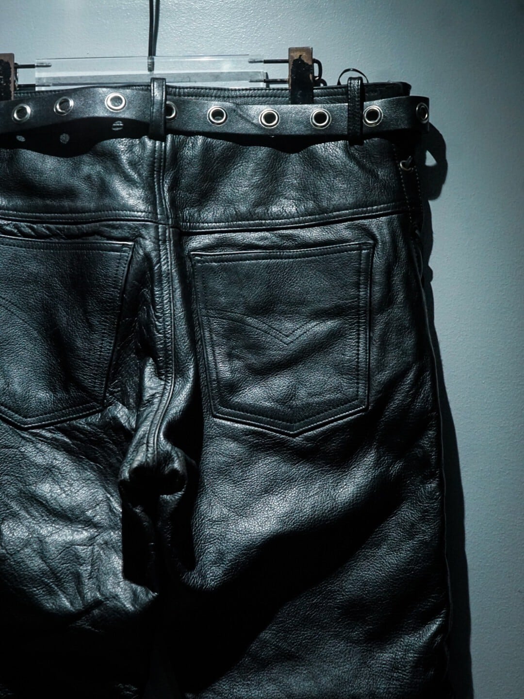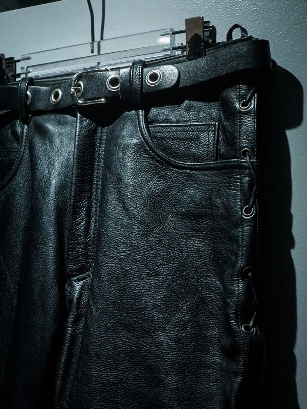 両サイドにはレースアップのデザインを施し、レザーパンツ自体が非常に稀有ですが、状態、デザイン、サイジングを加味すると更に見つけるのが困難なアイテムの一つです。