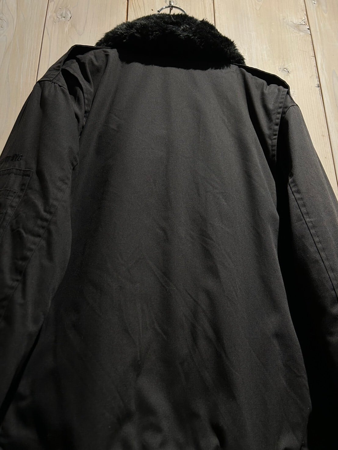 光沢を帯びたブラックのタフなナイロン生地をボディに用いた1着。