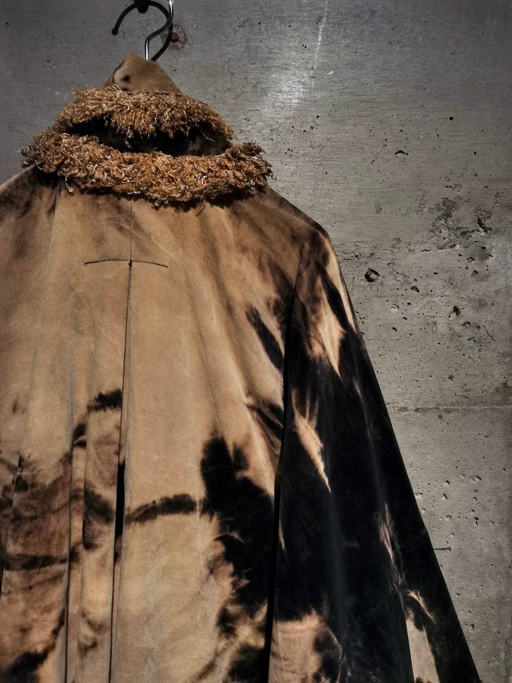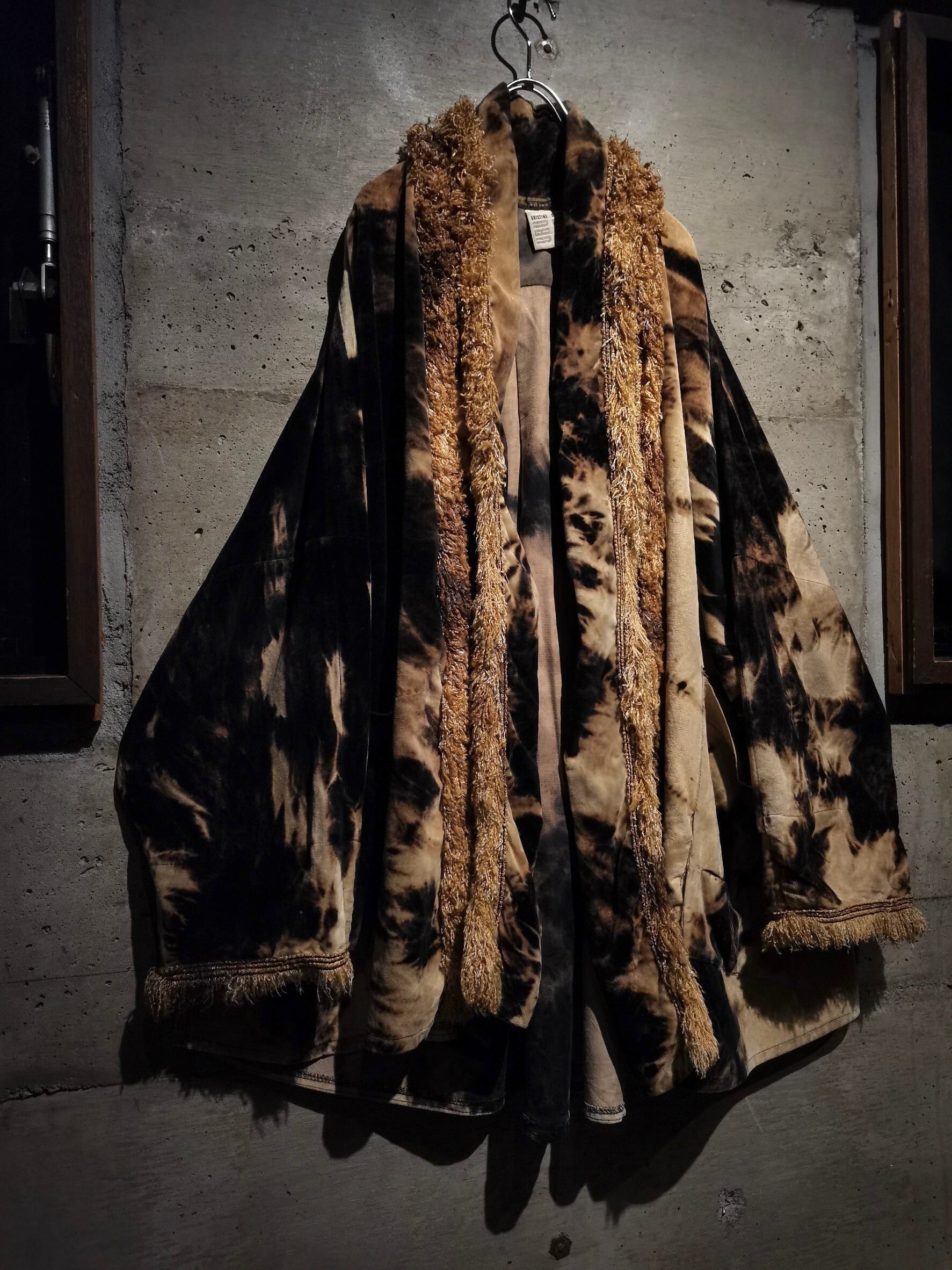 起毛感のあるベルベットを用いたボディに、全体に染めの様なデザインを施した羽織ジャケット。