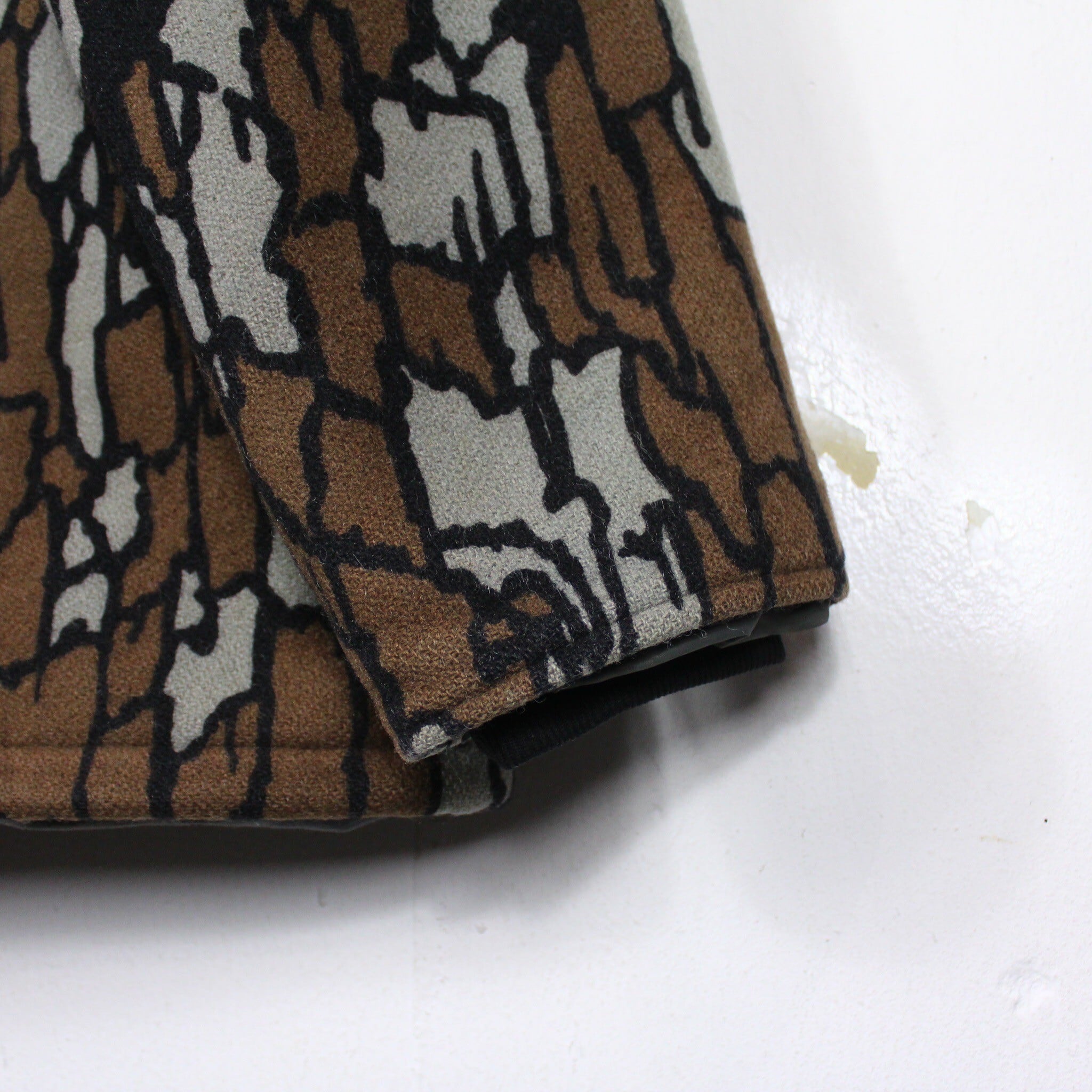 まず目に飛び込んでくるのは、全面に施された迷彩柄。迷彩といえば緑と黒を基調にした柄が定番ですが、こちらは木目のような表情が特徴のトレバークカモで、同じ迷彩でも一風変わった見え感が特徴的。