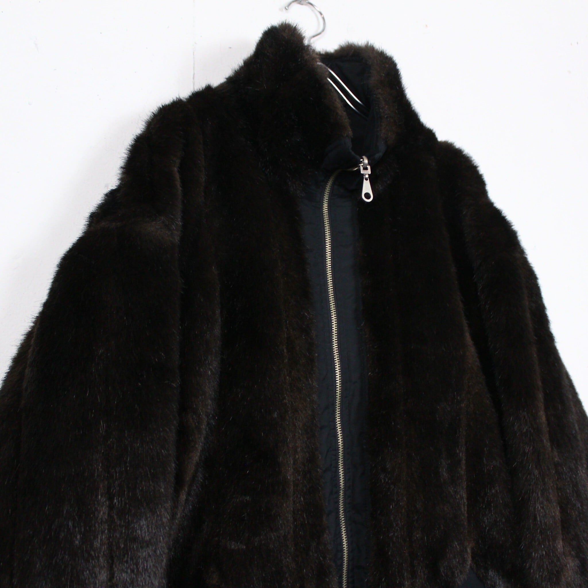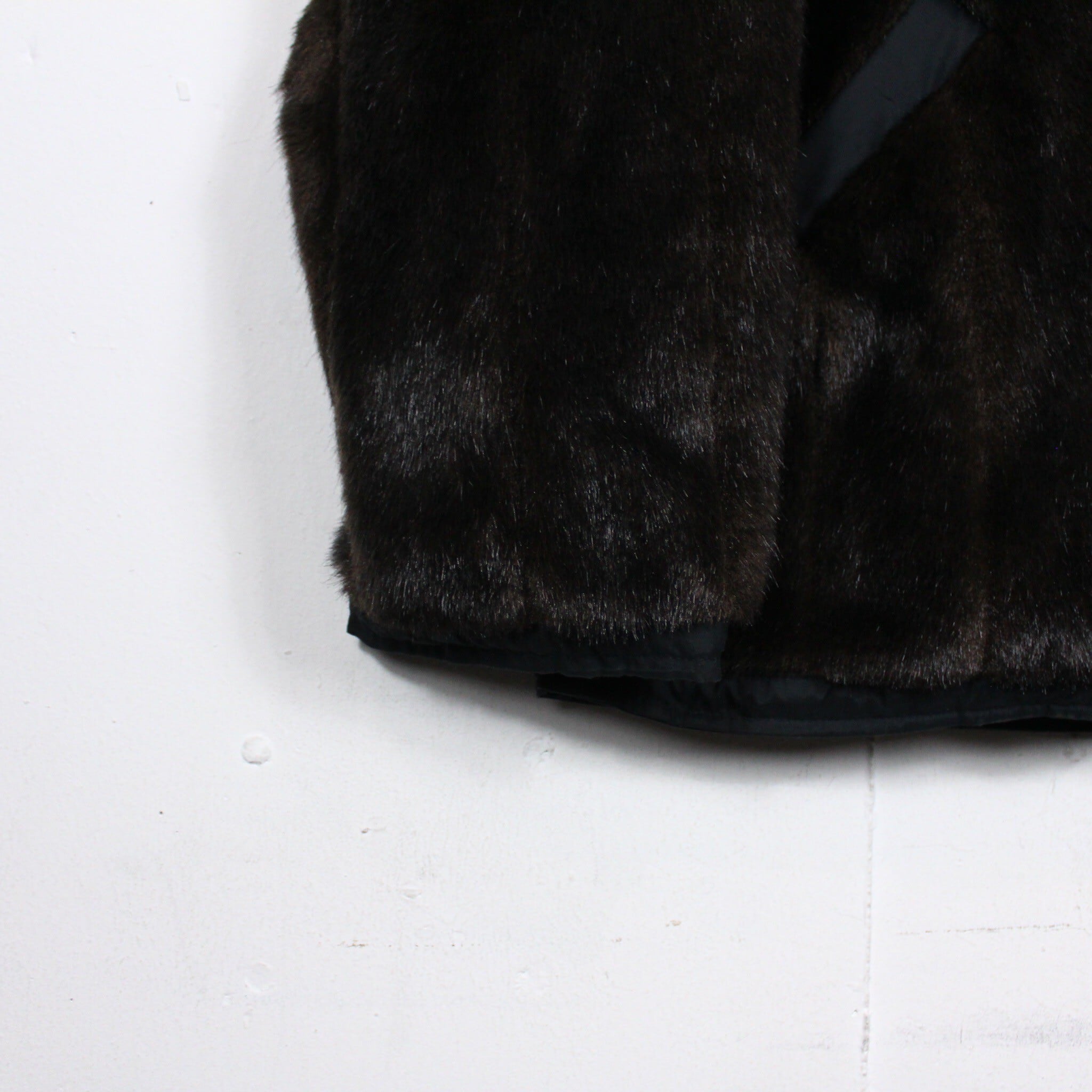 表面は艶やかな毛並みが非常に美しいフェイクファー、ガバッと裏返すと滑らかなブラック無地ボディへと早変わりするリバーシブル仕様のジャケット。
