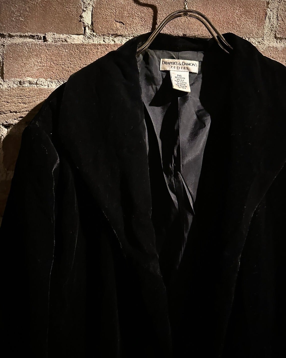 身幅、アームホールが広く採られたゆったりとしたサイズ感で、落ち感のあるシルエットも最高。ベロアが深い陰影を生み、アイテムの雰囲気を底上げしてくれます。
