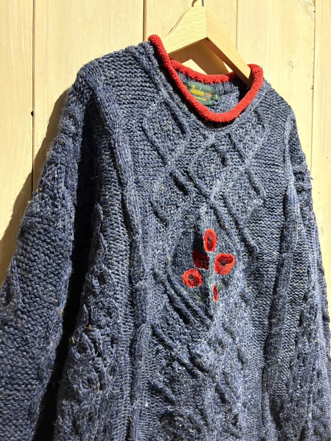 ボディ全体はケーブルニットで仕上げられており、独特の立体感が温かみを演出。花の刺繍を刻んだレトロな雰囲気も堪りません、、、