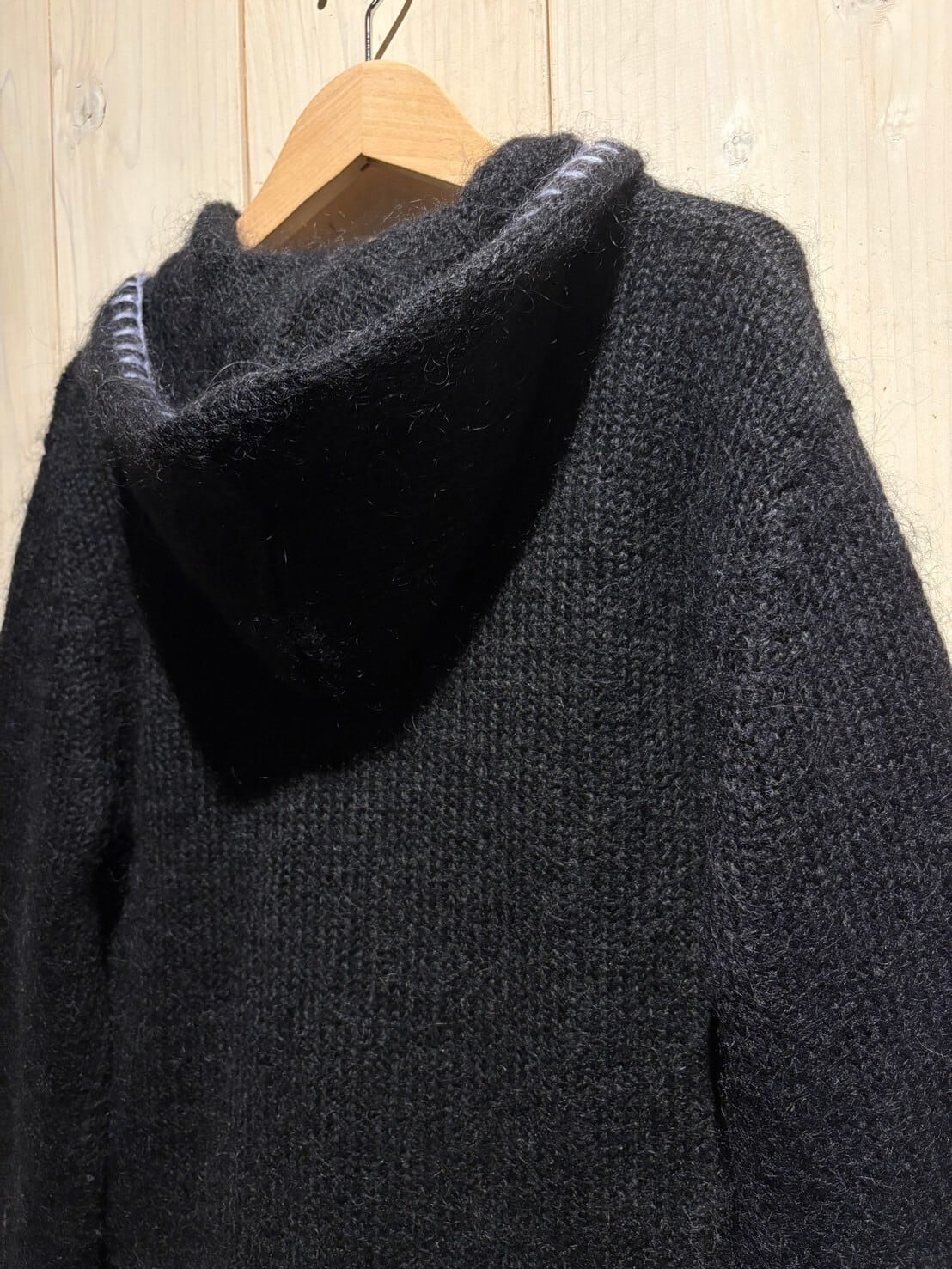 ダメージや縮み、毛が抜けきってしまっている個体が多いモヘアアイテムですが、こちらの1着は稀少なゆとりを持たせたサイズに穴や縮みも無し、毛足もしっかりと残る、3拍子揃った超グッドコンディション。かつジップアップニットフーディとなると、古着では中々お目にかかれません。