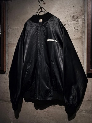 光沢を帯びたブラックのナイロンボディに、"METALLICA"を代表するアルバム"Ride the Lightning"のプリントを載せブルゾンジャケット。