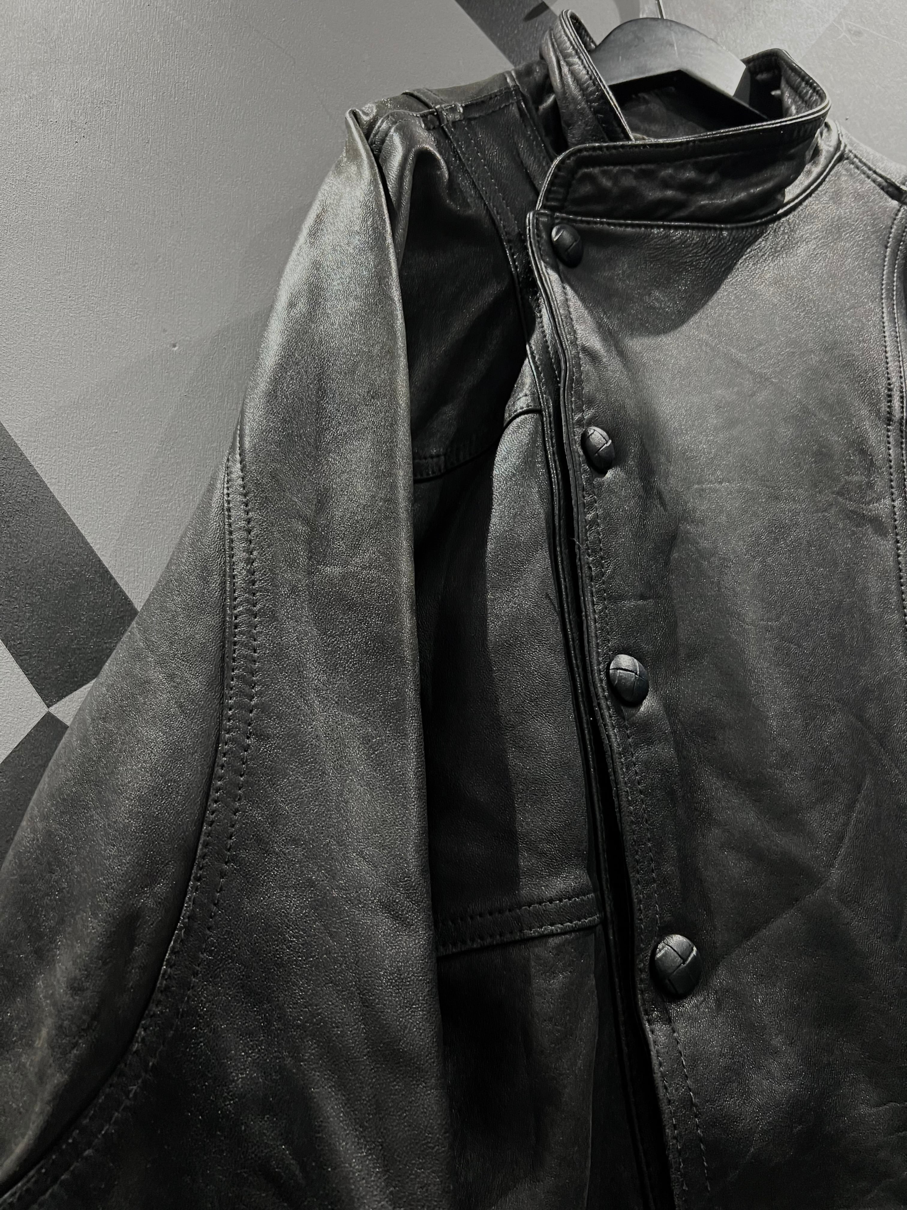 上質なレザー使いによる高級感漂う表情に、モードな雰囲気漂うデザインを落とし込んだ、当店らしいスペシャルなレザージャケットとなっております。