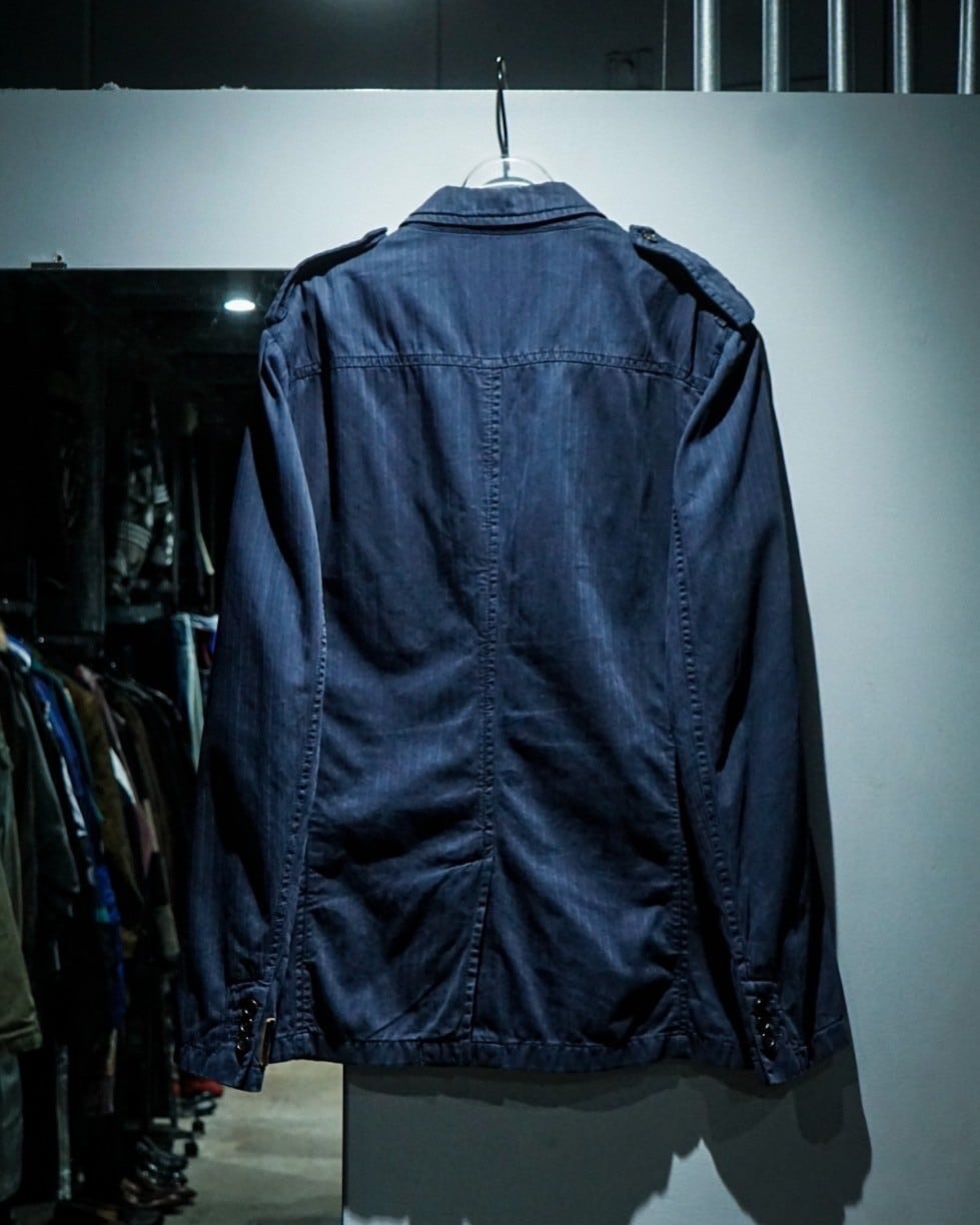 タフかつコシのあるヘリンボーン織を用いて仕上げられたテーラードジャケットの逸品。
