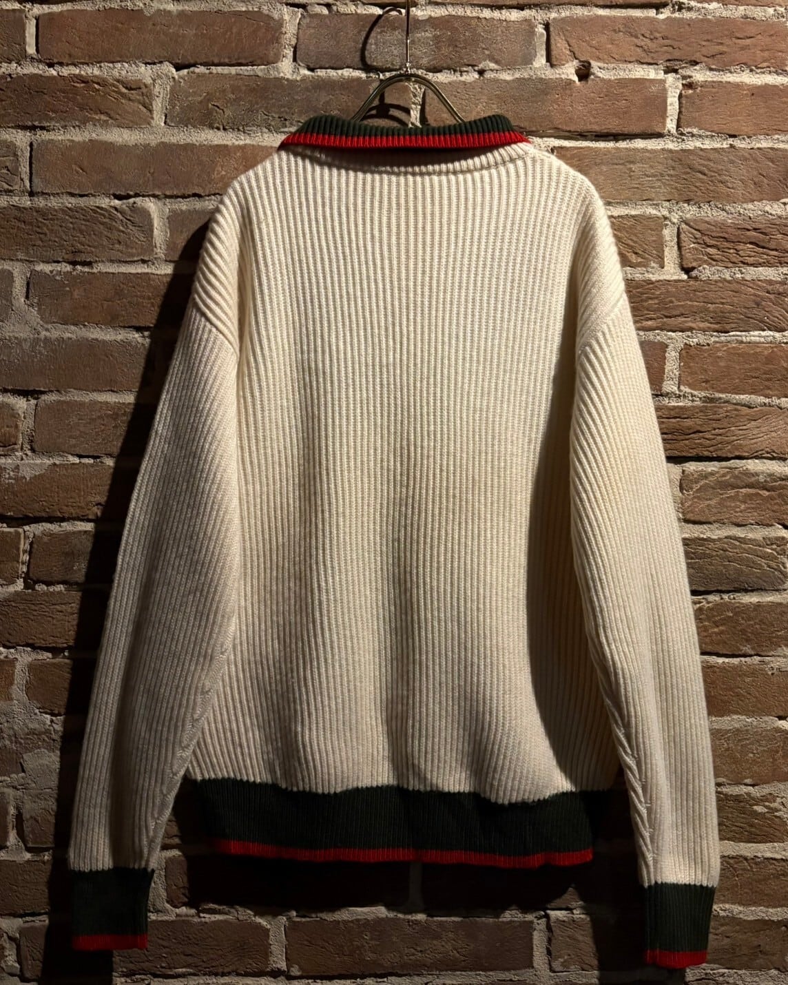 ホワイト×グリーン×赤の配色バランス、左胸ポケットのロゴワッペンなどシンプルながらもラグジュアルな表情が堪りません、、、
