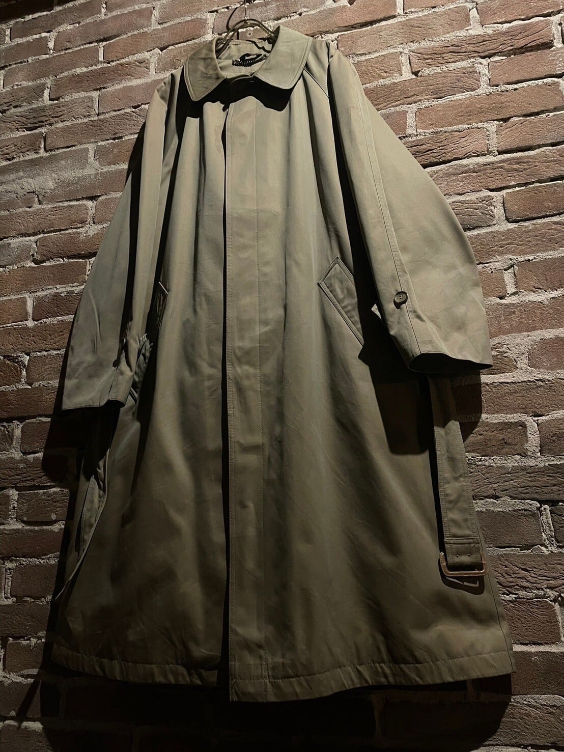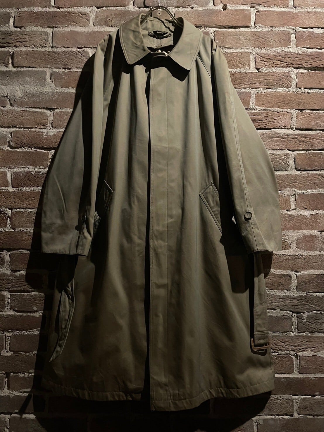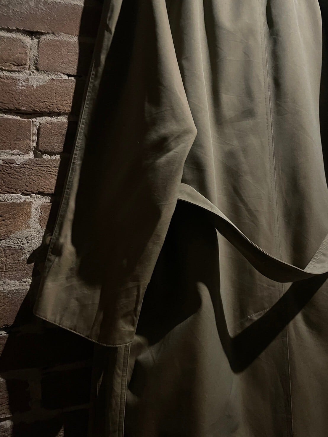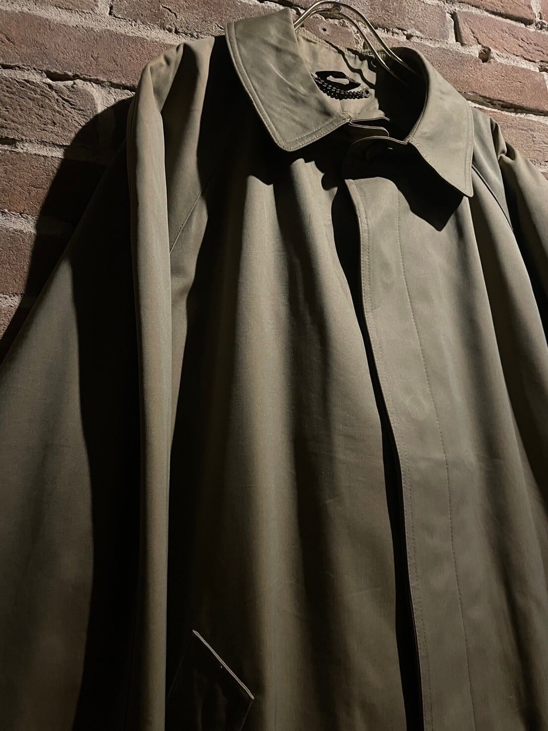 ベージュからグリーンへと角度によって見え方の変わる、美しい"玉虫"カラーで仕上げた80'sヴィンテージのステンカラーコート。