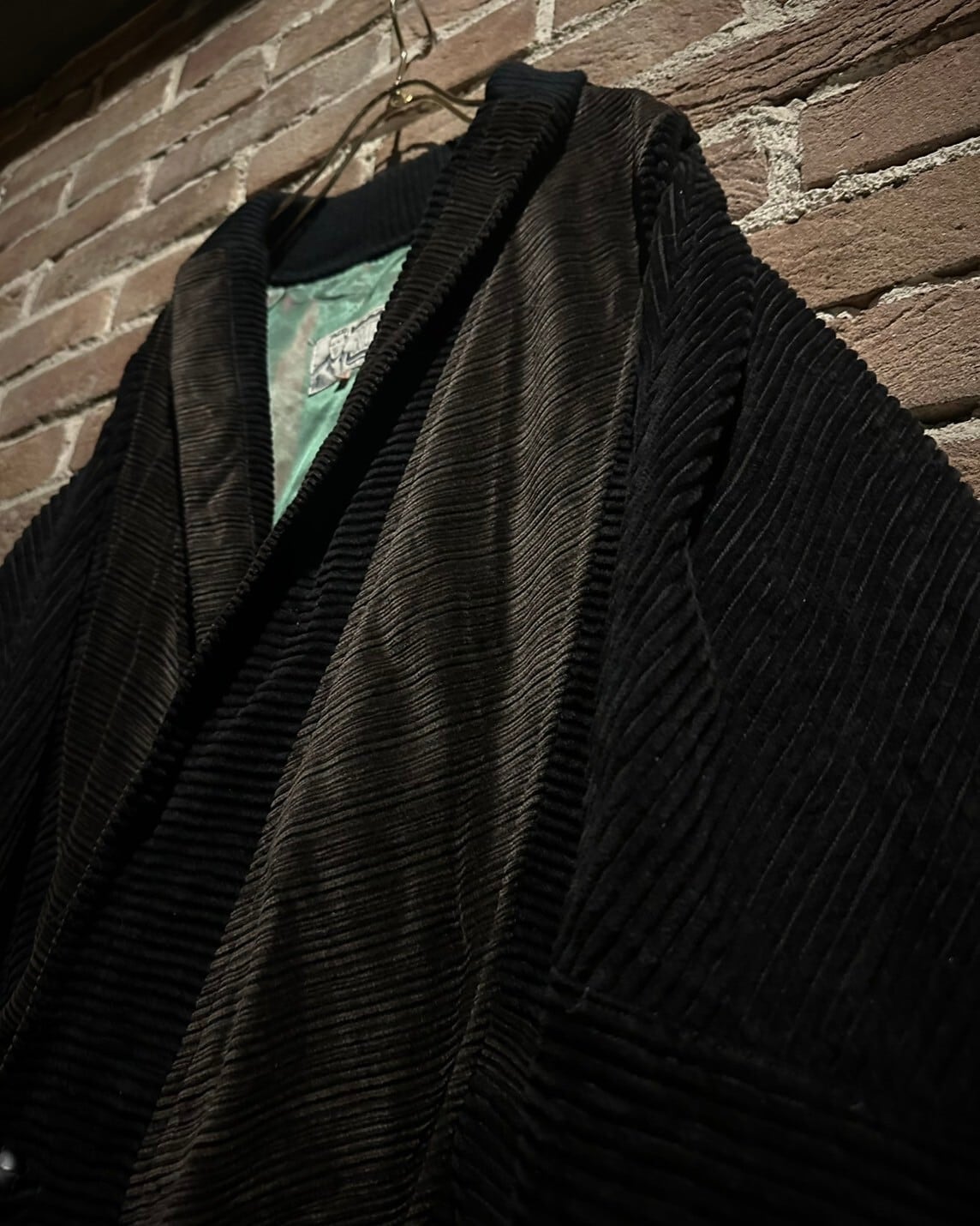 太畝のコーデュロイを用いて、ダブルブレストのジャケットに仕上げた逸品。