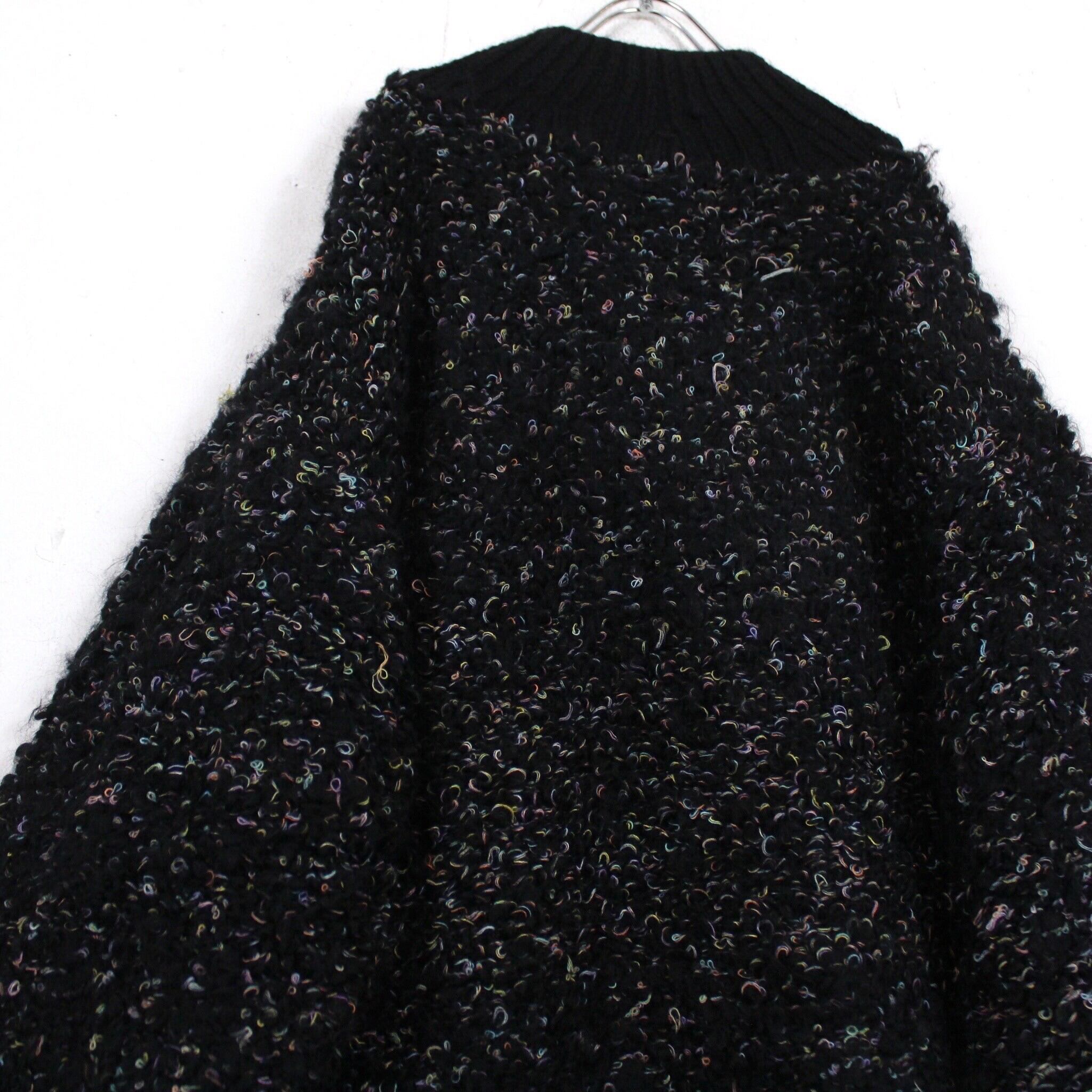 フワッと柔らかなブラックのボディをベースに、ネップ調にカラフルなネップを織り込んだニット。