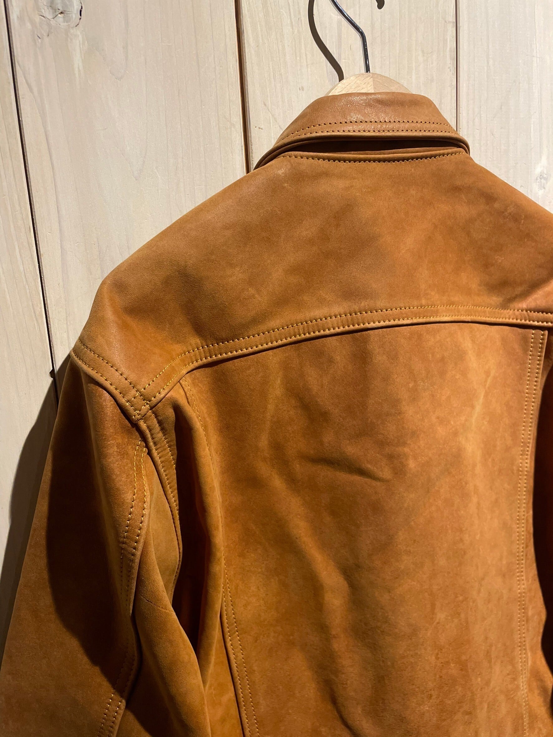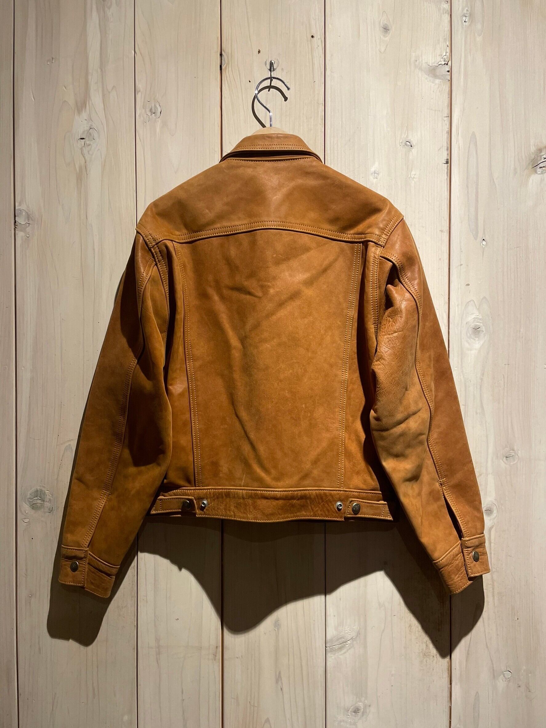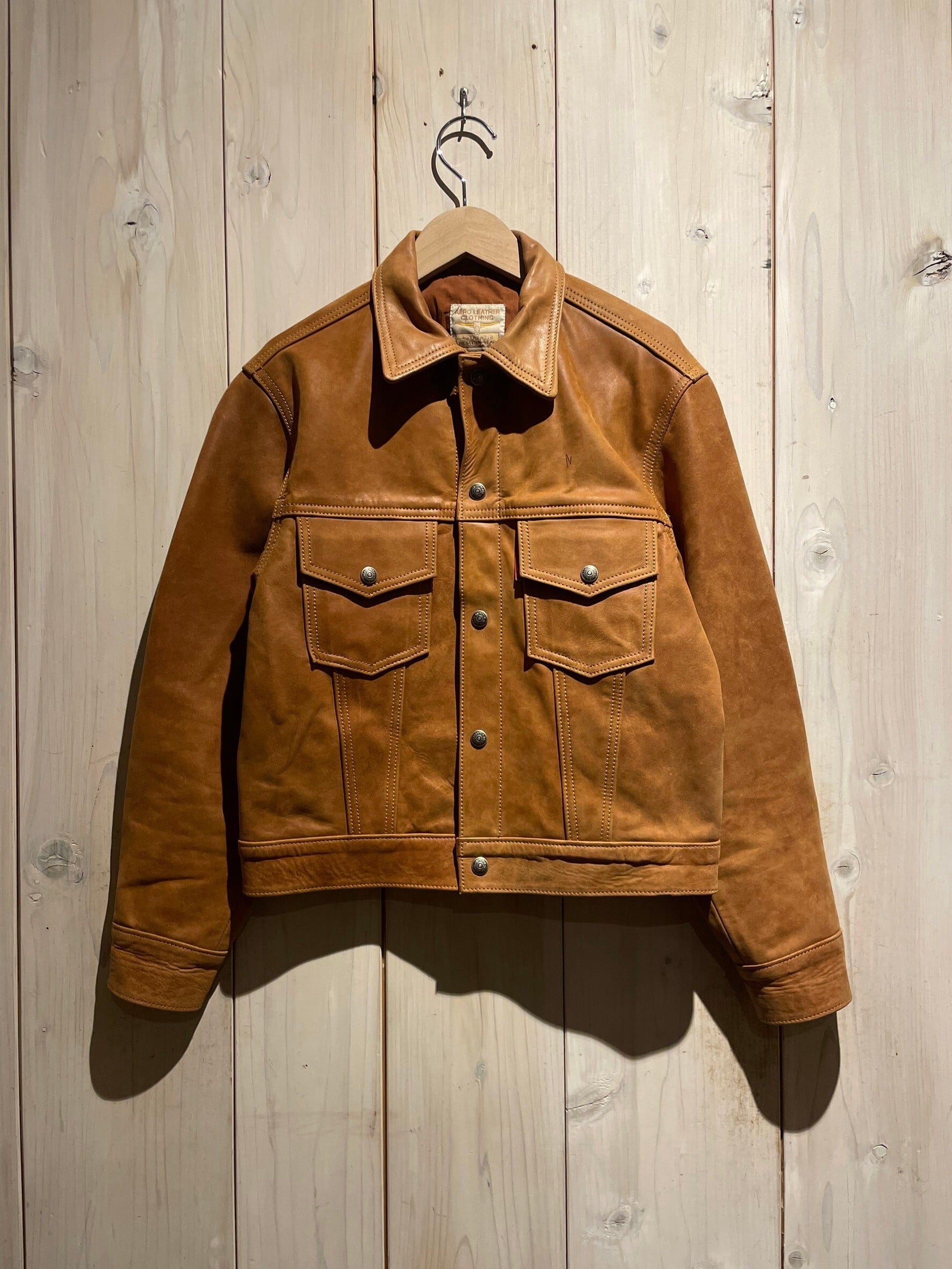 しっとり感、ハリのある上質なブラウンレザーを用いて、デニムジャケットでも用いられるトラッカー型へと落とし込まれた稀有な逸品。