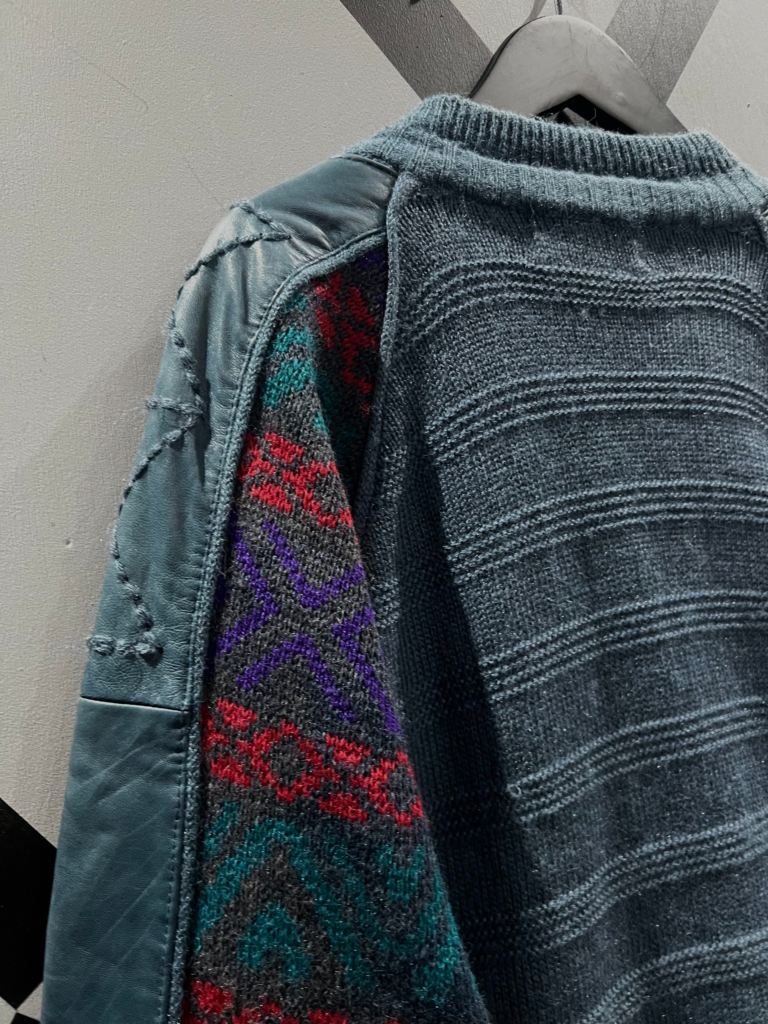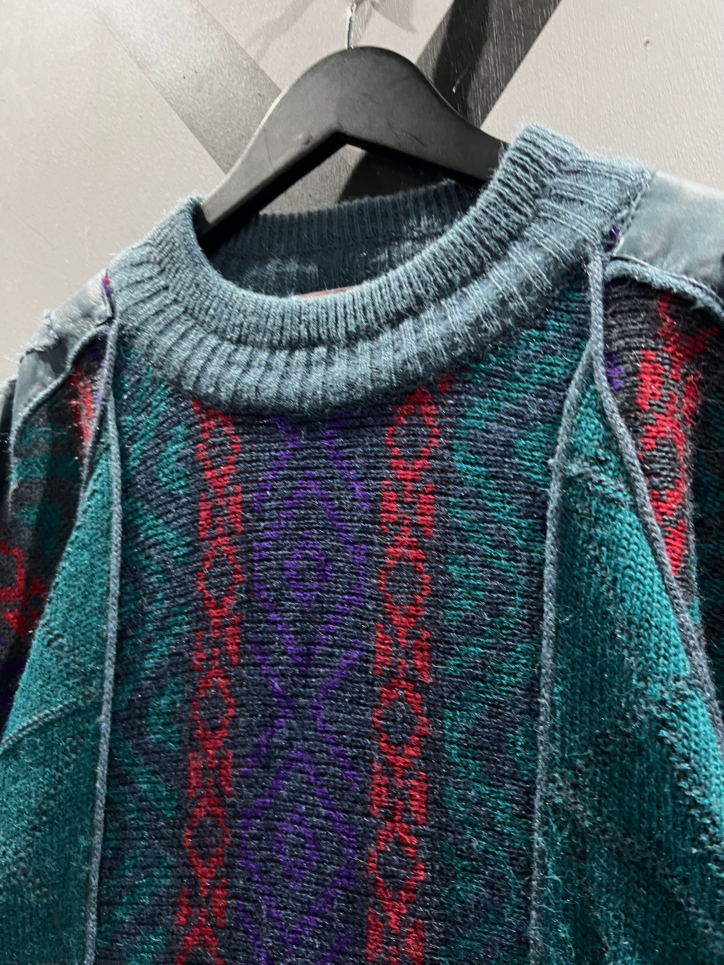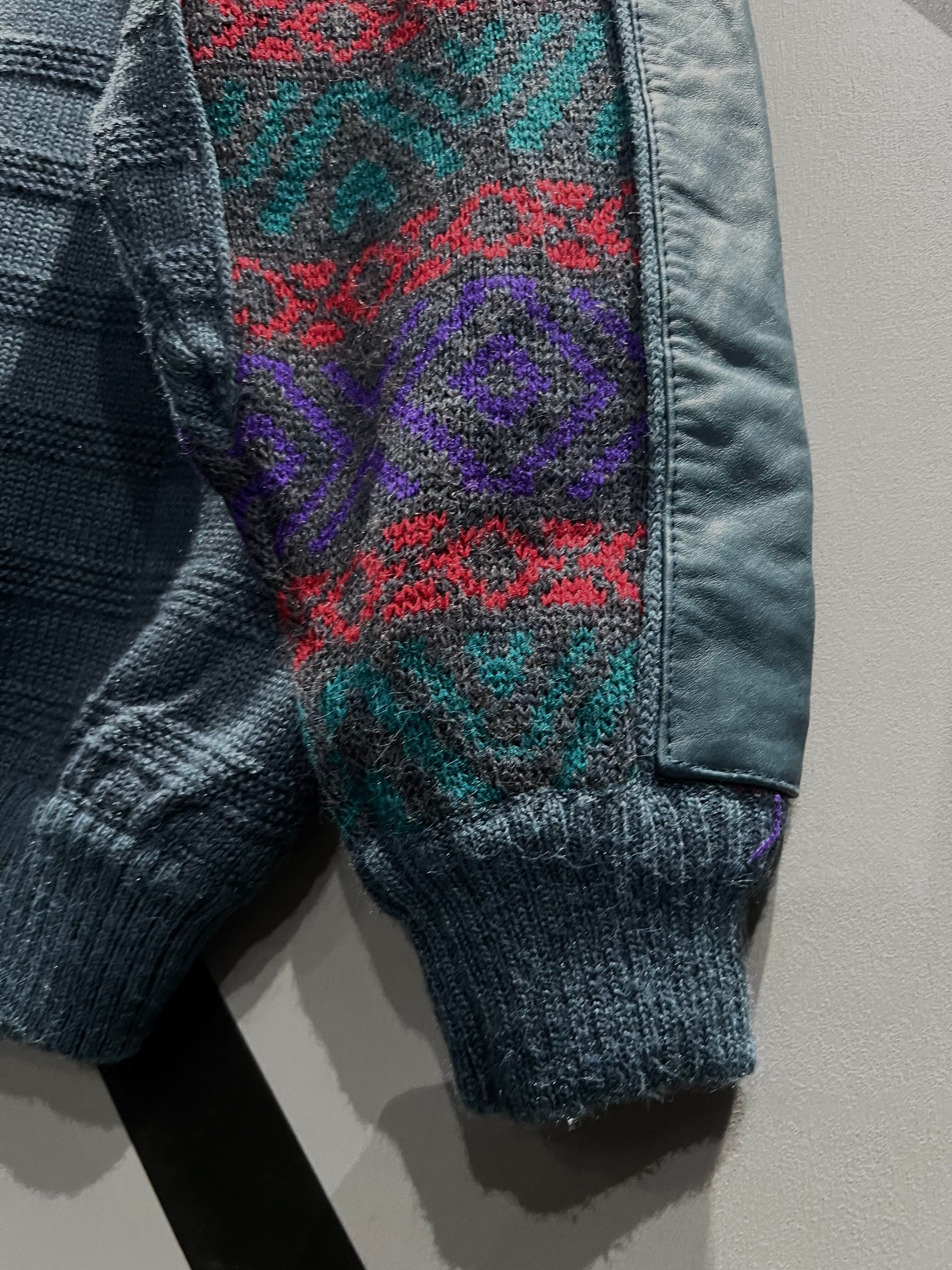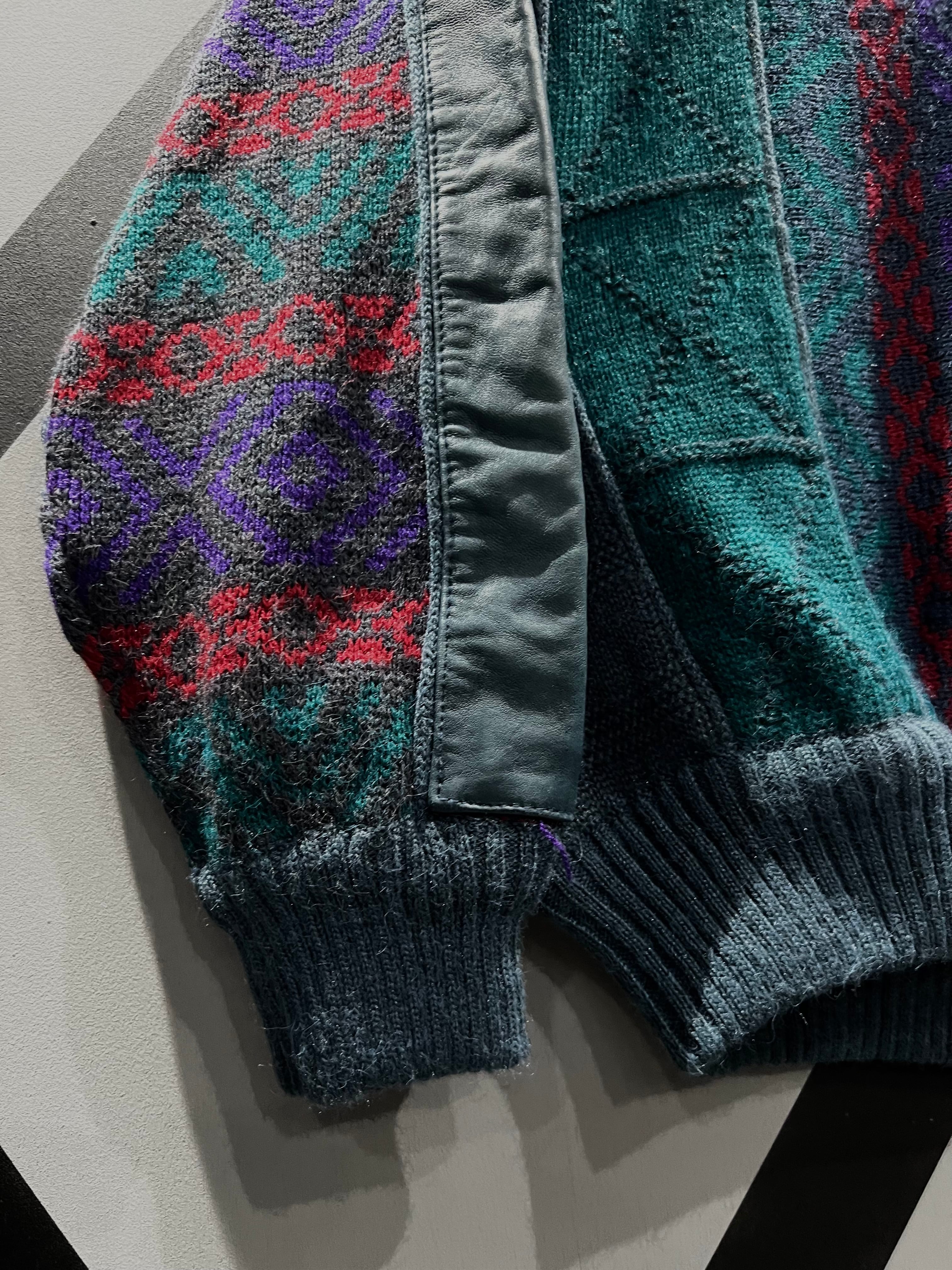 グリーンのボディをベースに、赤、紫で幾何学柄調柄模様を載せ、アームにサイドにスムースレザーを切り替えた稀有な1着。