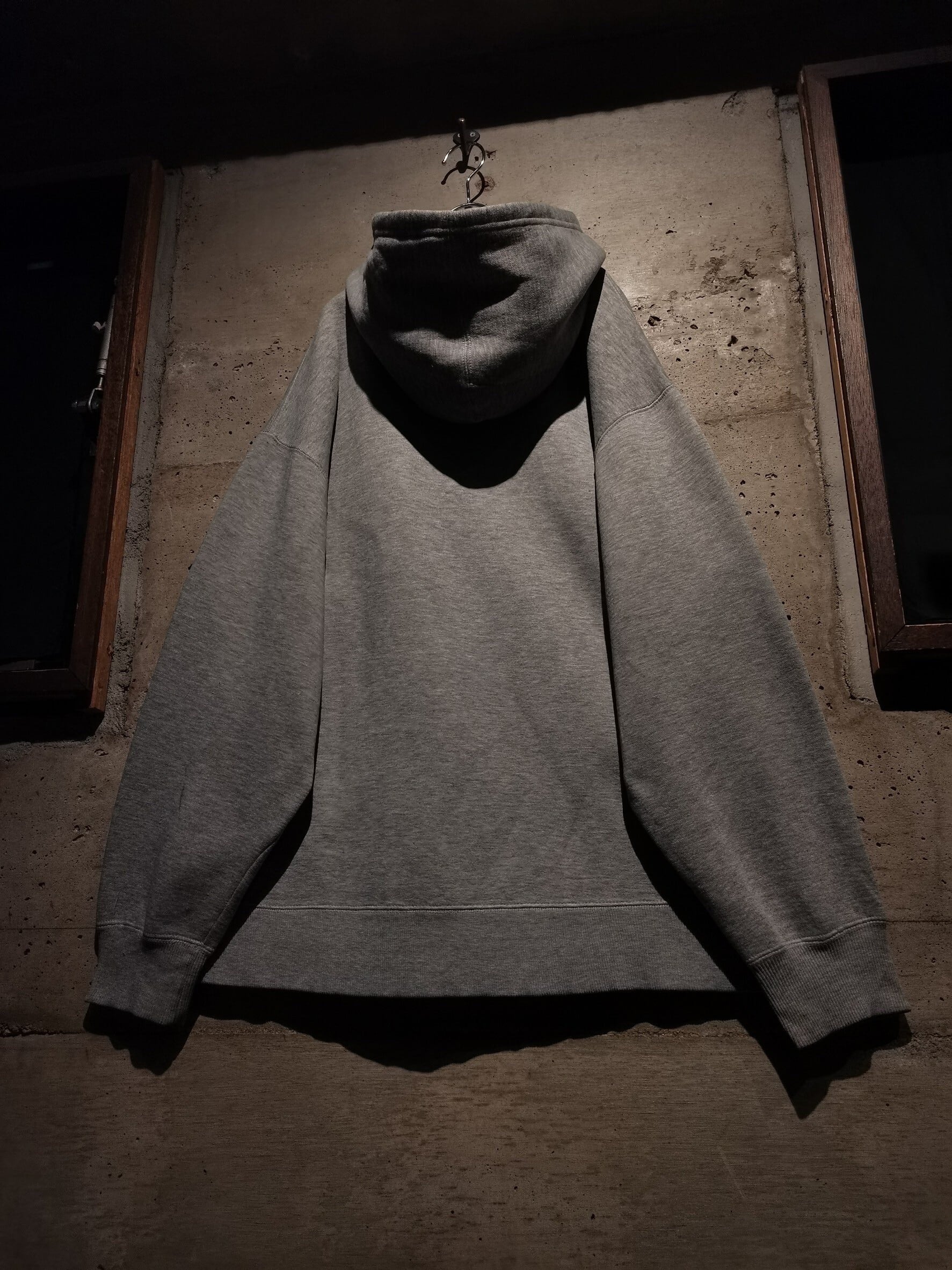 こちらの1着はグレーのボディに、ブランドネームをパッチで載せたフーディ。パッチの立体感がこのアイテムの存在感をより一層引き立てます。