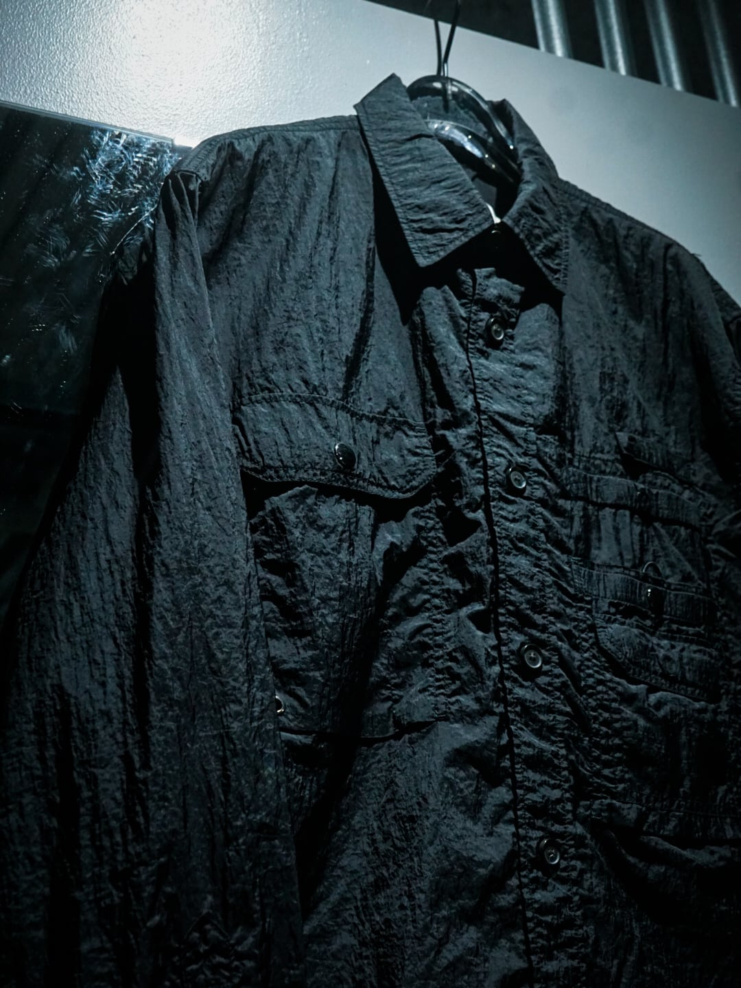 ナイロン特有のソリッドな光沢がテクニカルな雰囲気を漂わせ、シャツながらこの1着に様々な要素がMixされた仕上がりに。当店らしい逸品かと。