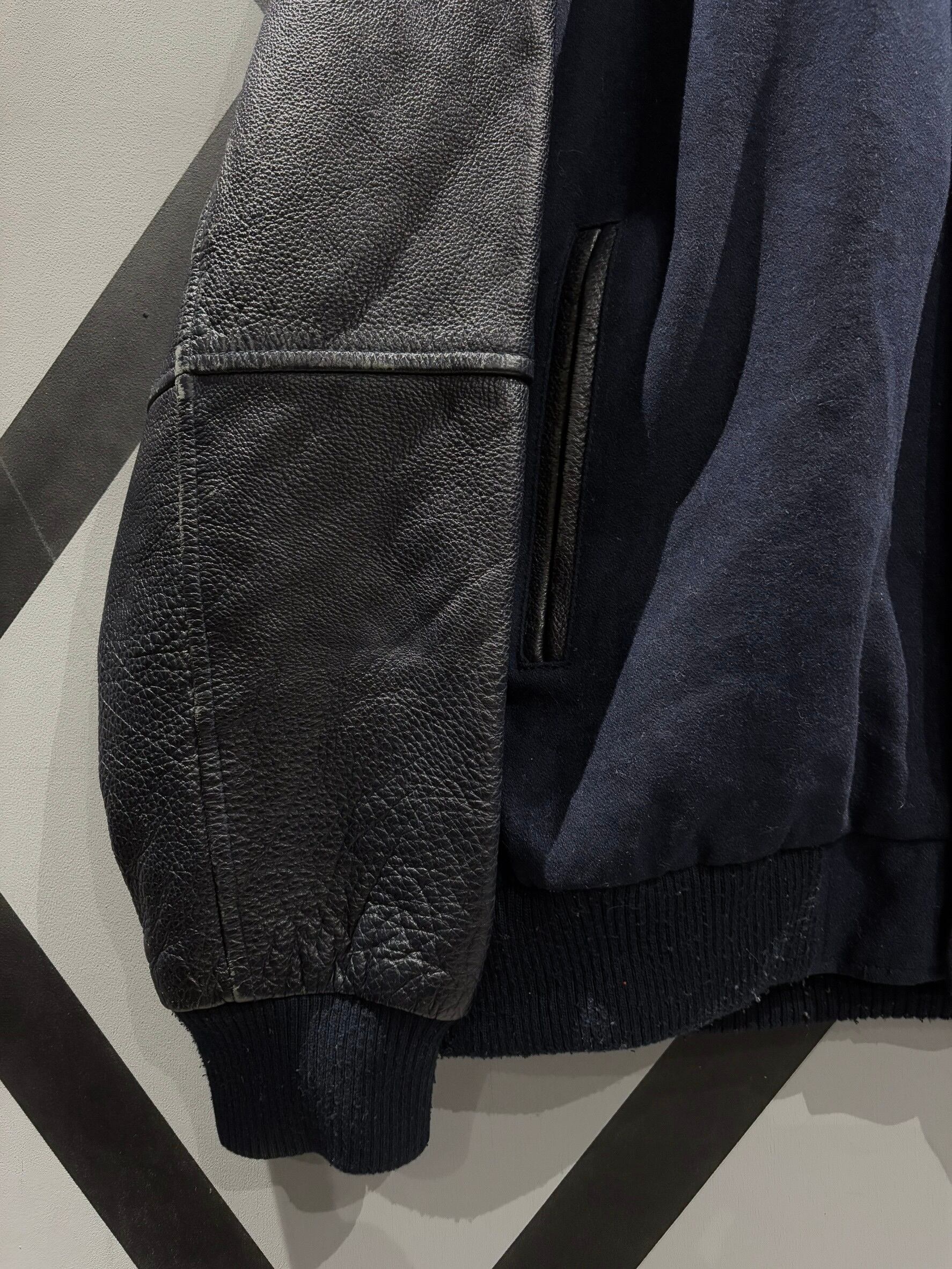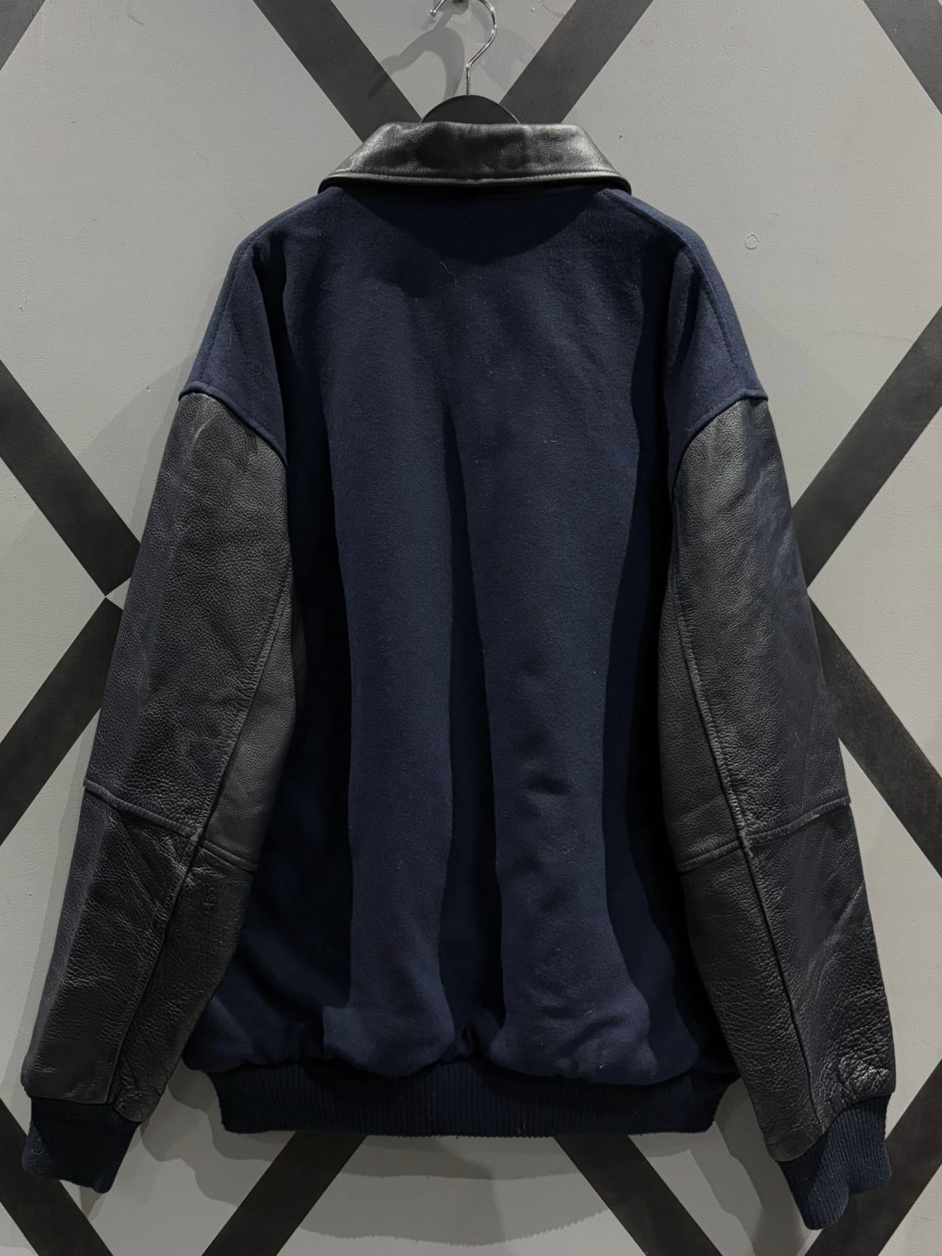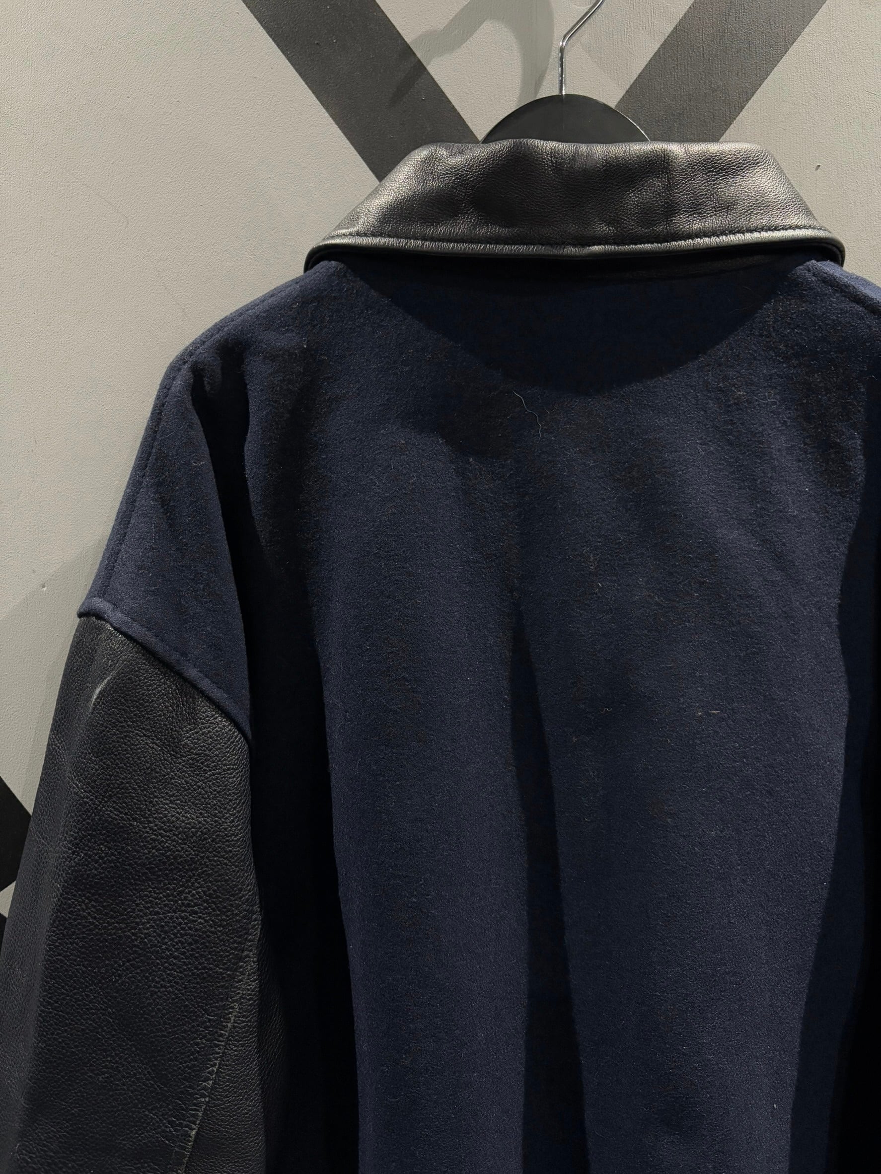 上質なウールをボディに、襟、アームにはレザーを切り替え、左胸にはチームのロゴを載せたスタジャン。