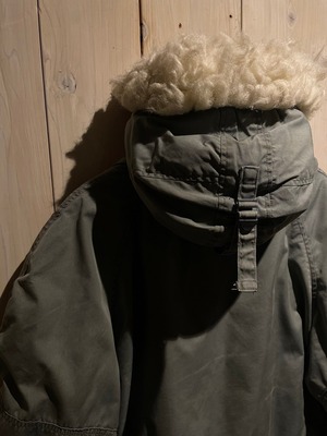 素材にはタフなナイロン×コットンのツイル素材を採用。中綿入りの仕様で表面の素材と合わさって防風、防寒、保温性にも優れた仕上がりに。それに加えて裏ボア仕様に加えてファーが施されたフード、内側ジップにボタンでも前を留める二重構造の前立て、ハンドウォーマーポケット等極寒の地でも耐え得るためのディテールが随所に施されています。