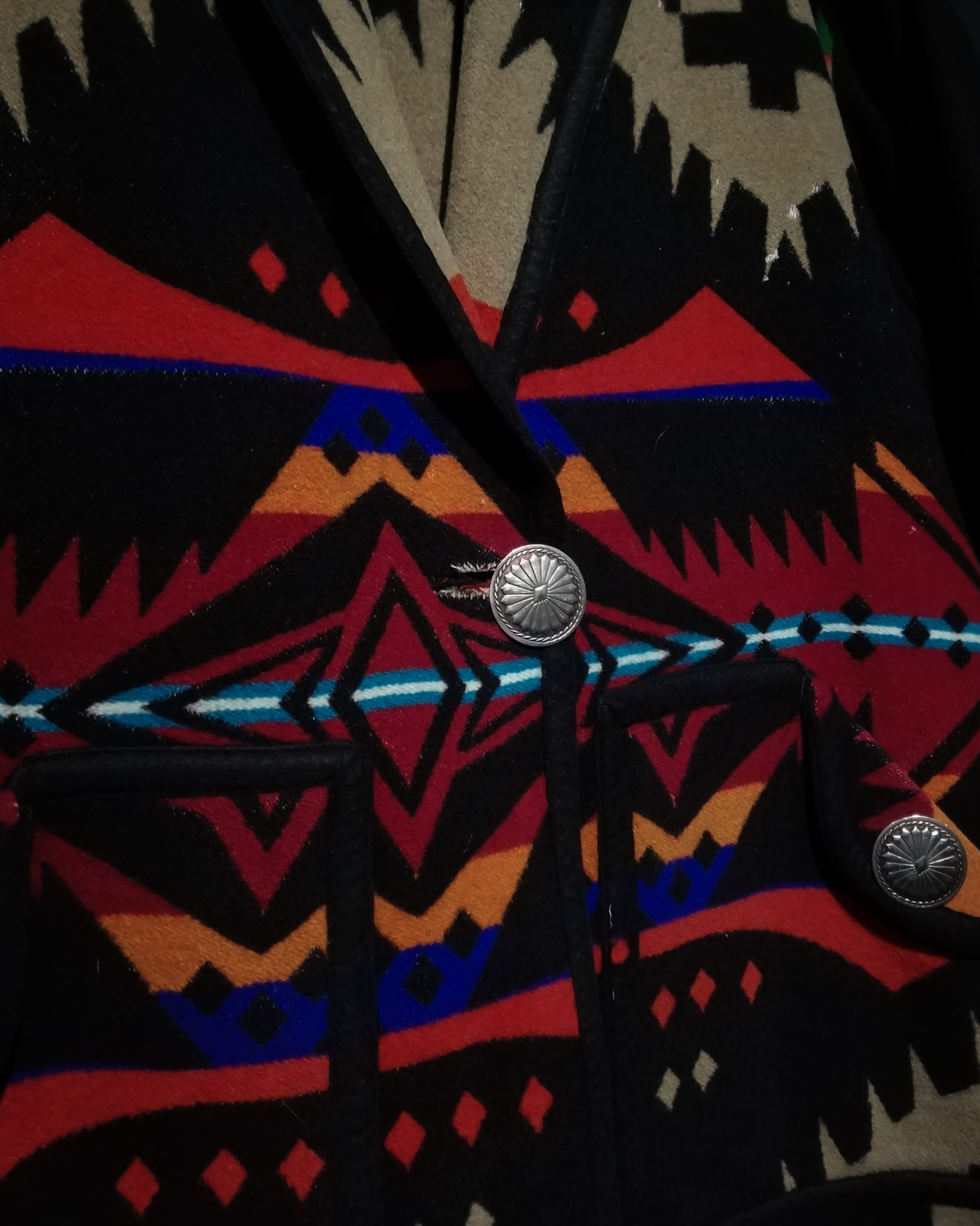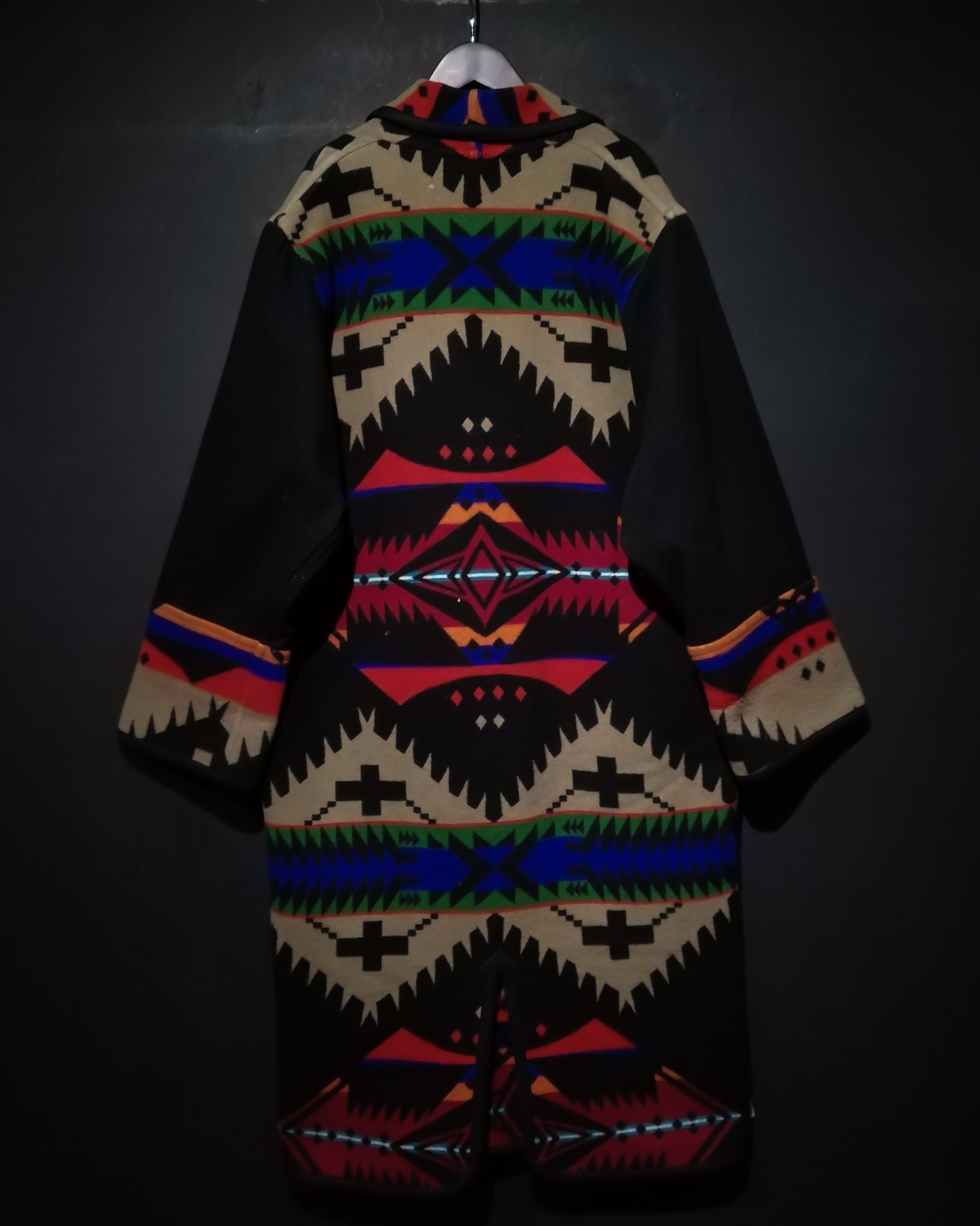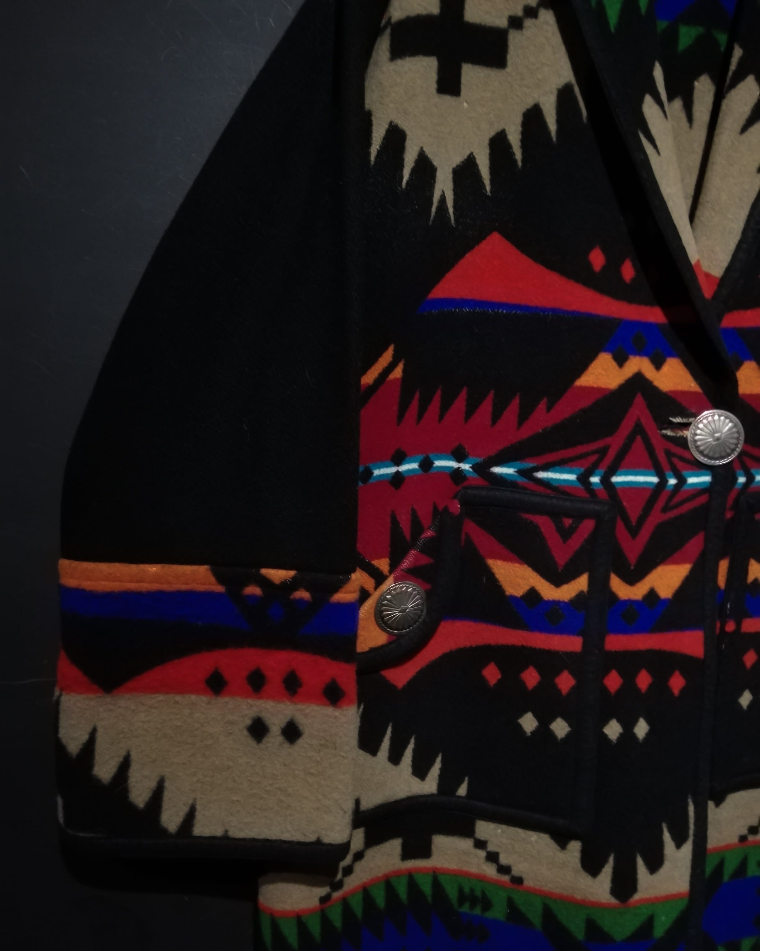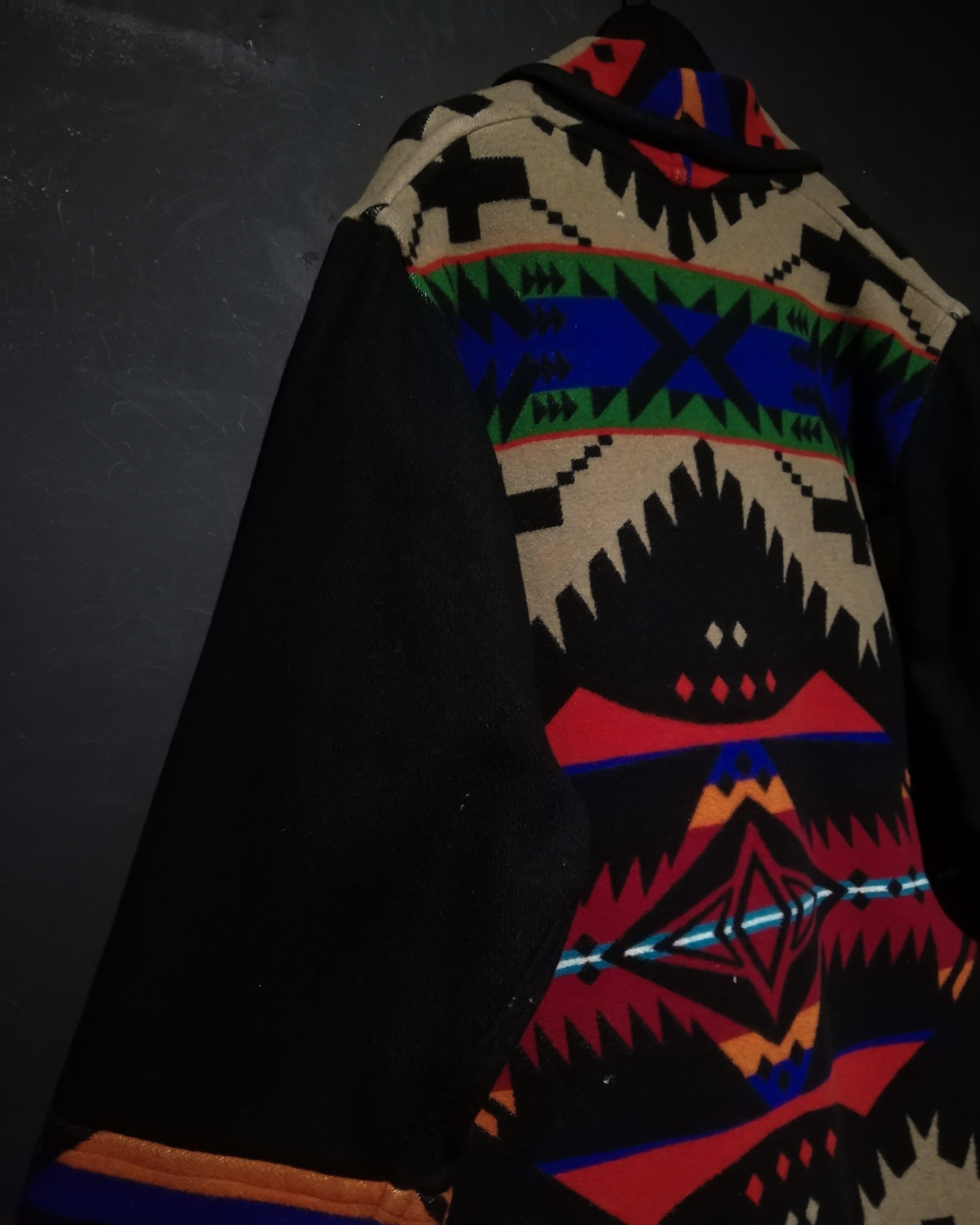 冷え込みが激しくなる今時期、実店舗でもお探しの方が非常に多いコートアイテム。本日ご紹介致しますのは、柄にコンチョボタンの装飾などネイティブアメリカというカルチャーを含め、当店らしいデザインに装飾、唯一無二なオーラをムンムンに放つリバーシブルの逸品。