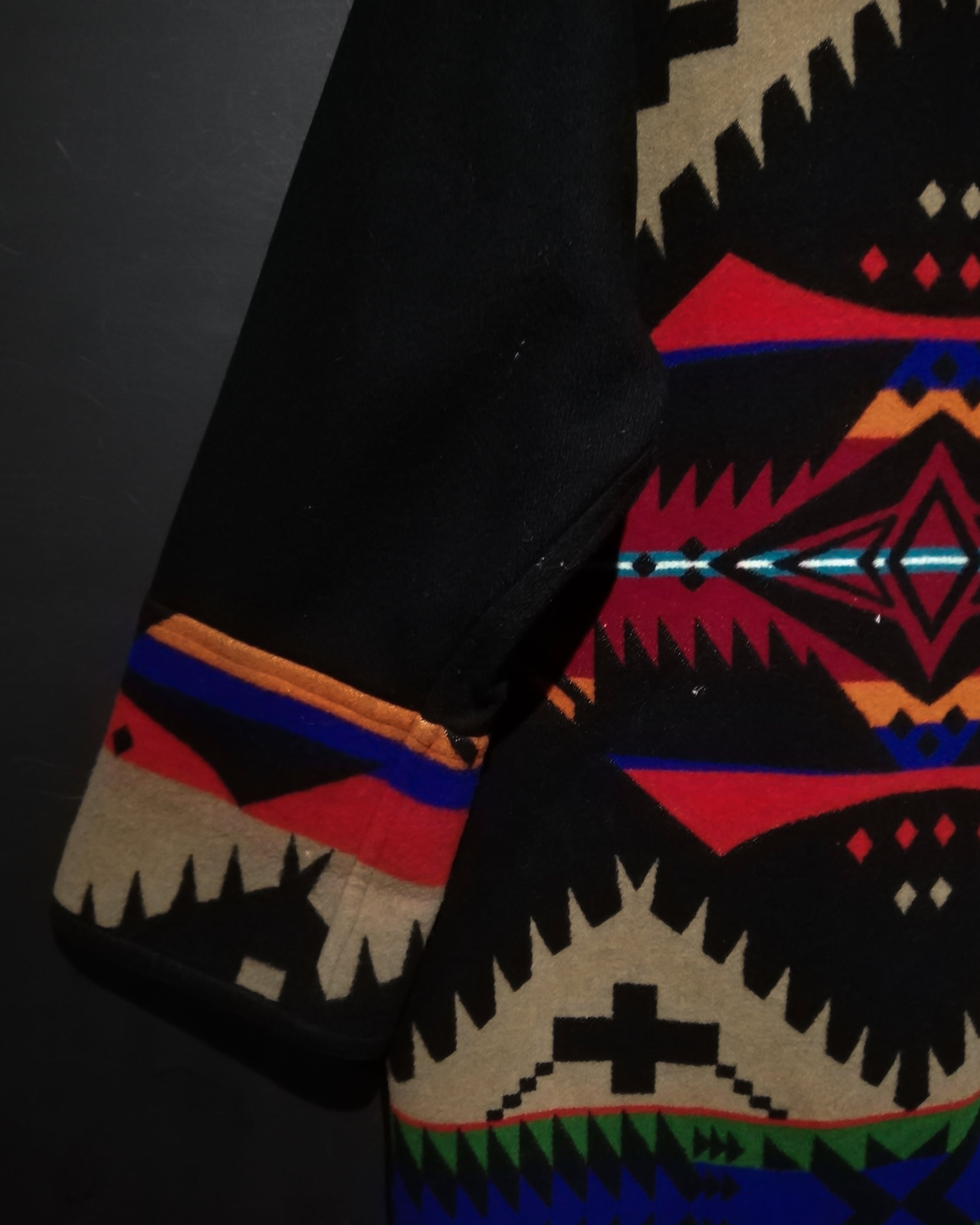 ペンドルトンを筆頭に現代ファッションカルチャーに置いて切っても切れない縁を持つ”ネイティブ柄”その起源は深く解説すると長〜〜くなるので少し割愛しますが、幾何学模様をモチーフにそれを細かく繋げたデザイニング。そのパターンをラインとして落とし込み。