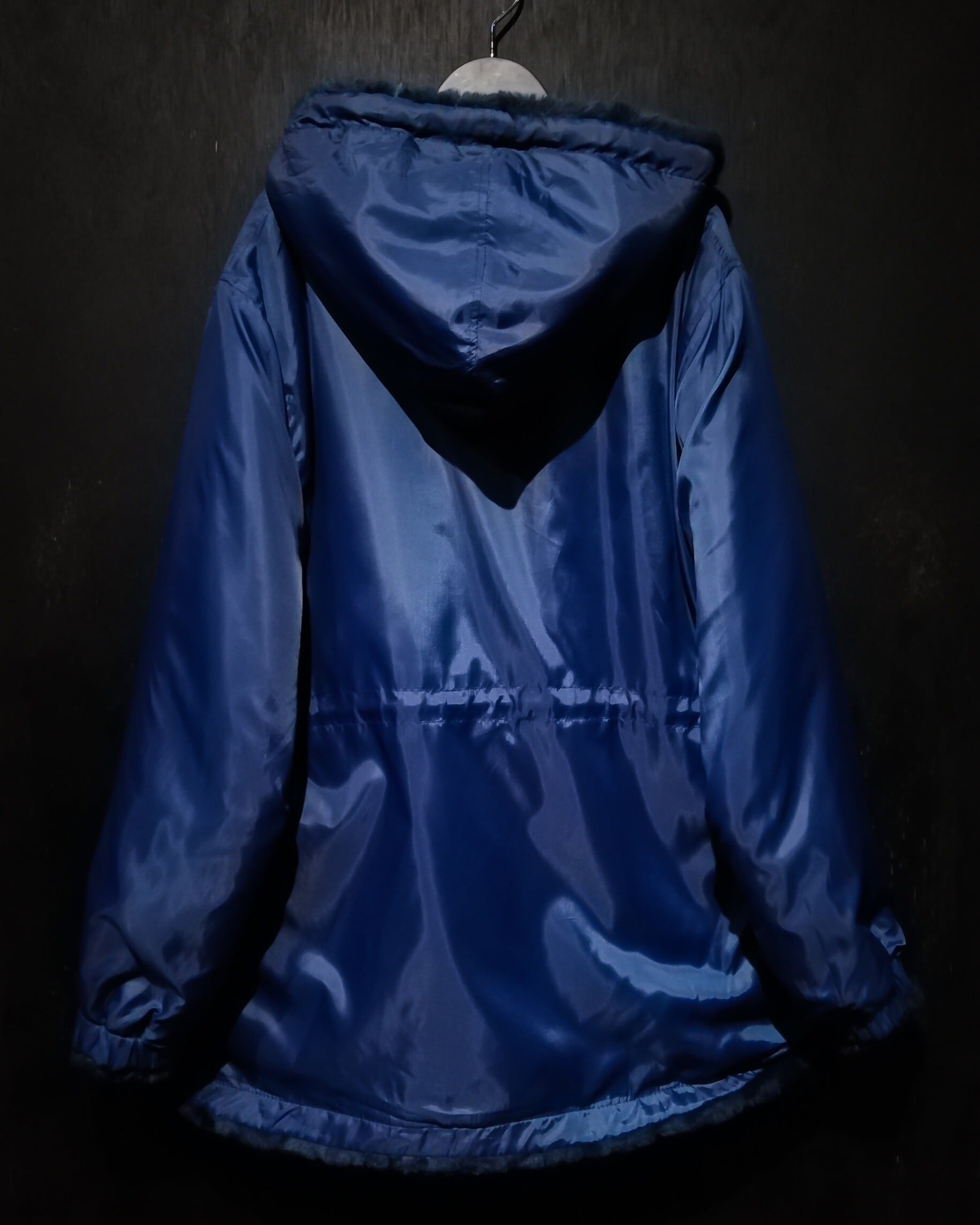 表は光沢の強いブルーでまとめられ、毛足の長いモッフモフで肌触りの柔らかなファー。ラグジュアリー感ムンムンに漂う雅やかな印象に。